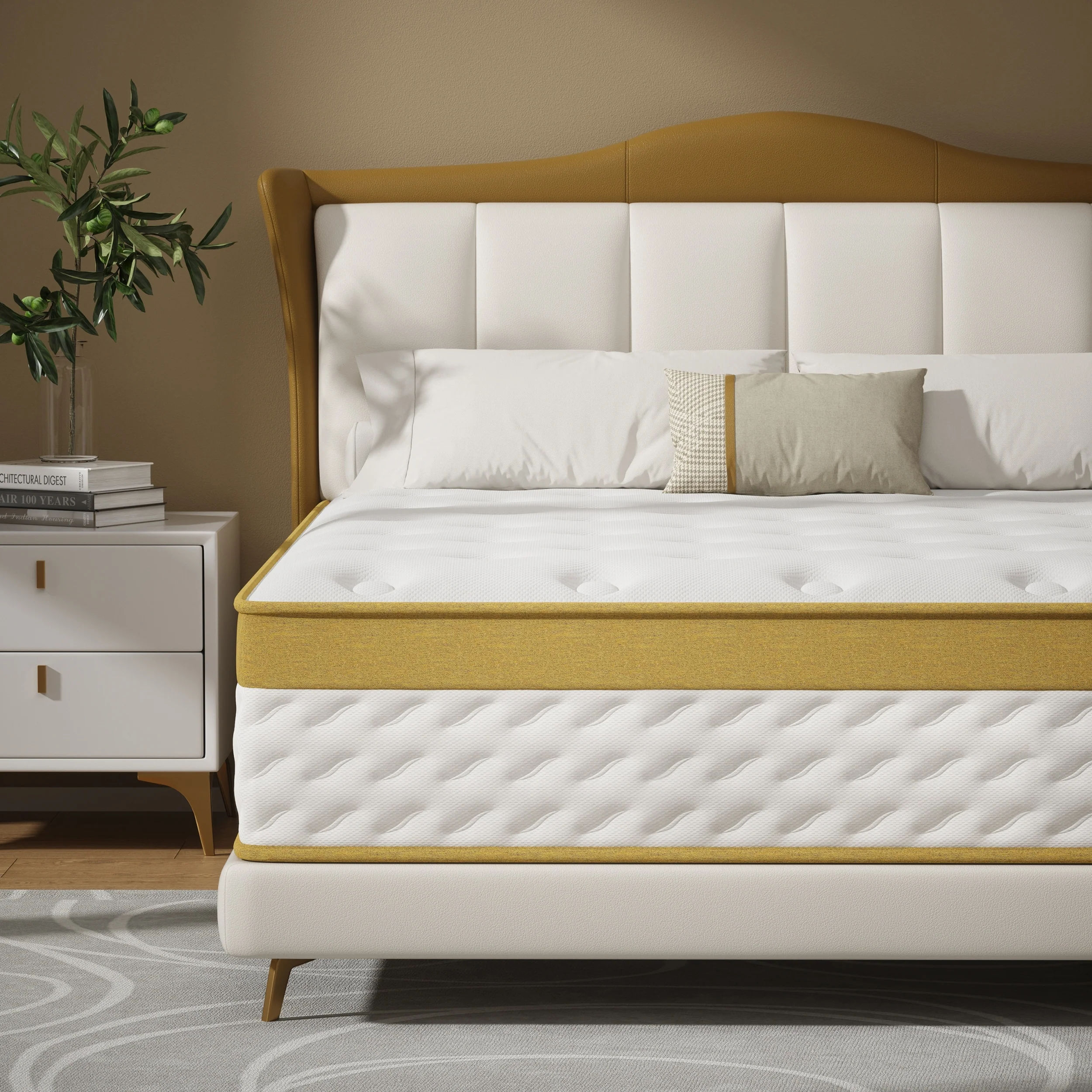Get the best of both worlds with a combination of pocketed springs and gel memory foam. Our innovative hybrid design provides precisely support where you need it most. Individually wrapped coils minimize the sensation of movement, providing a restful sleep all night long. 3-layer foam including CertiPUR-US certified gel memory foam, eco-friendly foam and supportive high-density foam for ultra-responsive body contouring, 5-zoned support, cool sleep.