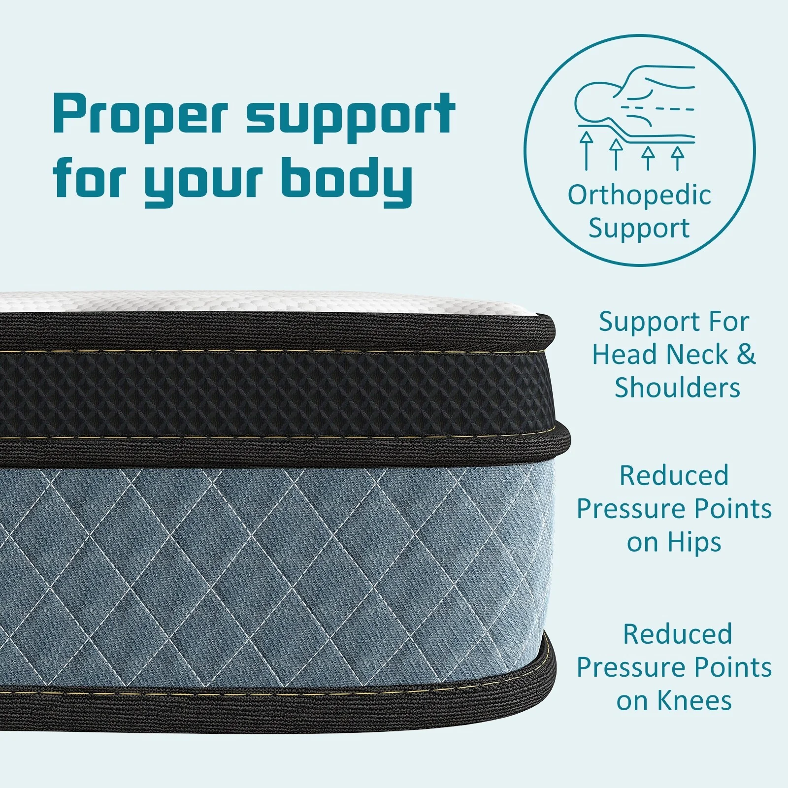 Highest quality foam is CertiPUR-US Certified for durability, performance, and content. 4 foam layers for optimal softness and support. Provide cushioning and serve as protective buffer, relieve painful pressure points on the body. Ideal for stomach sleepers and those who suffer from back and neck pains.