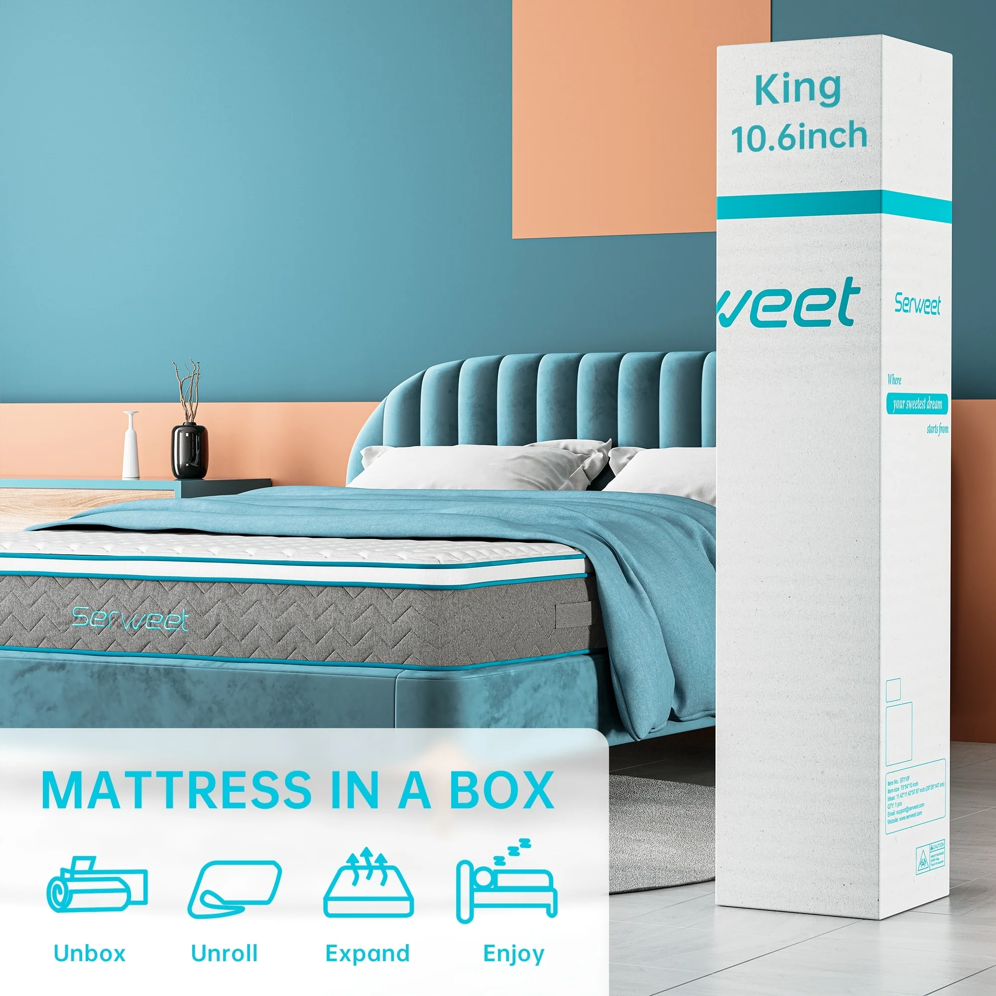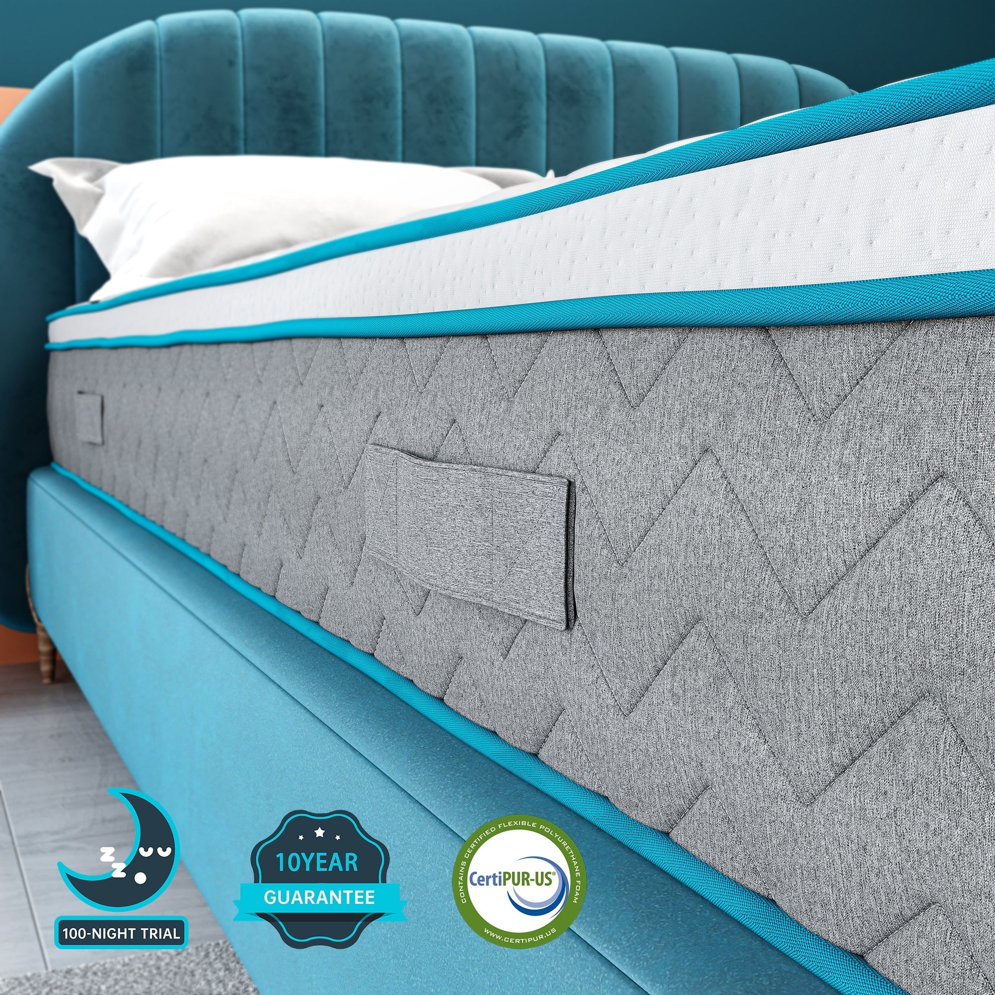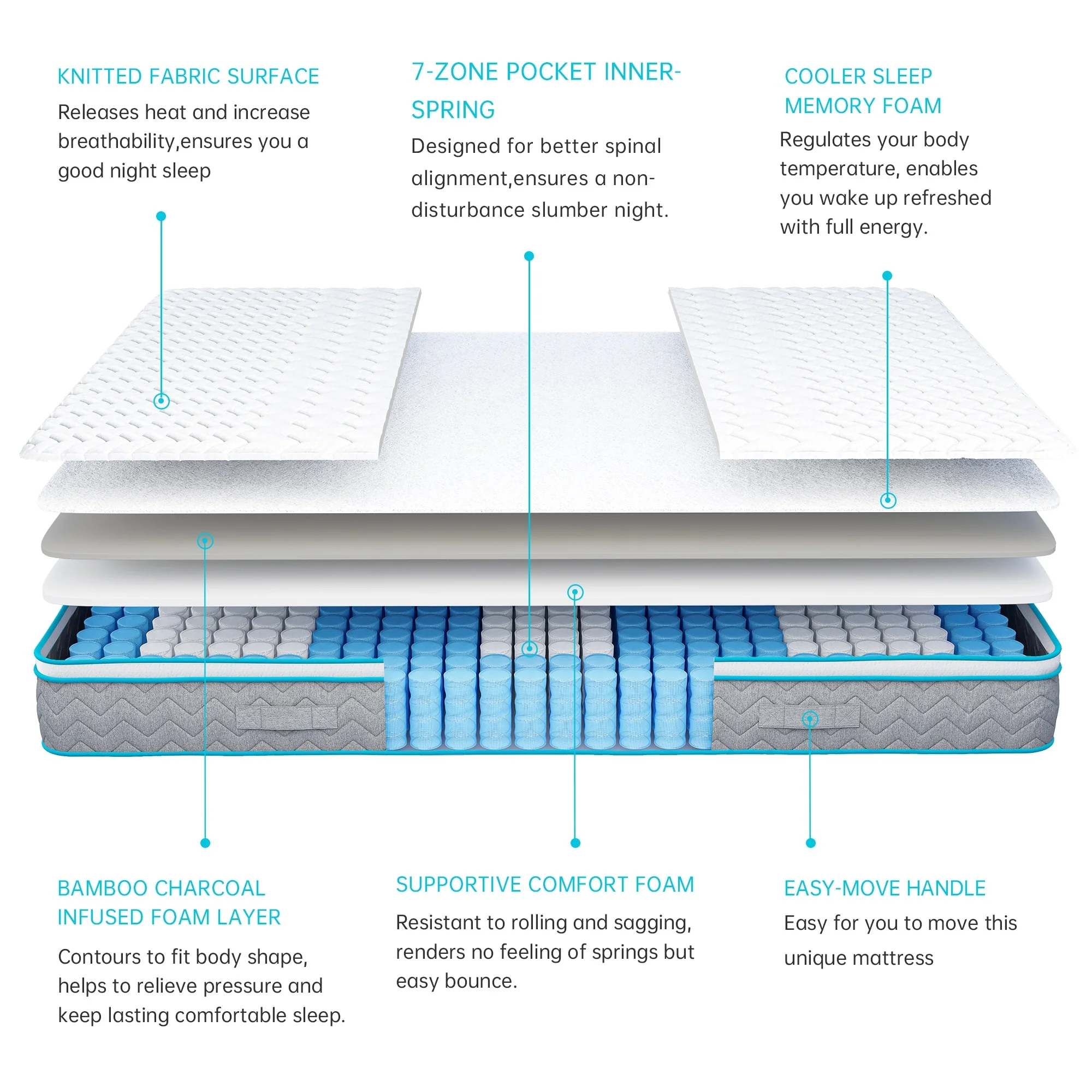 Get the comfort sleep with this 14 inch queen and king Euro top mattress.14 inch thick mattress will offer a cozy blend of comfort and support. this hybrid mattress will promote a good night's sleep and release your back pains.It will keep you feeling fresh and cool throughout the night. It seems like in the cloud. The mattress features a combination of luxurious memory foam layering and pocket springs to provide a medium soft feel. The individual pocket springs reduce motion transfer while supporting good airflow, and the memory foam offers reduced stress on pressure points for a better night's sleep.