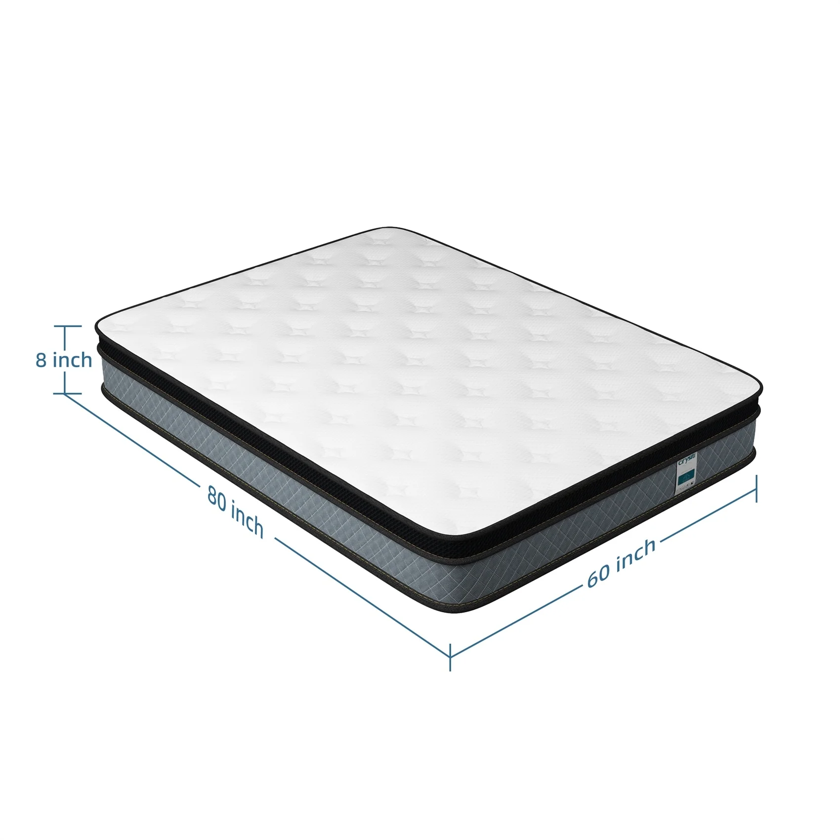- Queen: 60 inches wide x 80 inches long x 8 inches thick