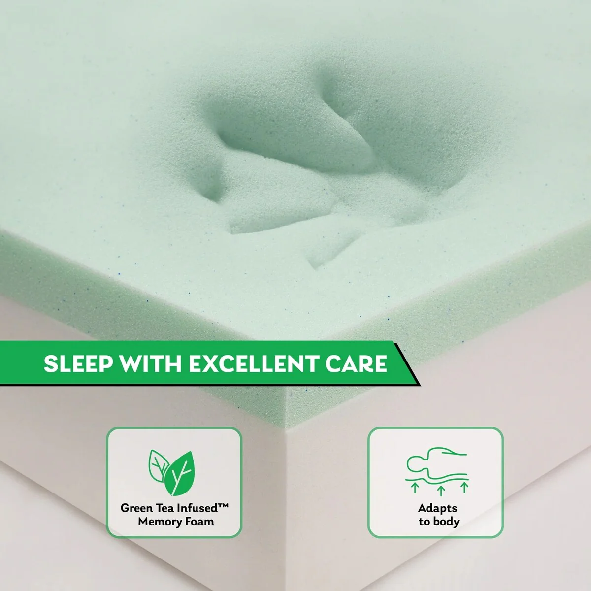 Experience a revitalizing night's sleep with our 8 inch Green Tea Gel Memory Foam Mattress. Our industry-leading 10-year warranty promises a lasting, supportive, and comfortable mattress. With a high-density foam core, aerated latex top layer, and contouring gel memory foam, this mattress offers the perfect balance of support and bounce for a great night's sleep. Wake up feeling refreshed and pain-free with minimal motion transfer, thanks to the super-relaxing blend of comfort and support.