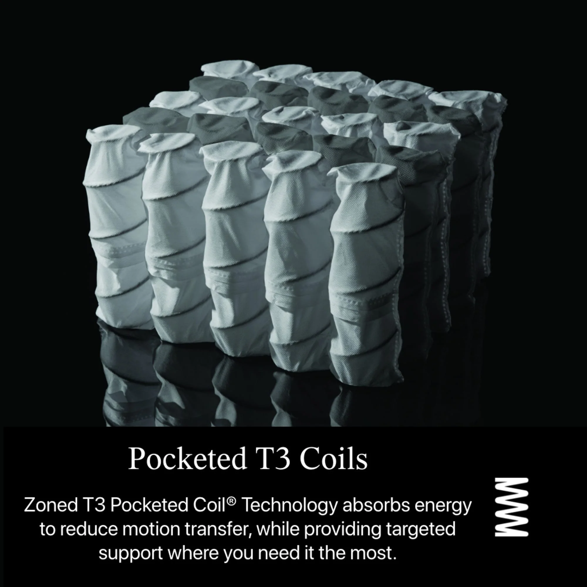 - Premier Pocketed Coils provide targeted support and enhanced pressure relief for your core and back, while absorbing energy to reduce motion
