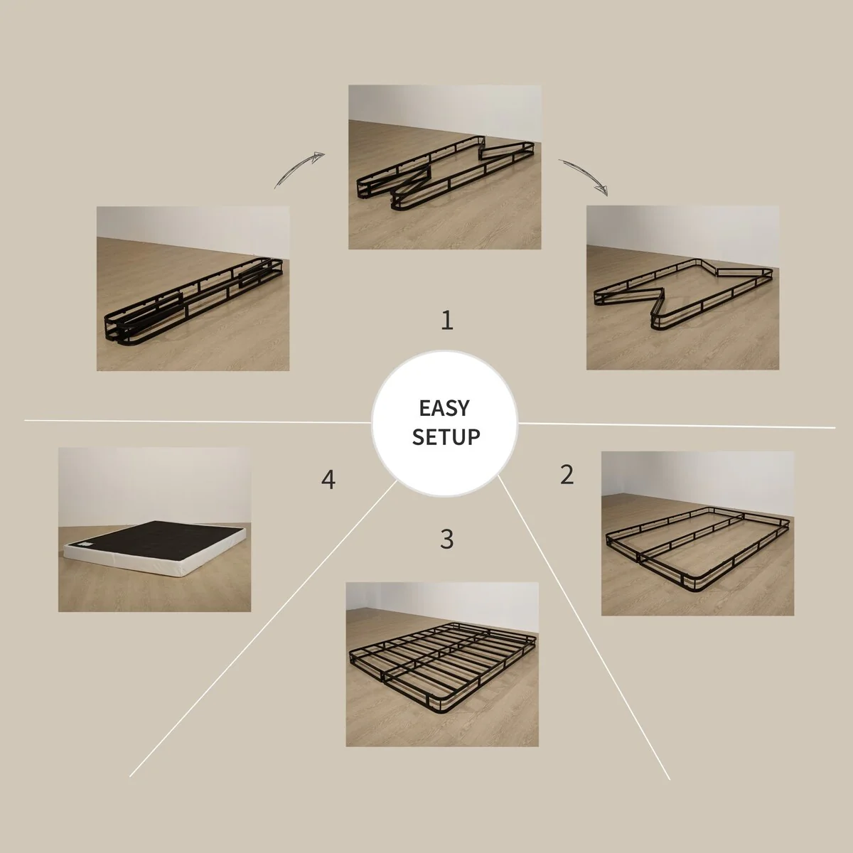Don't underestimate your bed's base - it's as vital as the mattress. Our box spring, built with strong metal slats, offers solid support for your mattress. It creates an ideal space for your mattress, ensuring peaceful sleep and sweet dreams every night. Easy to assemble, it's a convenient addition to your bedroom setup.