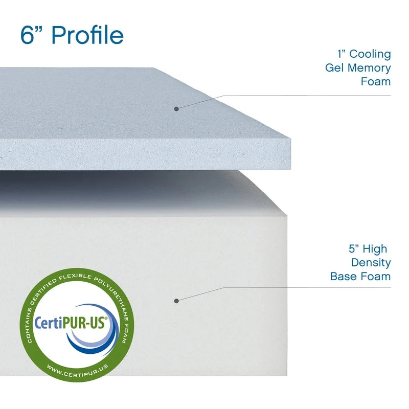 The 6-Inch Cool Gel Memory Foam Mattress is the perfect solution for staying comfortable and getting a better night's sleep. Cool gel draws heat away from your body while the memory foam conforms and supports you while you sleep. This mattress is an excellent choice for bunk beds, kids rooms, dorms, and even boats and recreational vehicles. It's an alternate solution to those other expensive branded memory foam mattresses. This mattress ships roll pack and compressed for ease of delivery and set up. Look for more innovative specialty sleep products from Cool Gel.