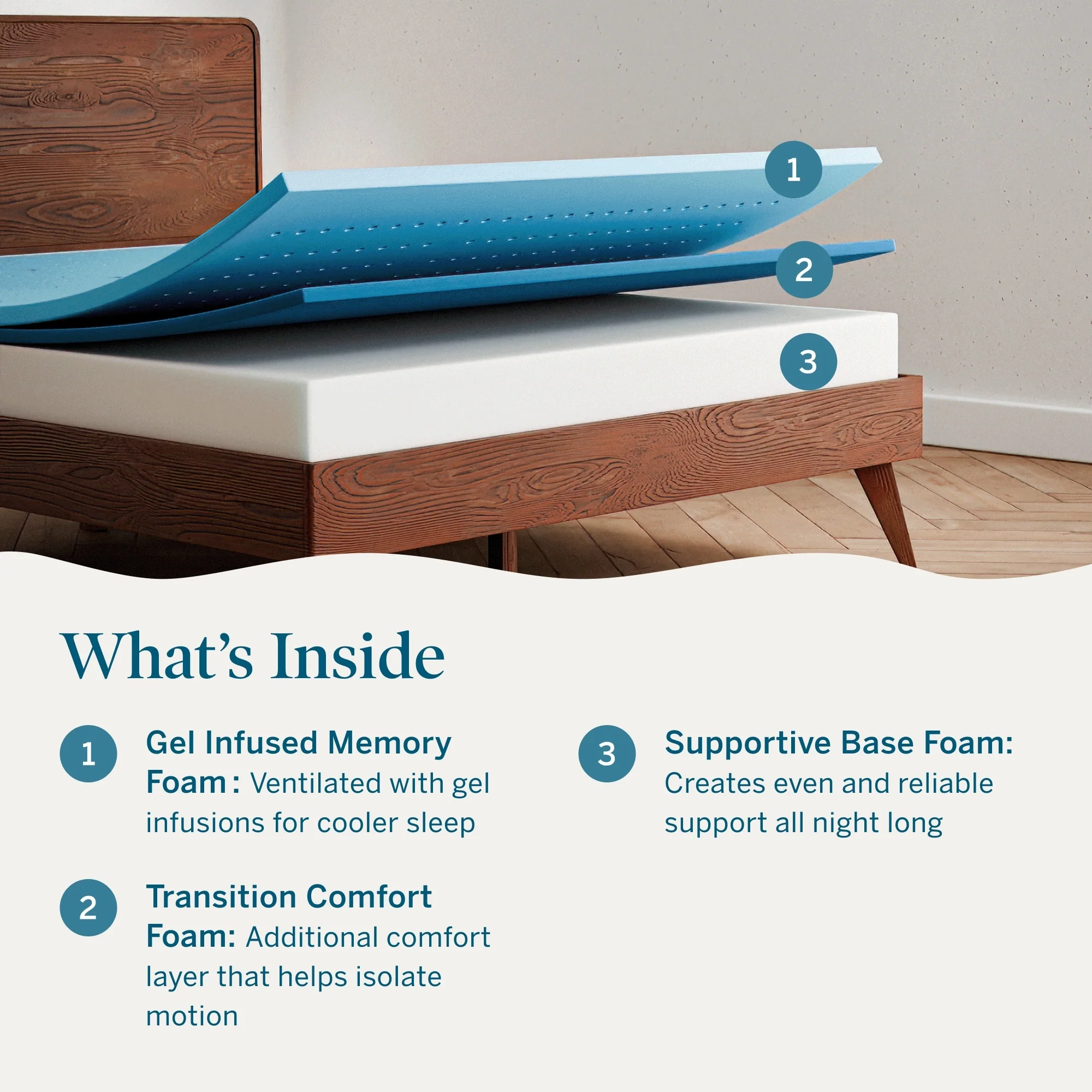 - COOLER SLEEP: Cooling gel is infused in the memory foam to help regulate your sleep temperature and keep you comfortable all night long