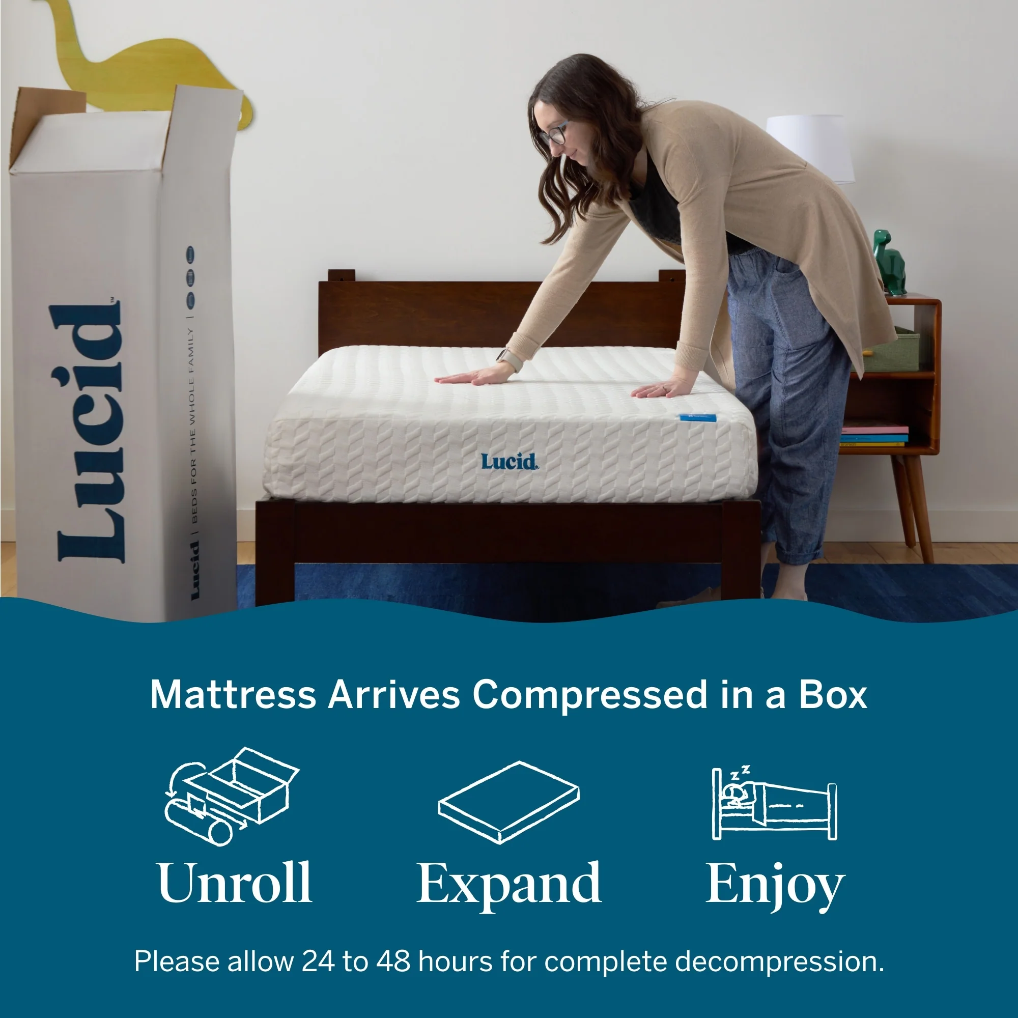 At Lucid, we understand that finding an affordable mattress can be a challenge, so we designed the Lucid 8' Gel Memory Foam Mattress with plush and firm options. With an affordable price and comfort that lasts, this mattress is an excellent fit for young adults or any guest that may stay in your home. With two inches of gel memory foam and six inches of base foam, this comfortable and supportive mattress in a box comes compressed and rolled for easy shipping. Plus, this 8' mattress is great for a college dorm, putting your mind at ease when your undergrad heads off to college. Comfort awaits.