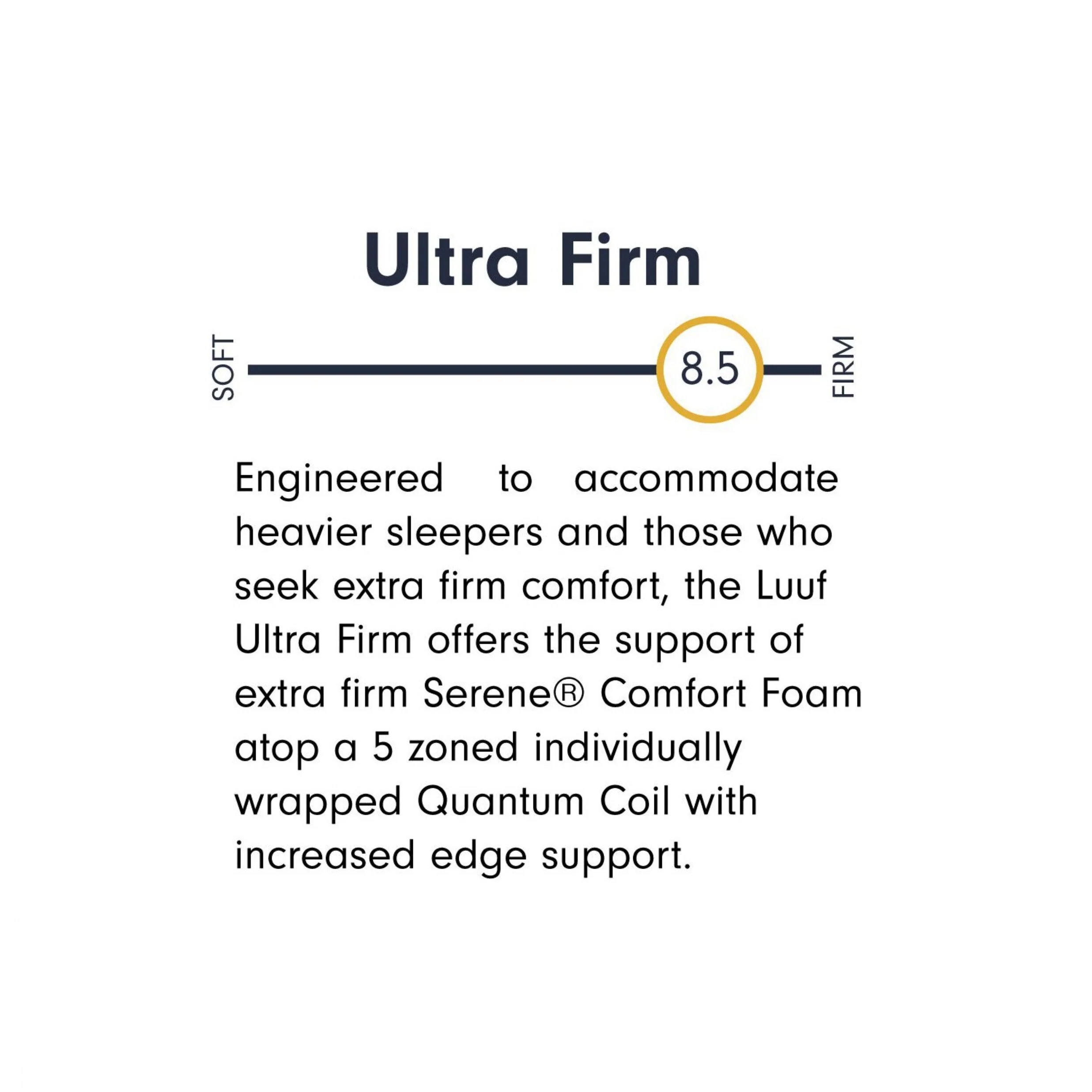 Engineered to accommodate heavier sleepers and those who seek extra firm comfort, the LuuF Max offers the support of extra firm Serene® Comfort Foam atop a 5 zoned individually wrapped Quantum Coil with increased edge support.