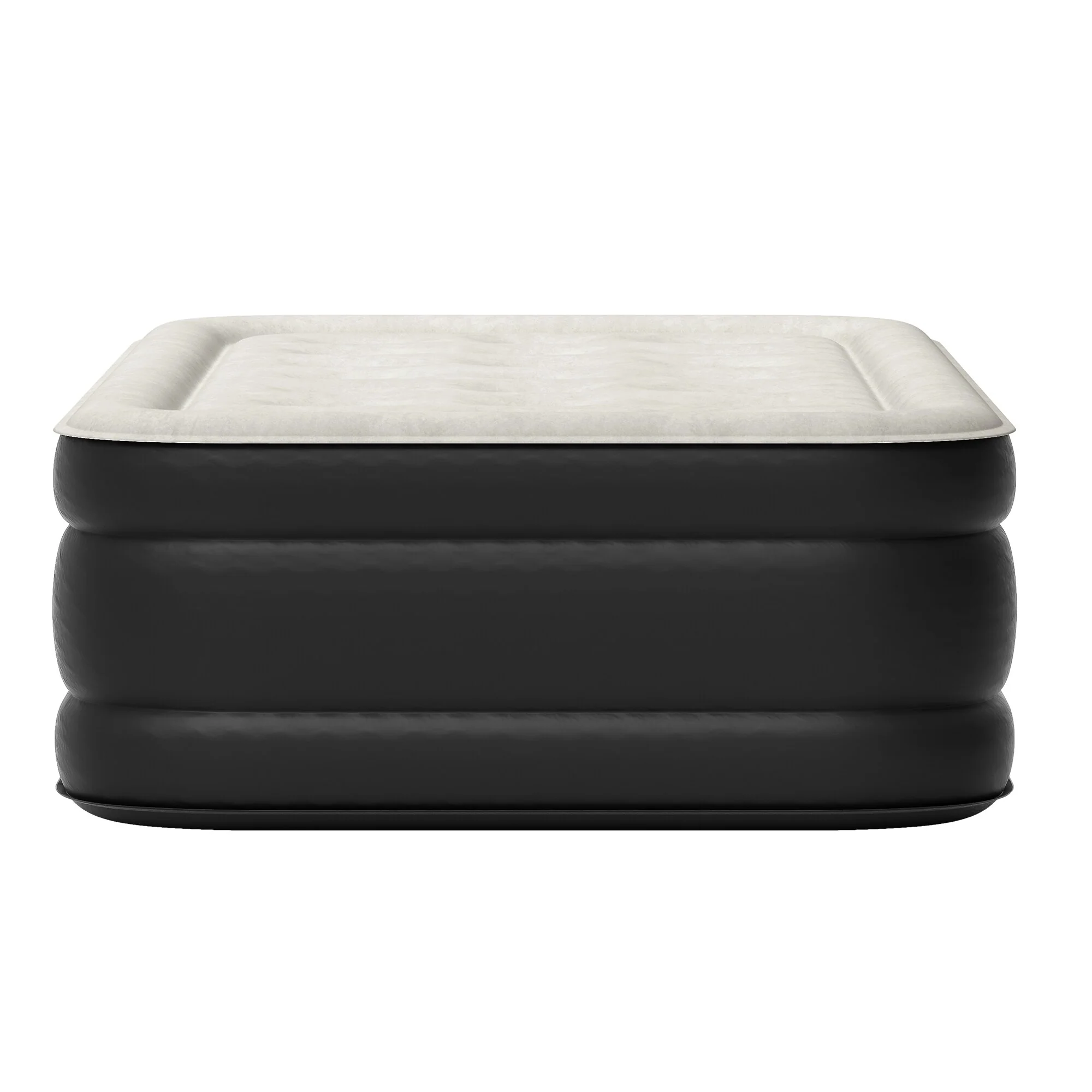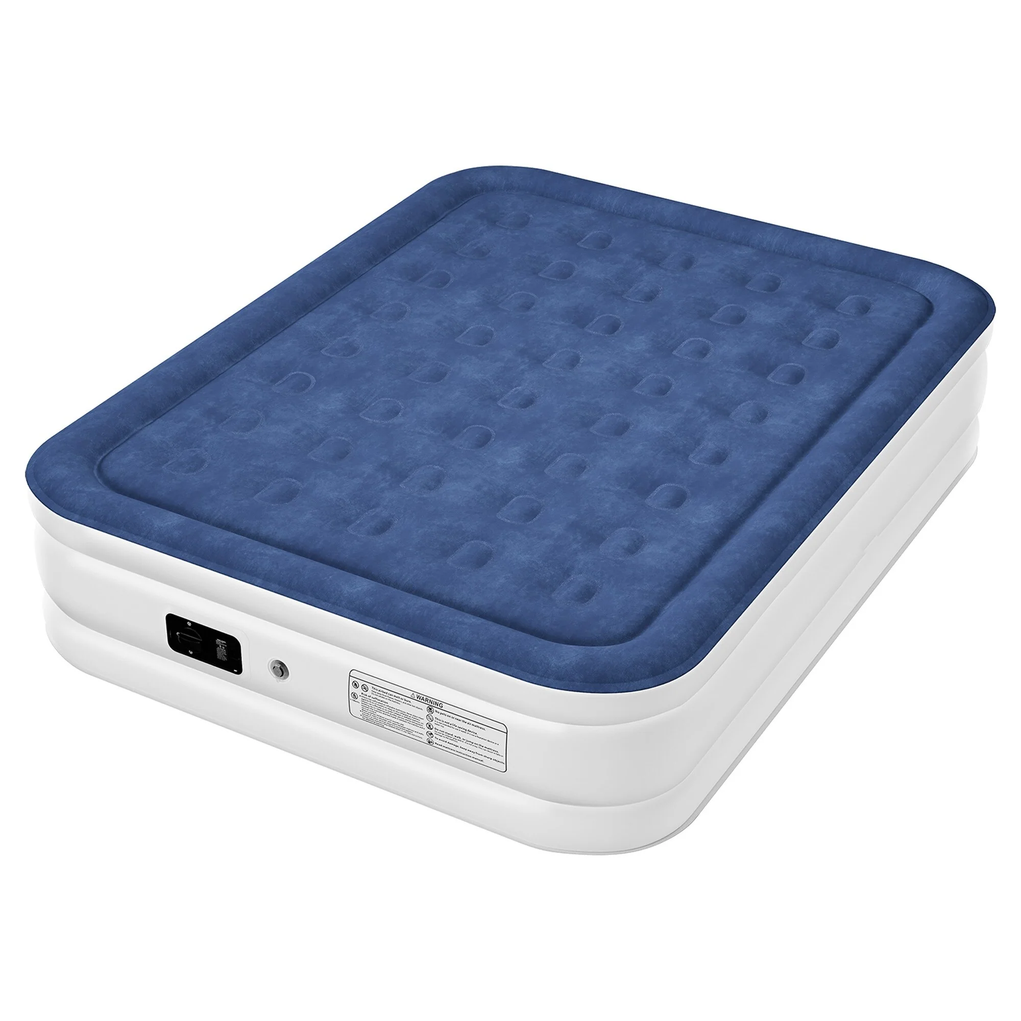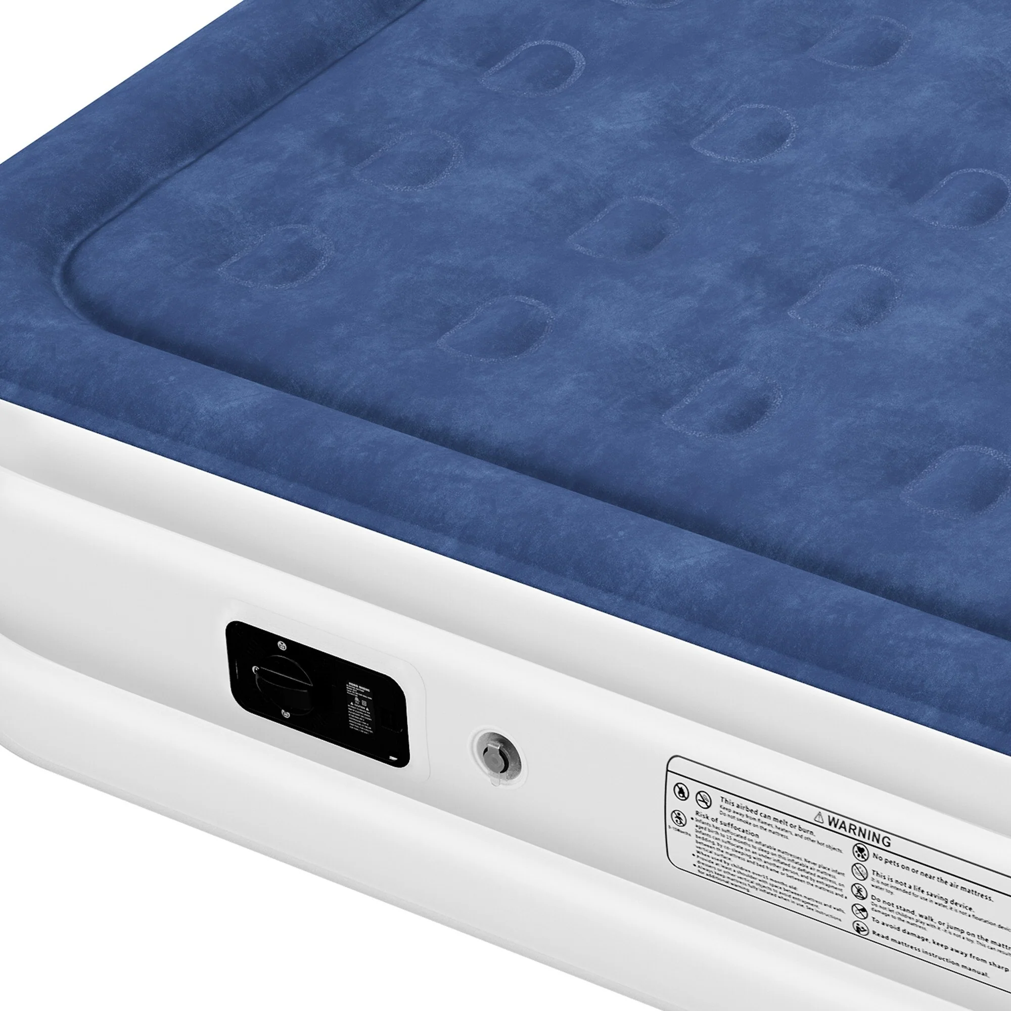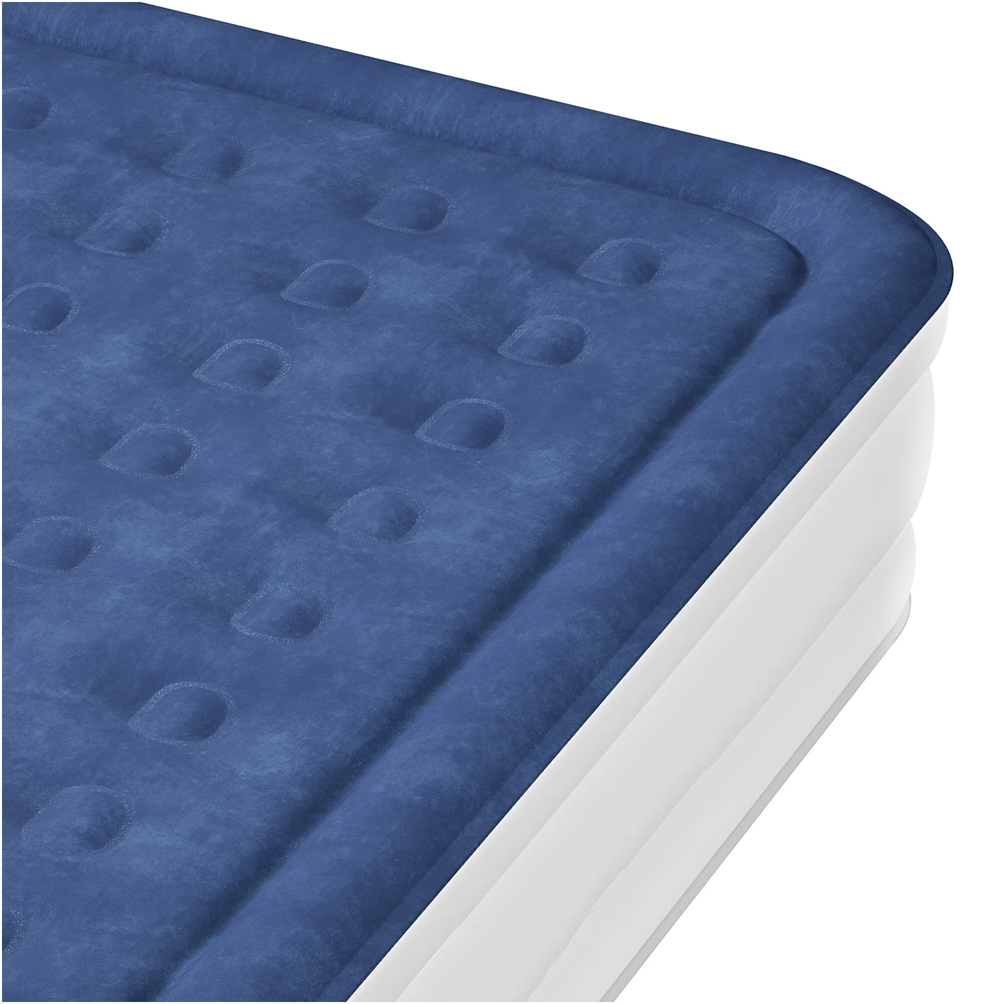 - Made from premium flocked top and high-strength PVC, this air mattress with built-in pump is both durable and comfortable