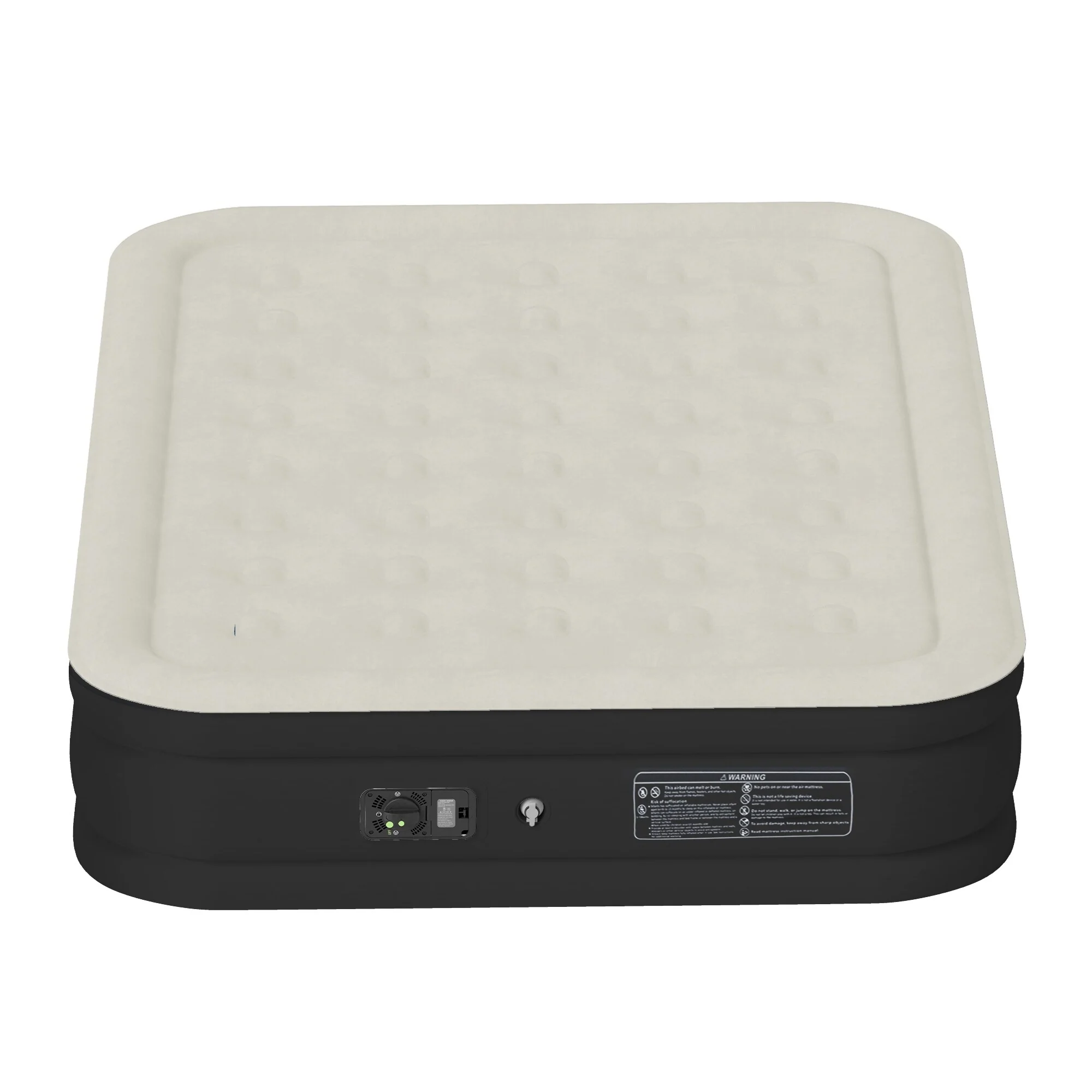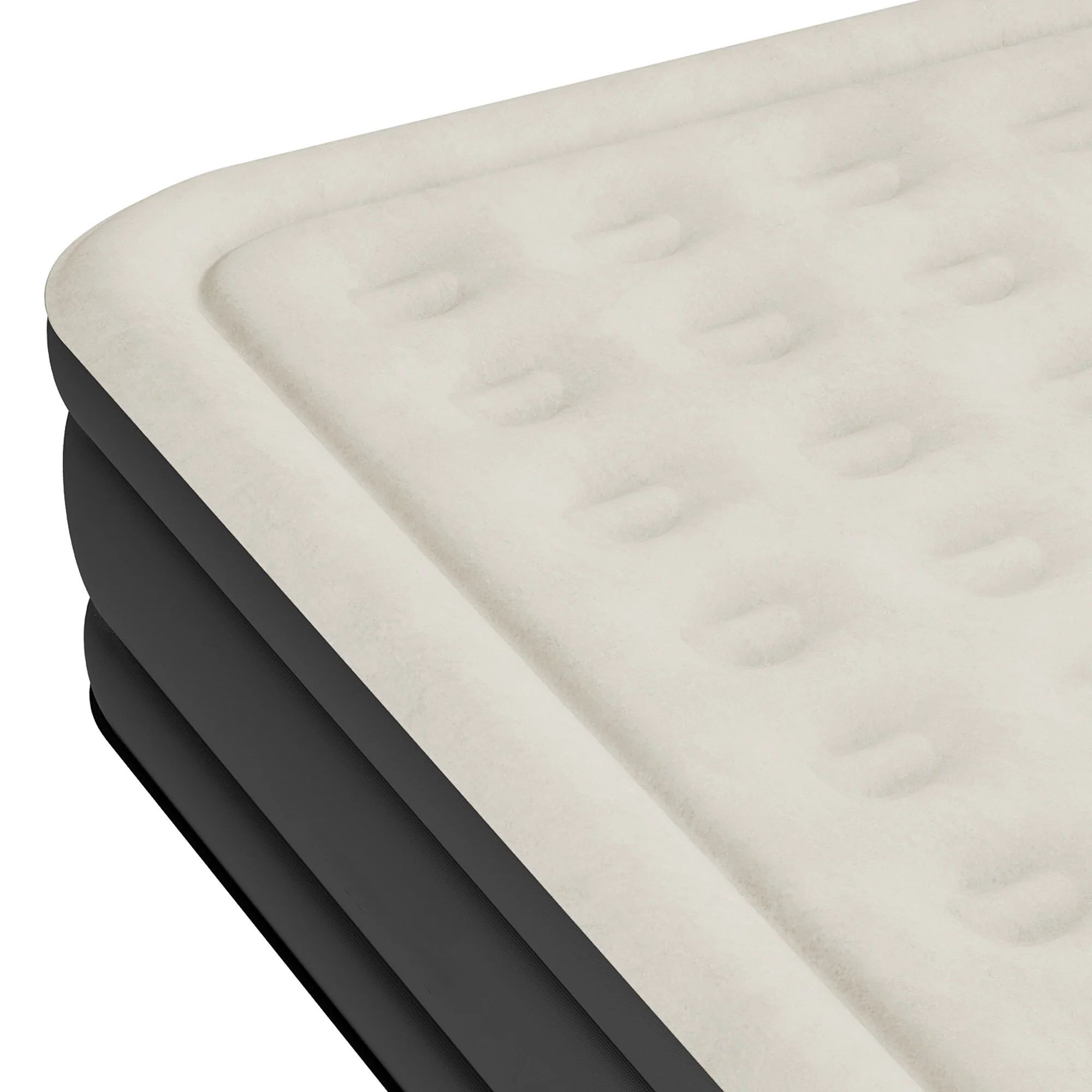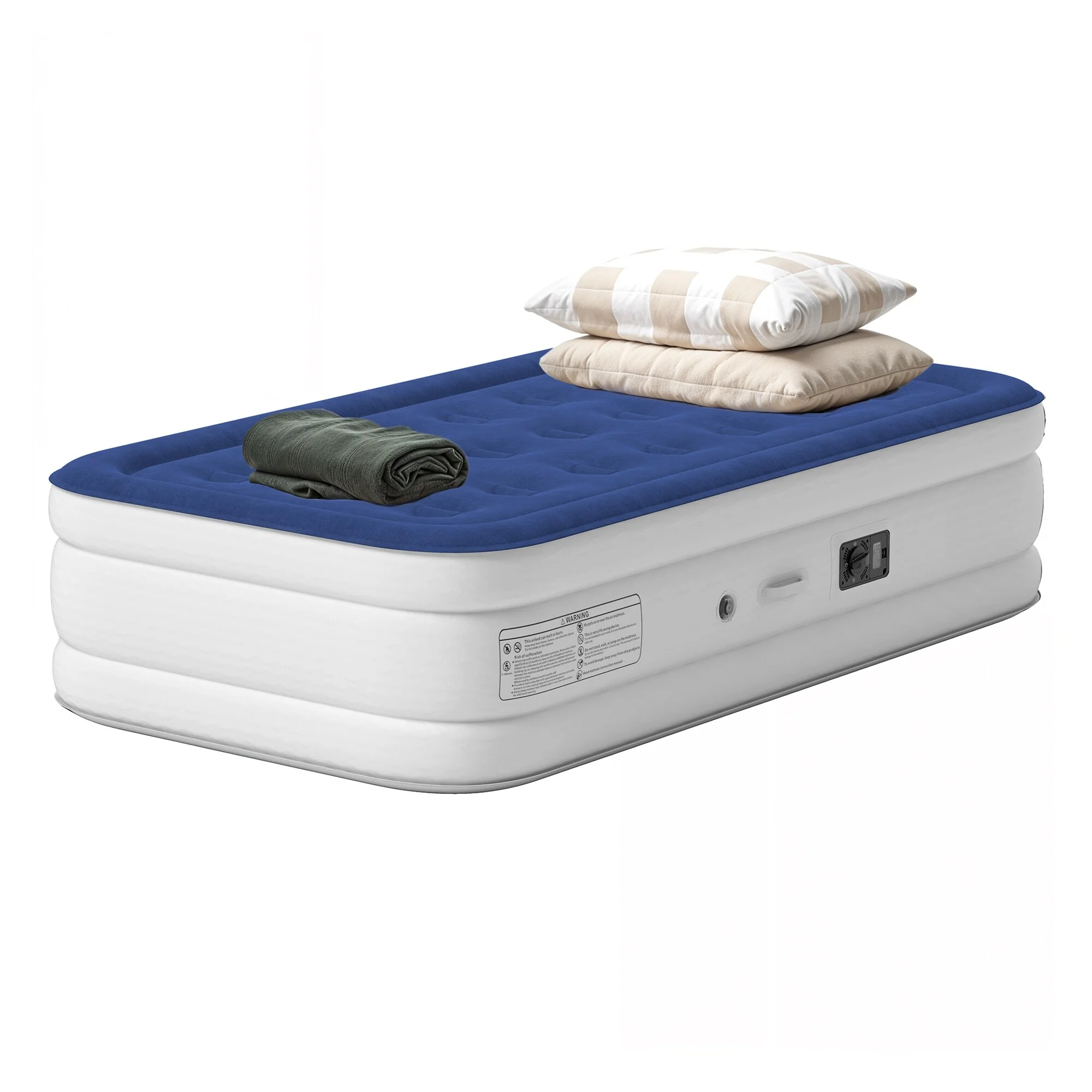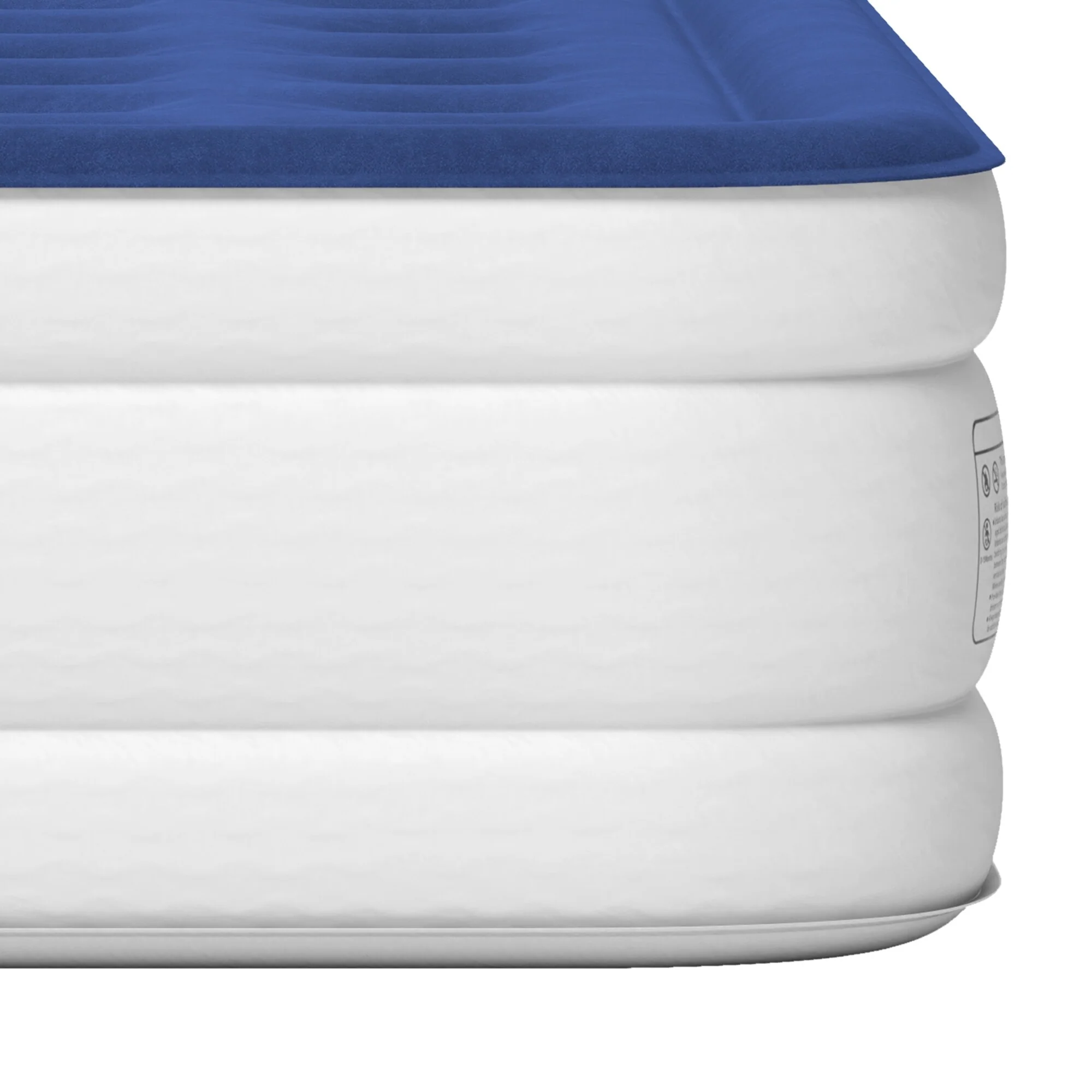 - Made from premium flocked top and high-strength PVC, this air mattress with built-in pump is both durable and comfortable