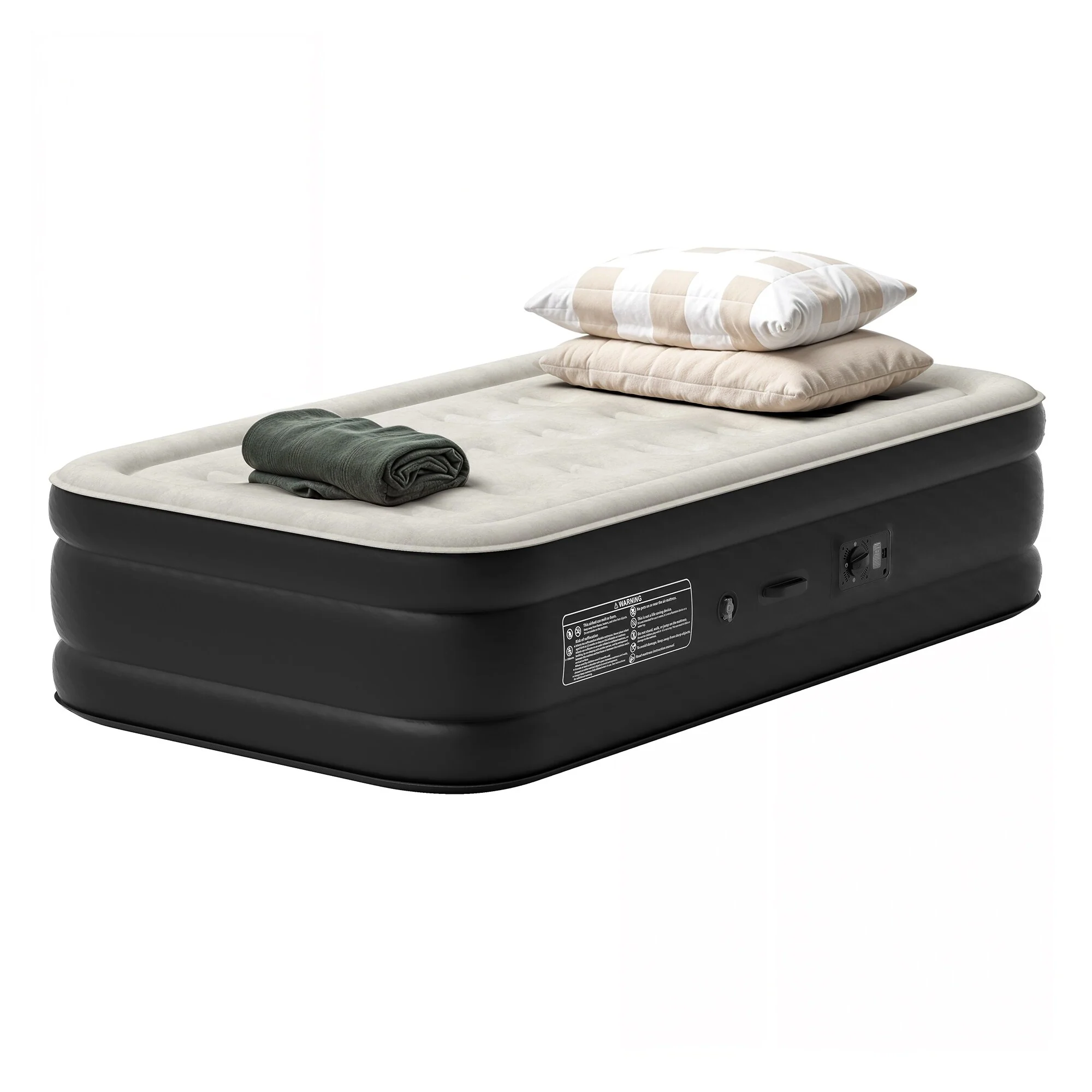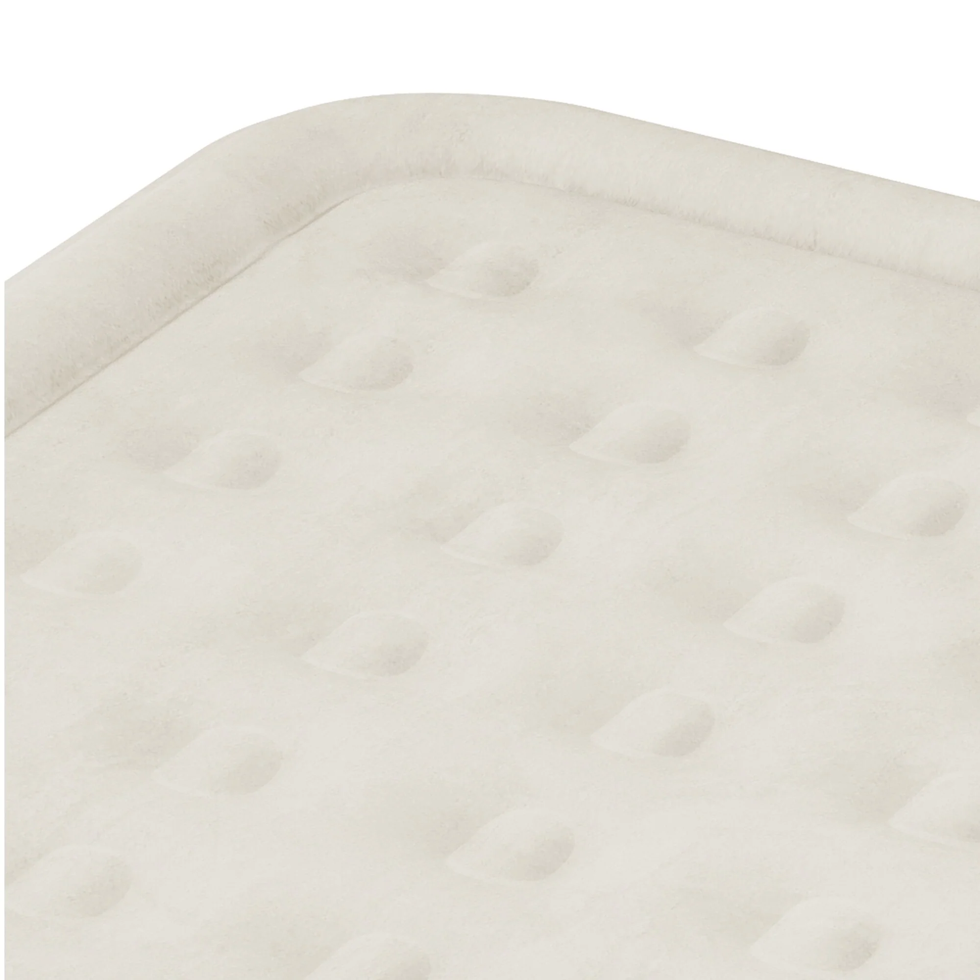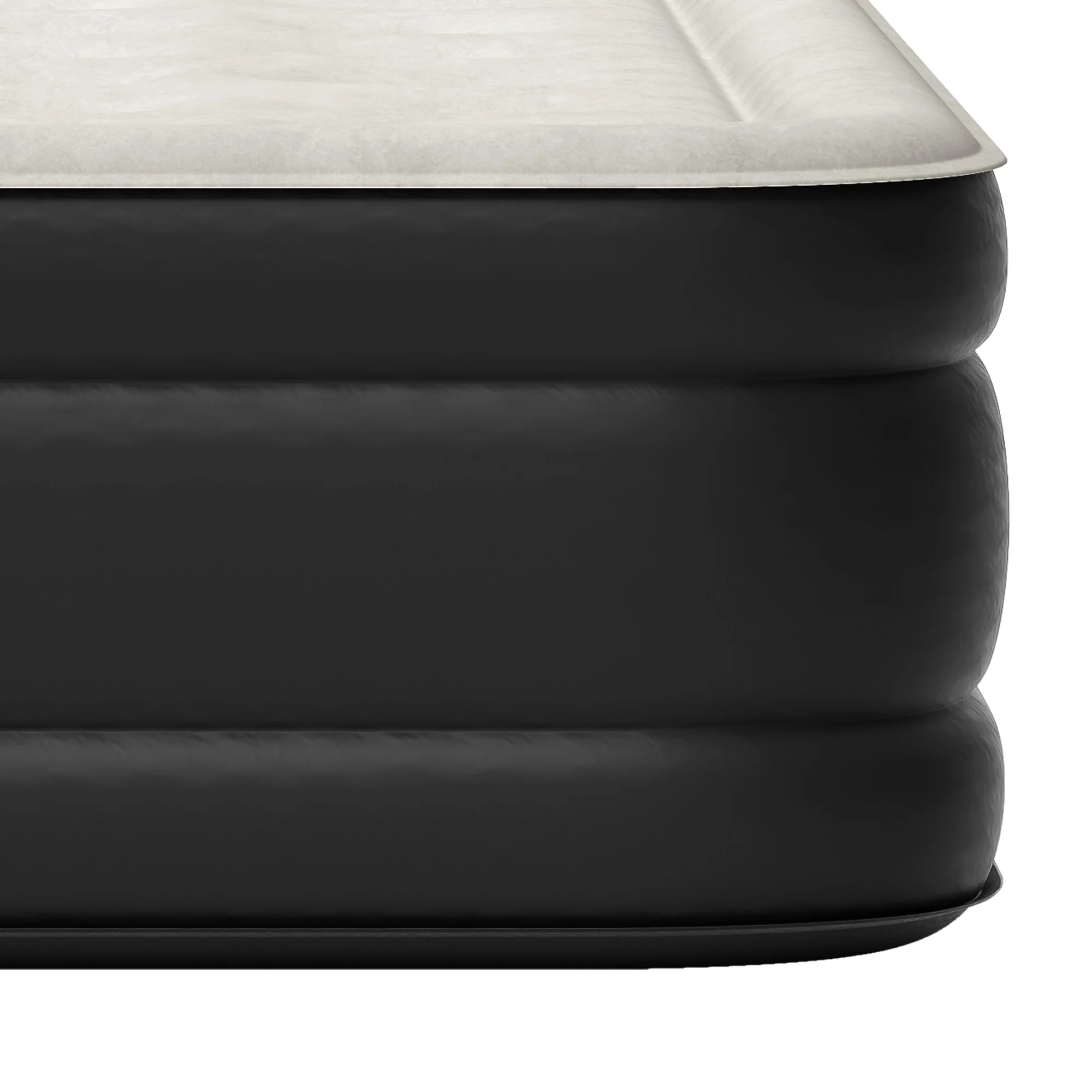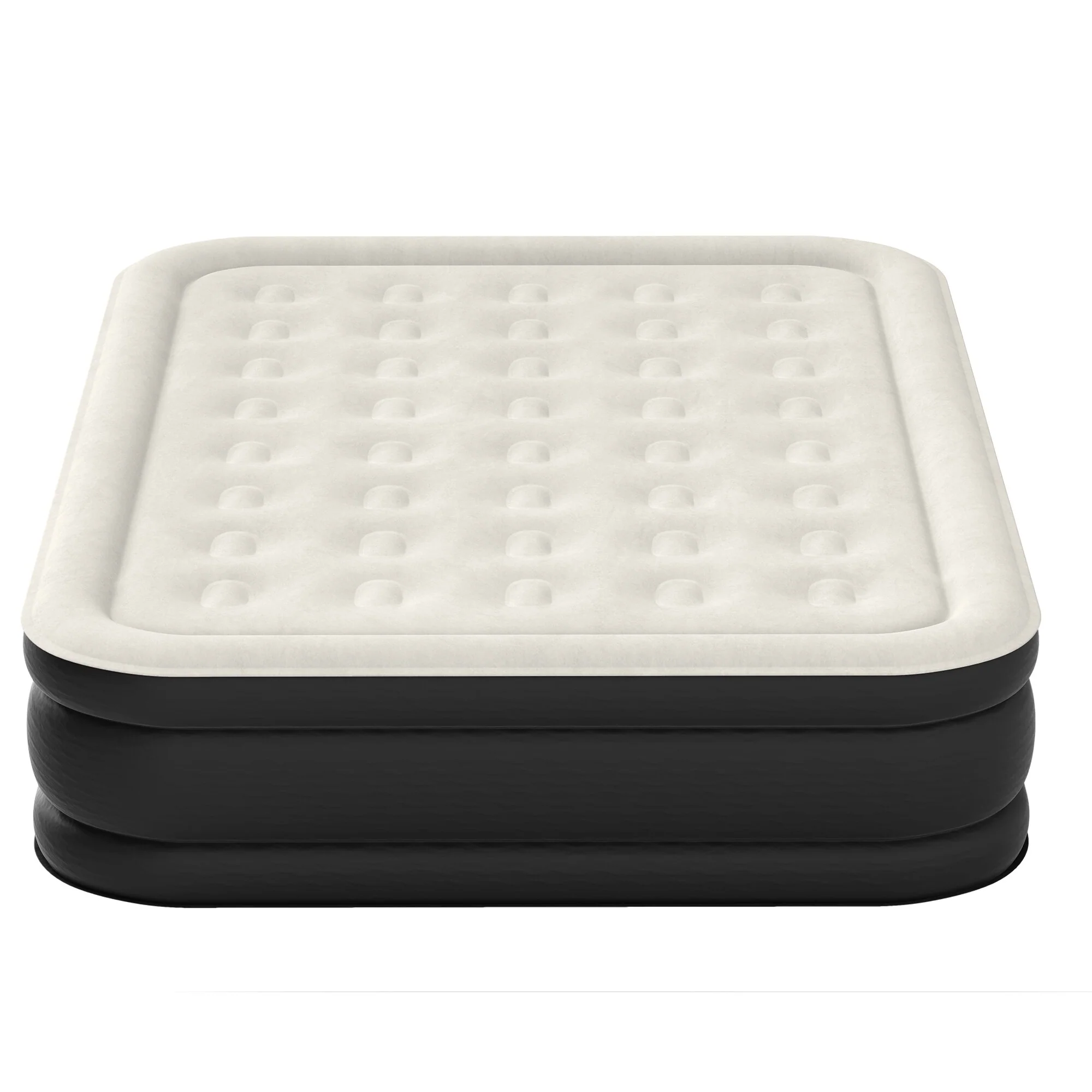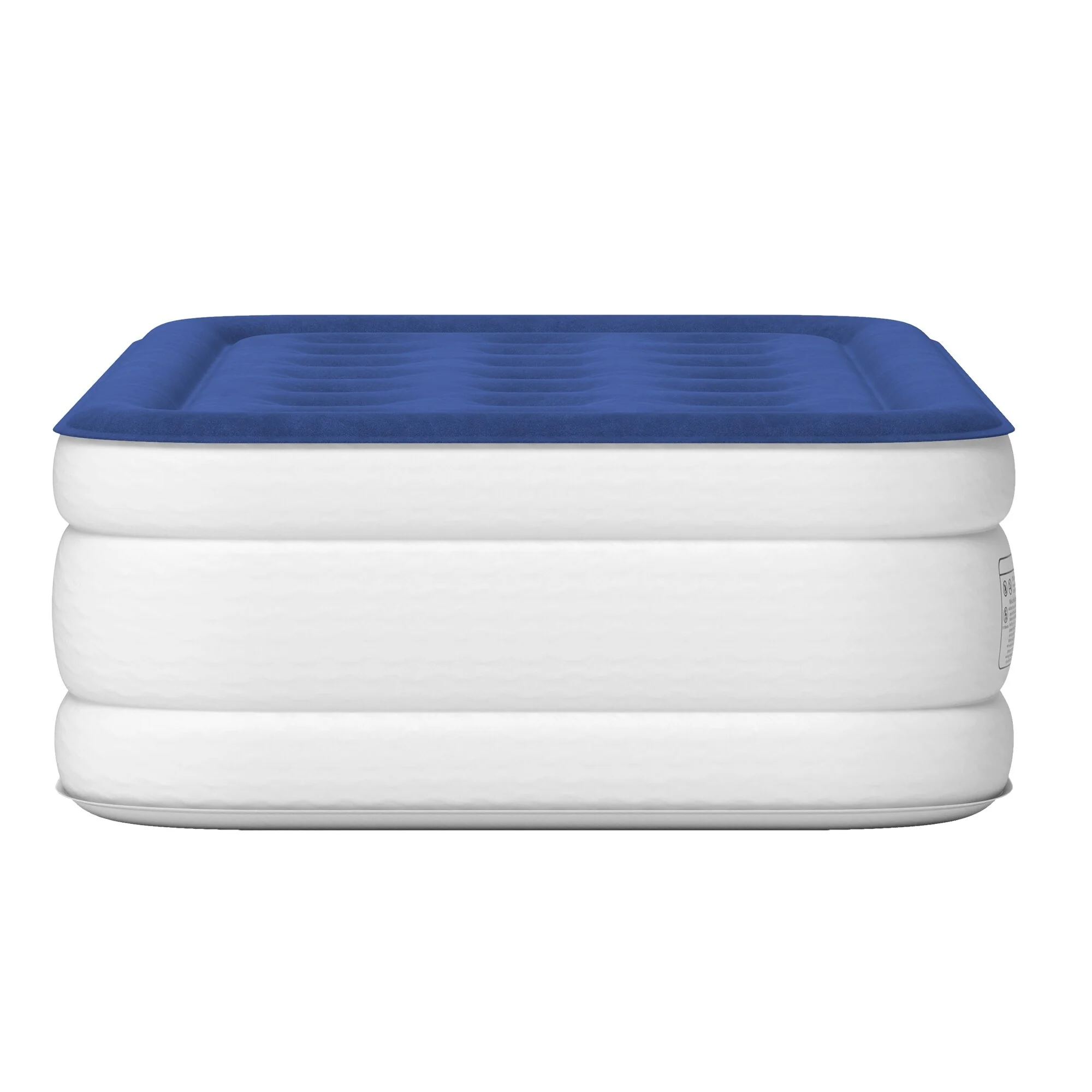- Made from premium flocked top and high-strength PVC, this air mattress with built-in pump is both durable and comfortable