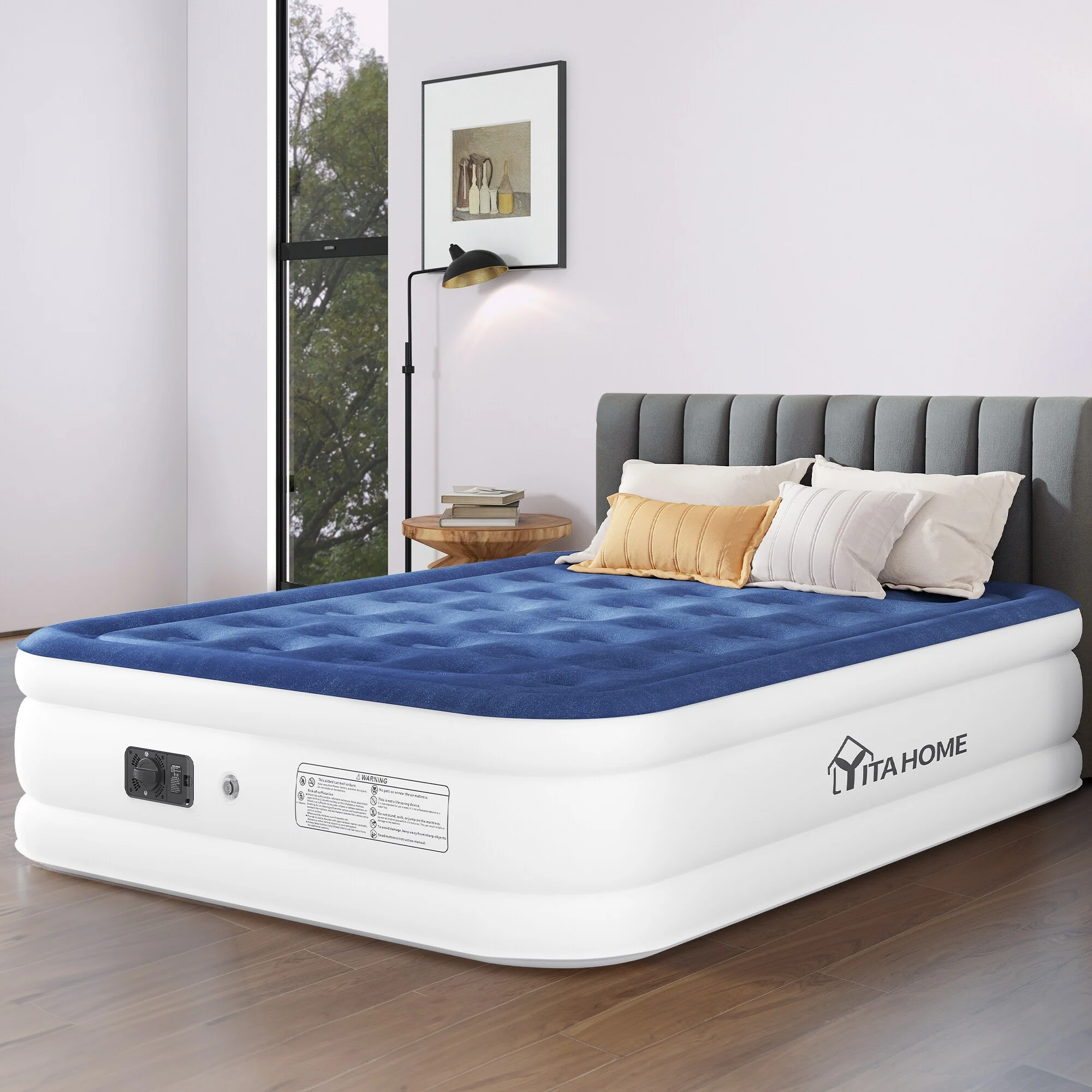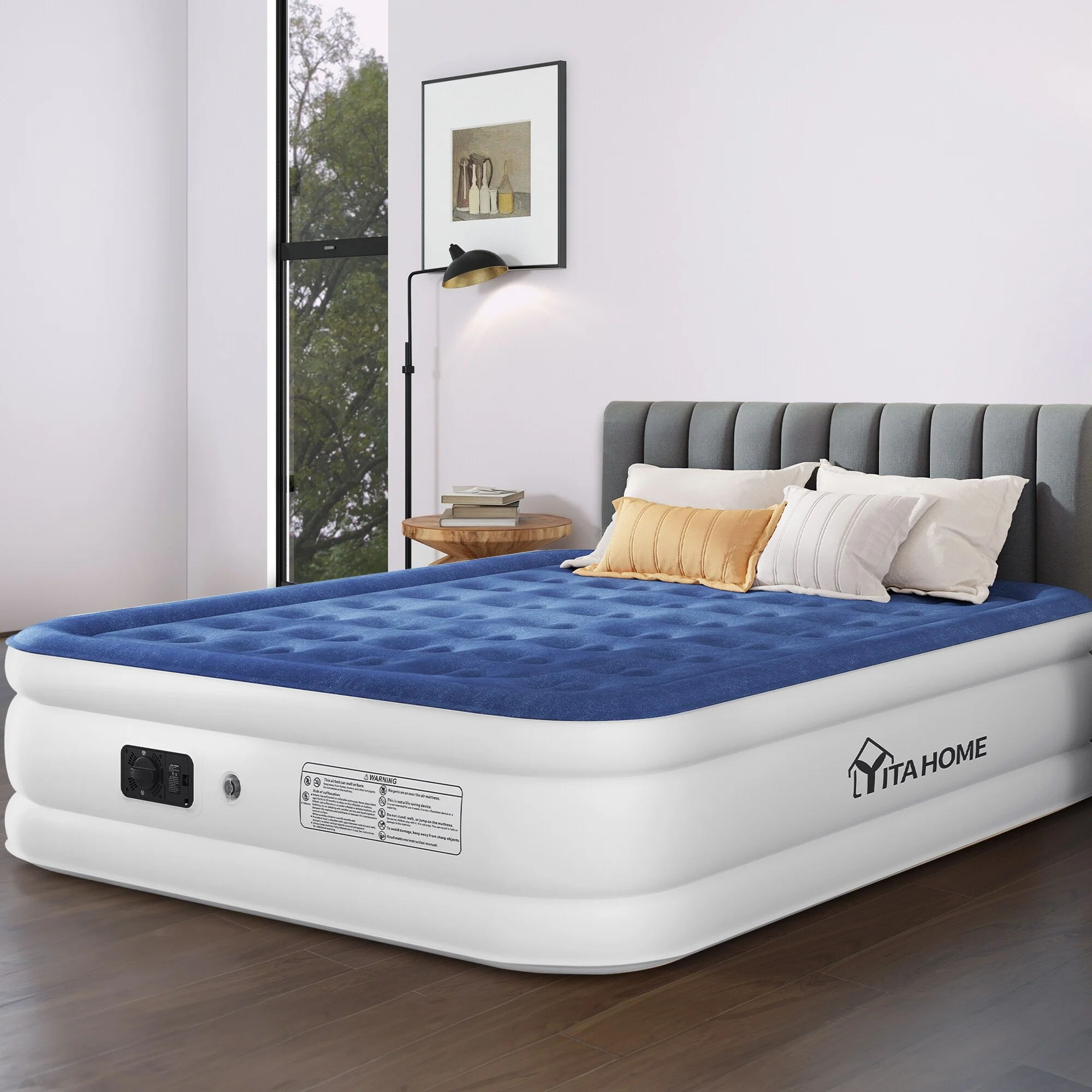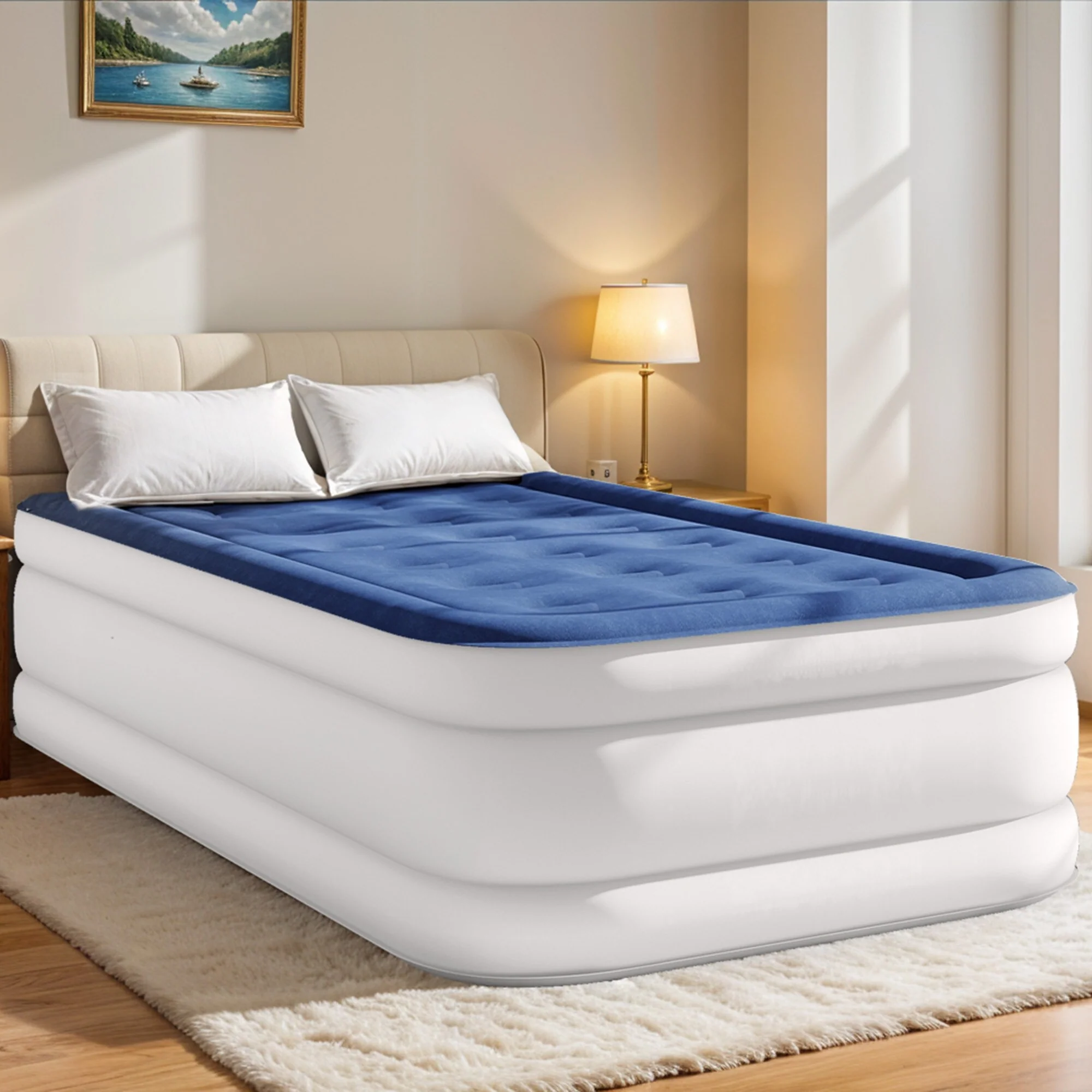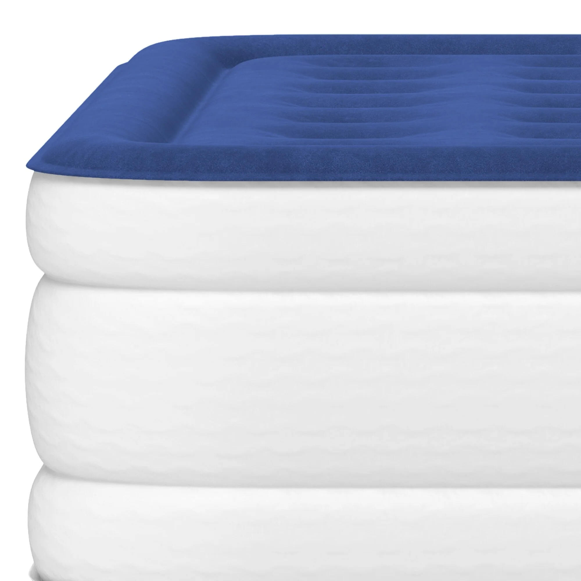 - Made from premium flocked top and high-strength PVC, this air mattress with built-in pump is both durable and comfortable