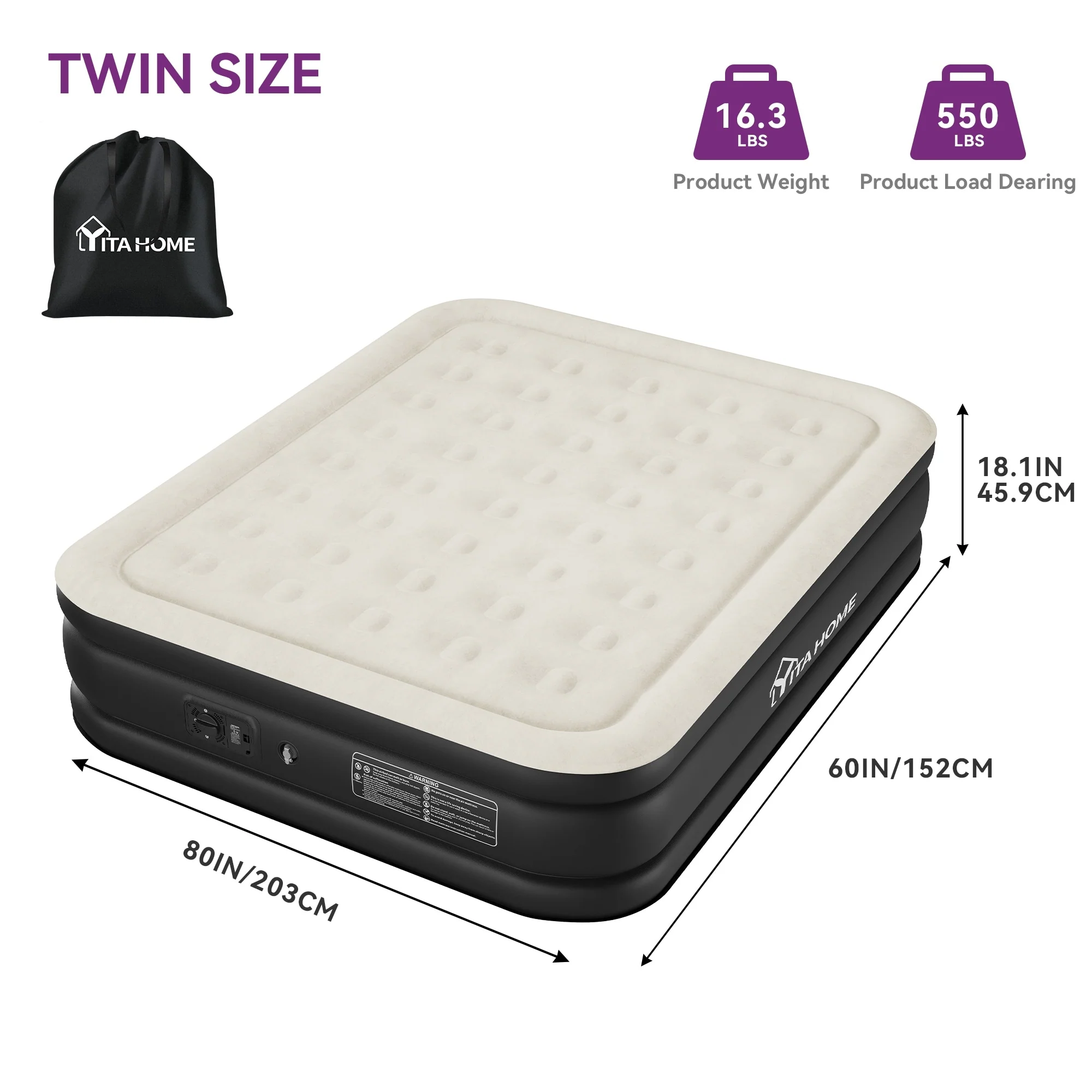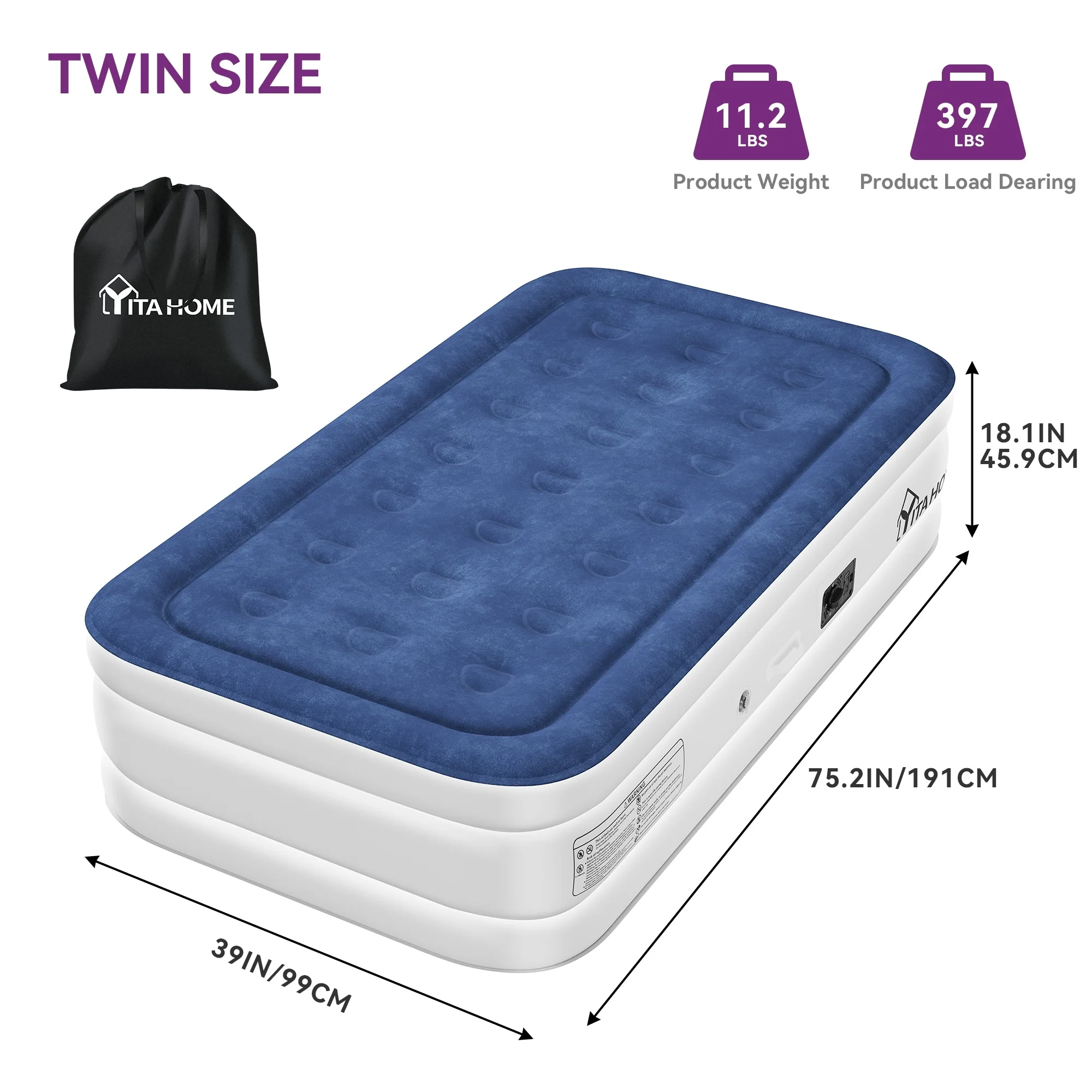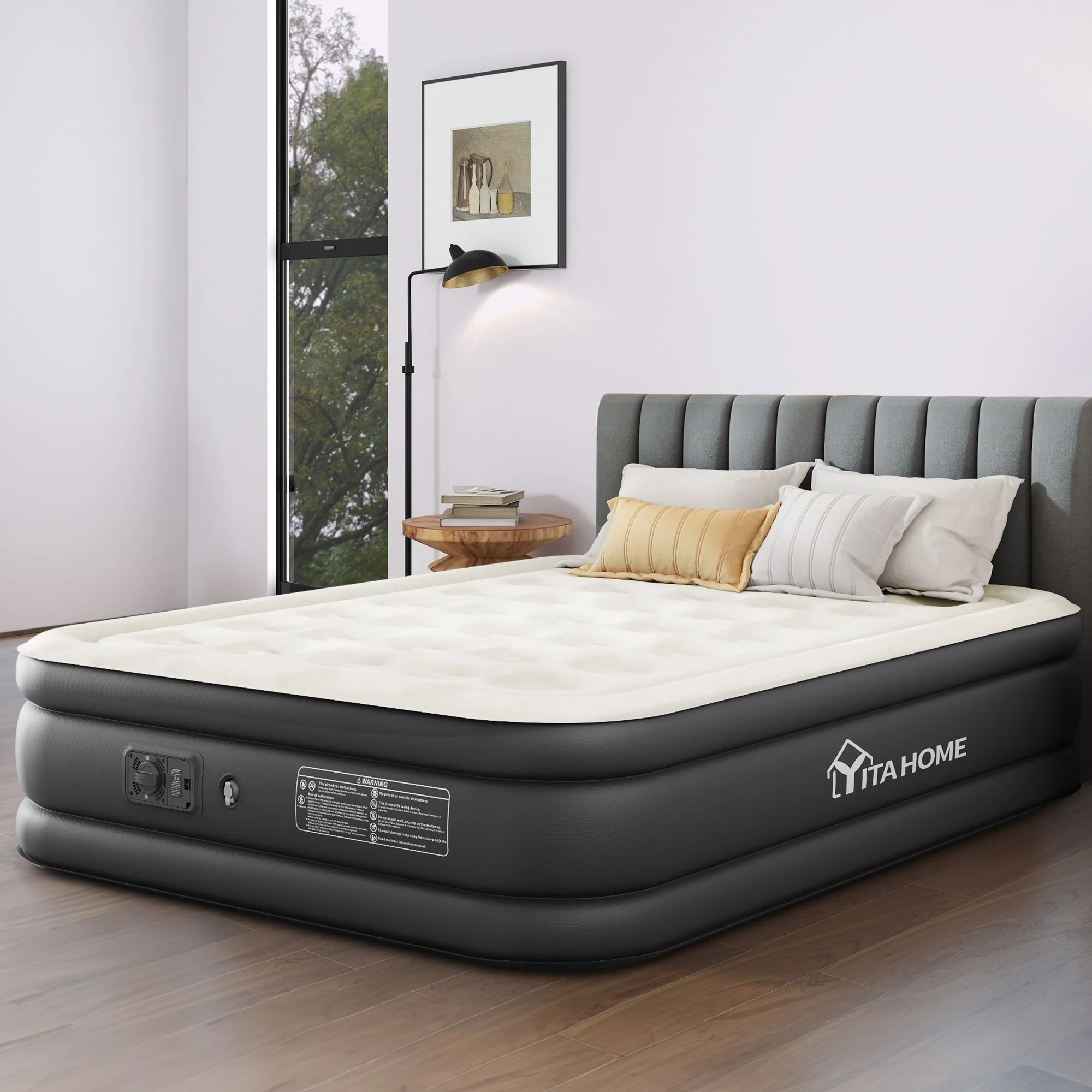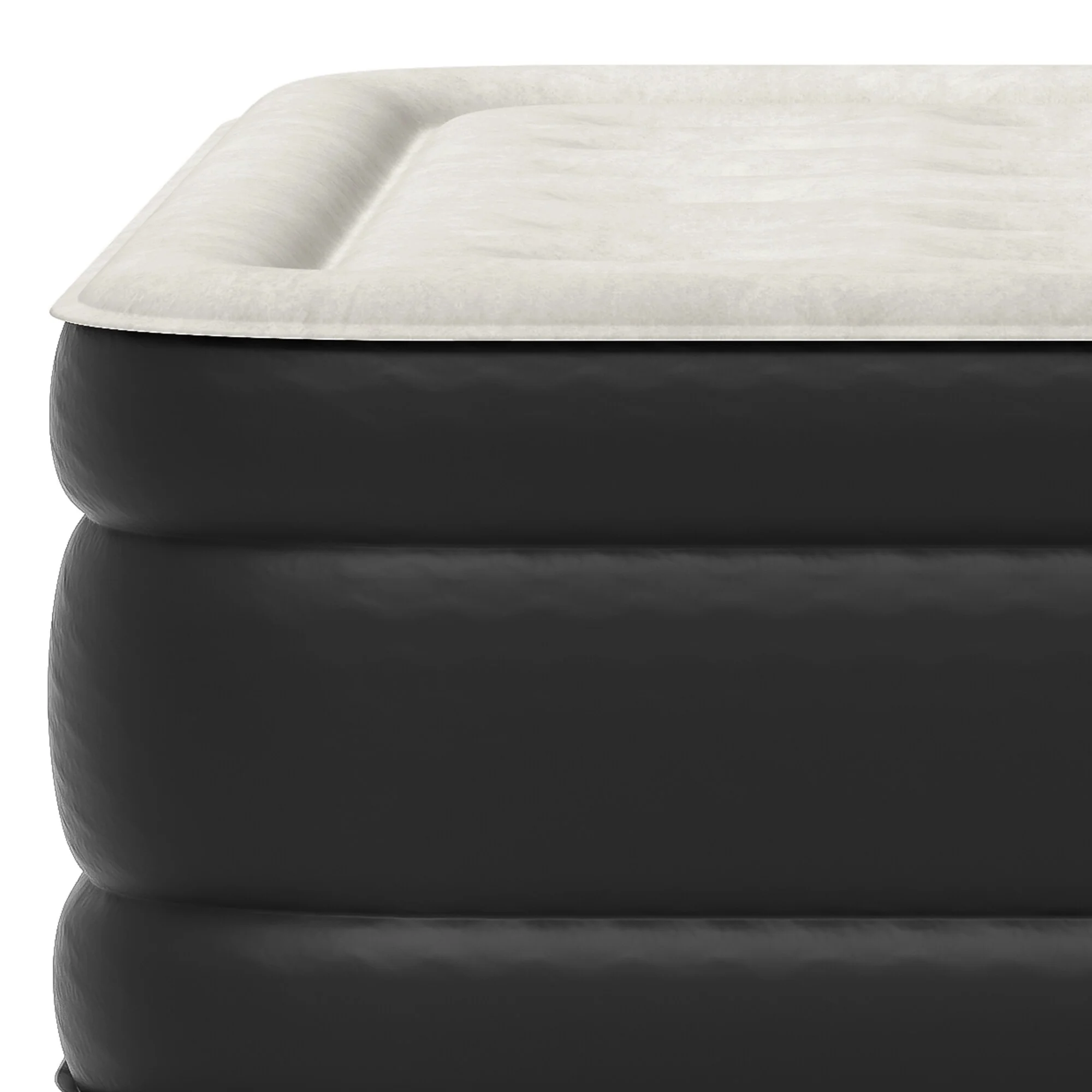 - Made from premium flocked top and high-strength PVC, this air mattress with built-in pump is both durable and comfortable