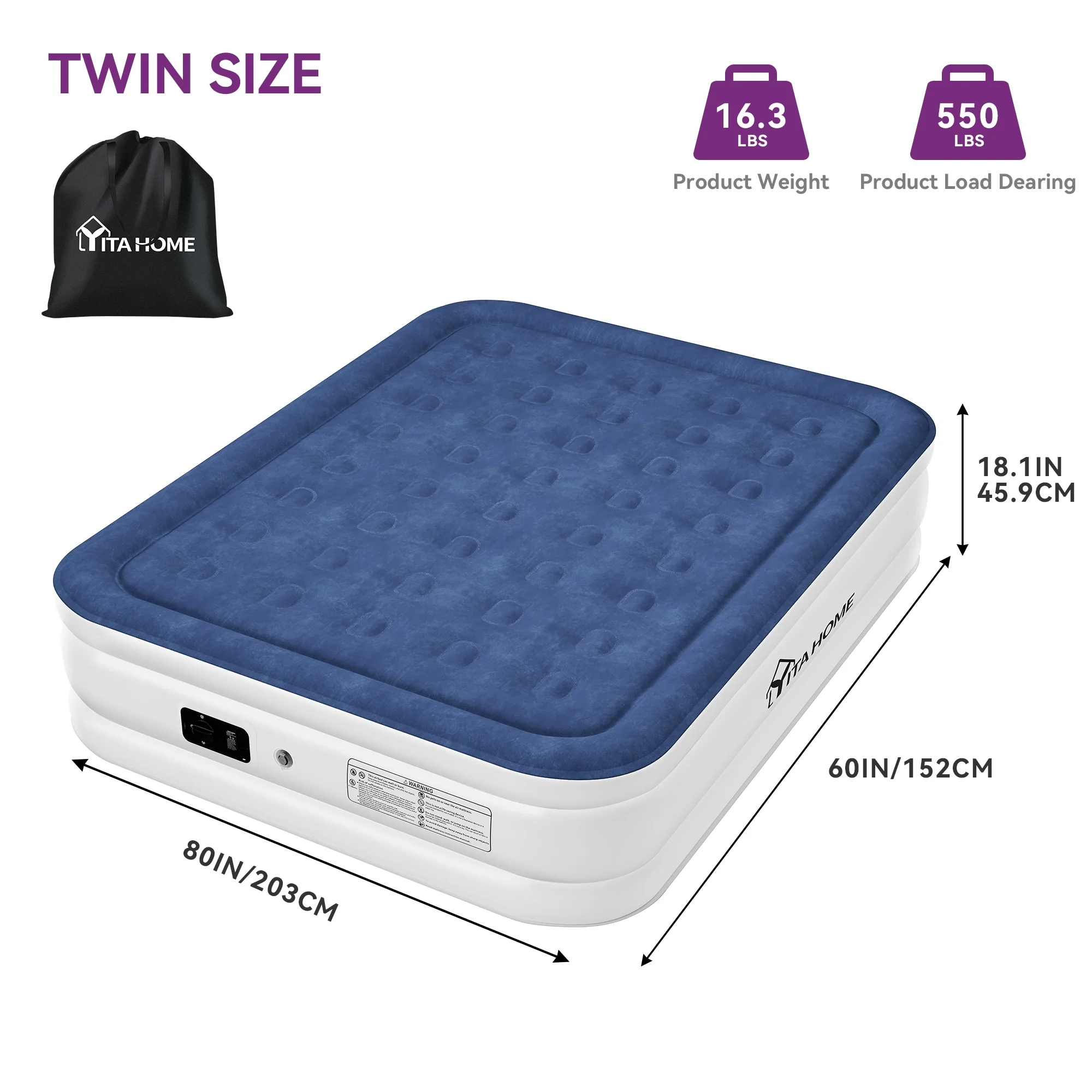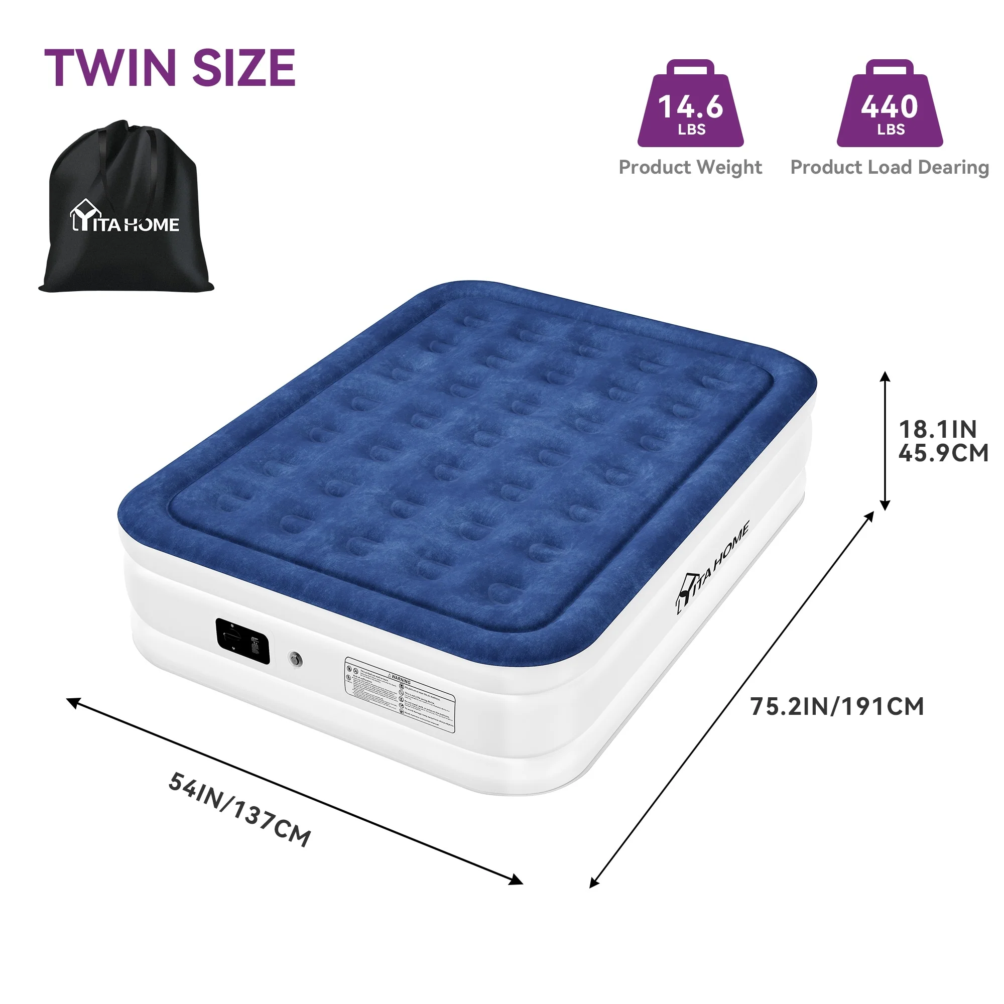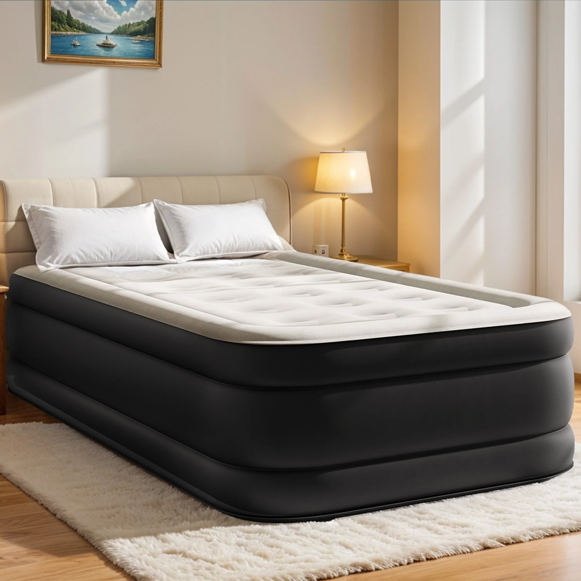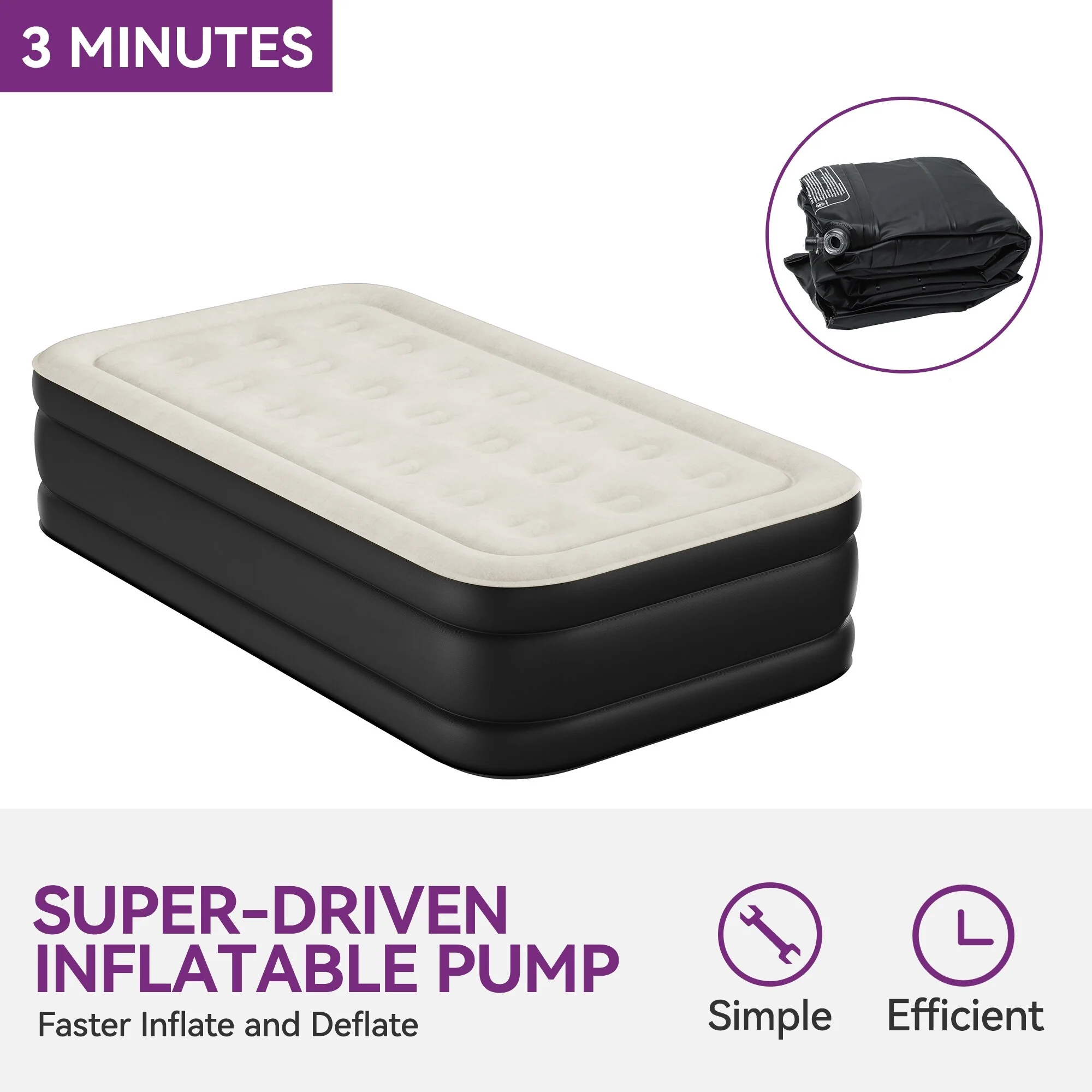 - The inflatable mattress is equipped with a high-performance pump that gets the job done in 3 minutes