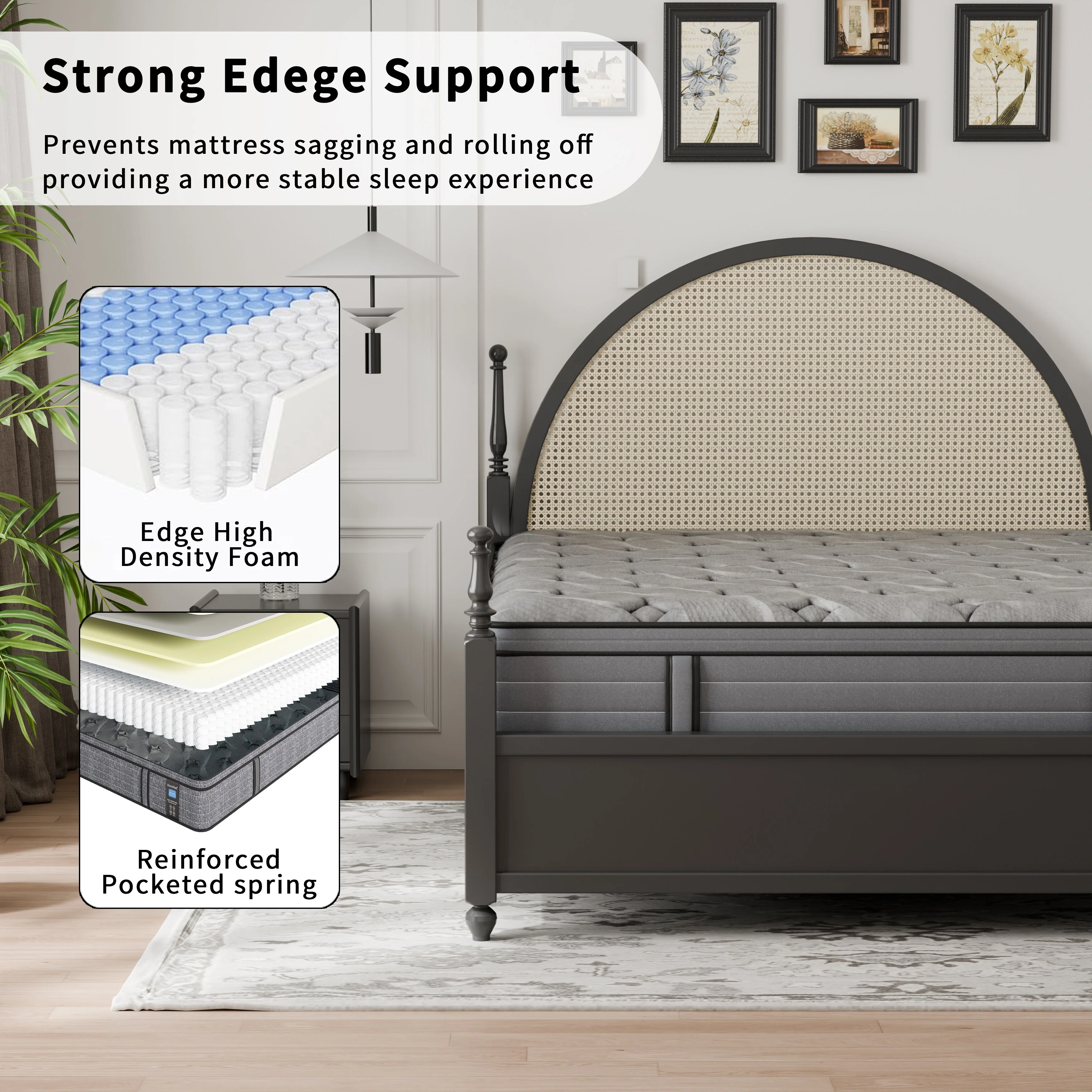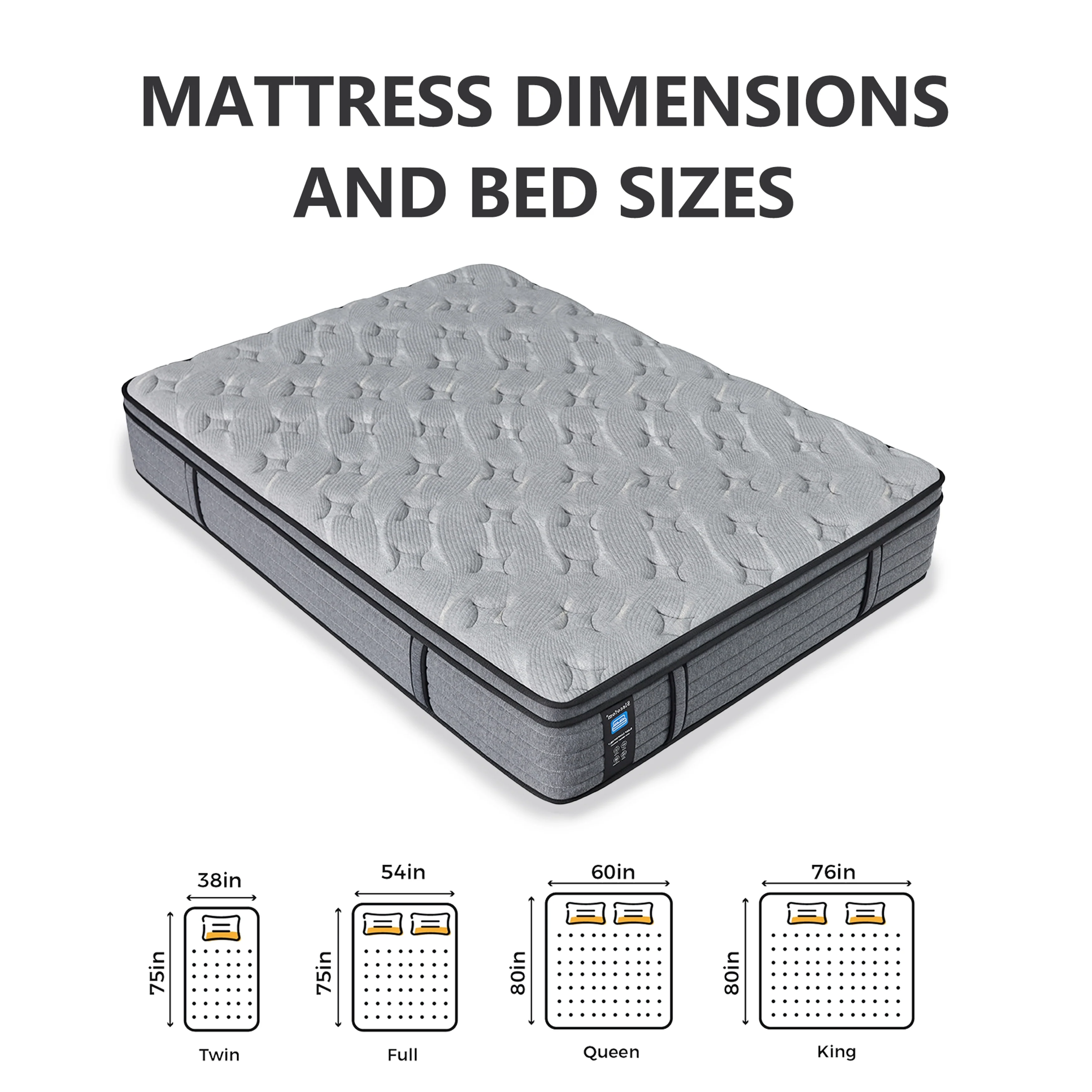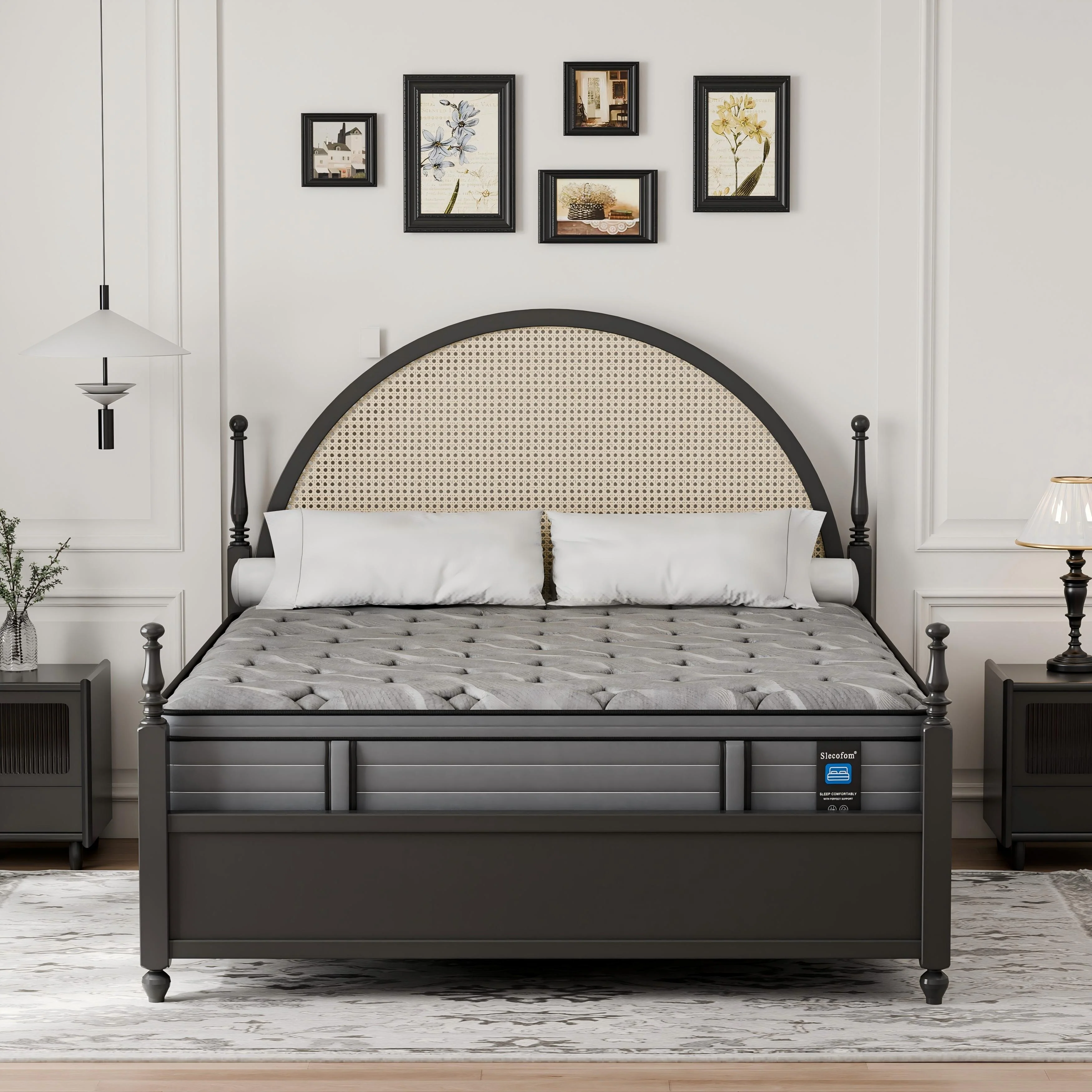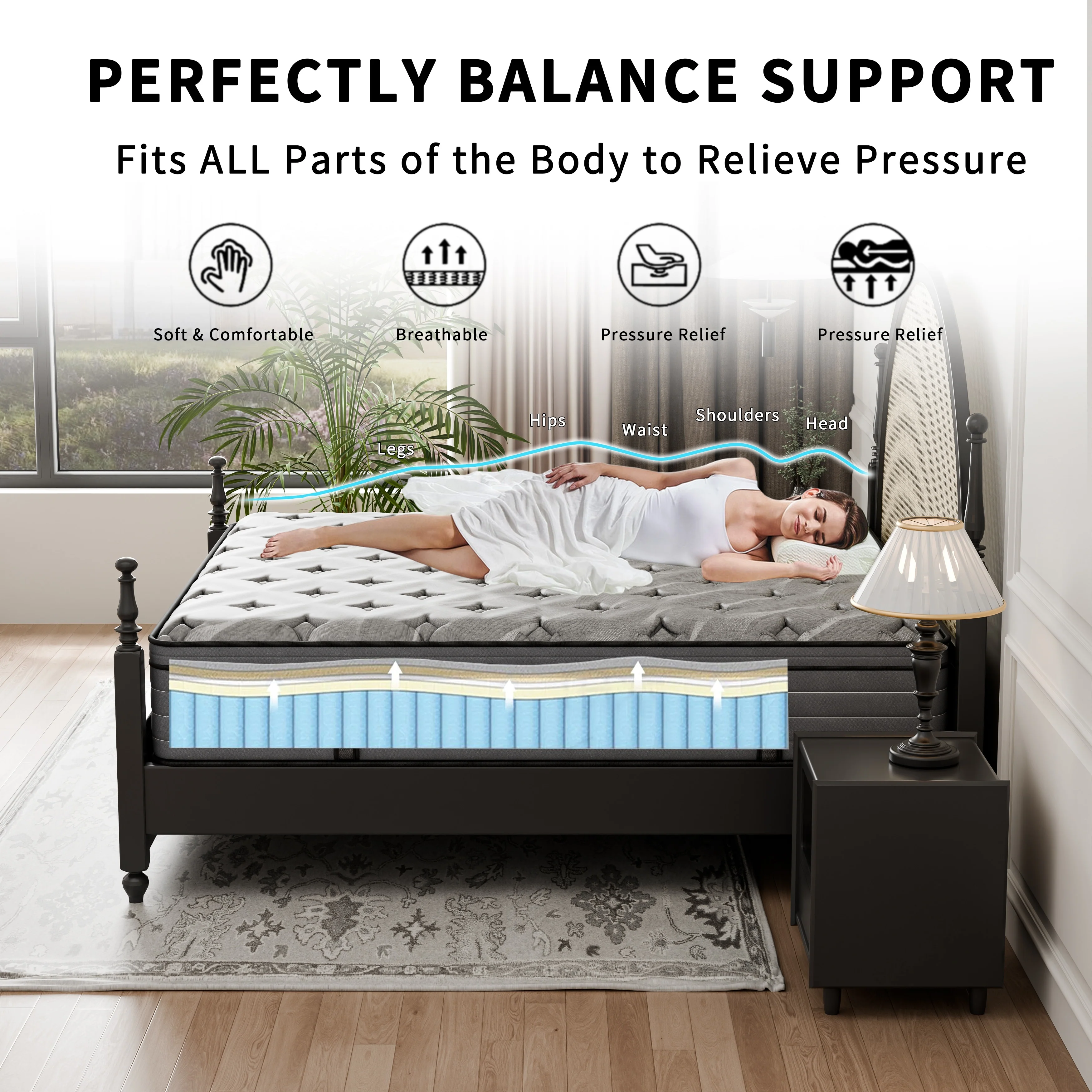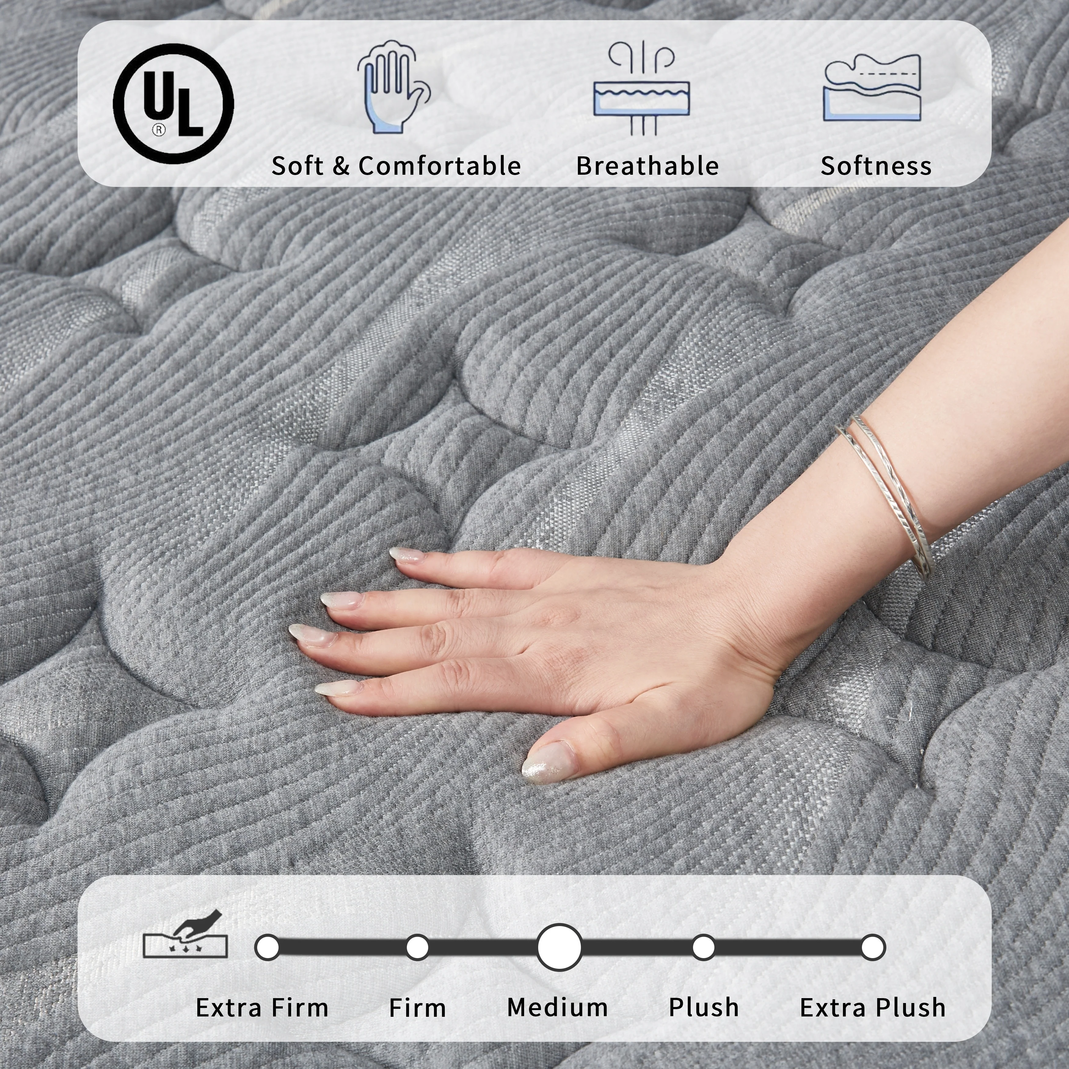 Experience balanced comfort with this 14' medium hybrid mattress. The 7-layer Euro Top construction—from FR-knitted cover to high-density support foam—delivers targeted spinal alignment while breathable foam prevents overheating. Fire-safe core exceeds CFR 1633/1632 standards: peak heat release capped at 200kW with 50% less toxic smoke, ensuring family safety. Individually layered foams isolate motion and lock edge support (250 lbs. seated test). CertiPUR-US certified and OEKO-TEX® certified materials guarantee no fiberglass, low odor. Ships compressed in a box; ready in 24h for any bed frame. Wake up pain-free and refreshed!