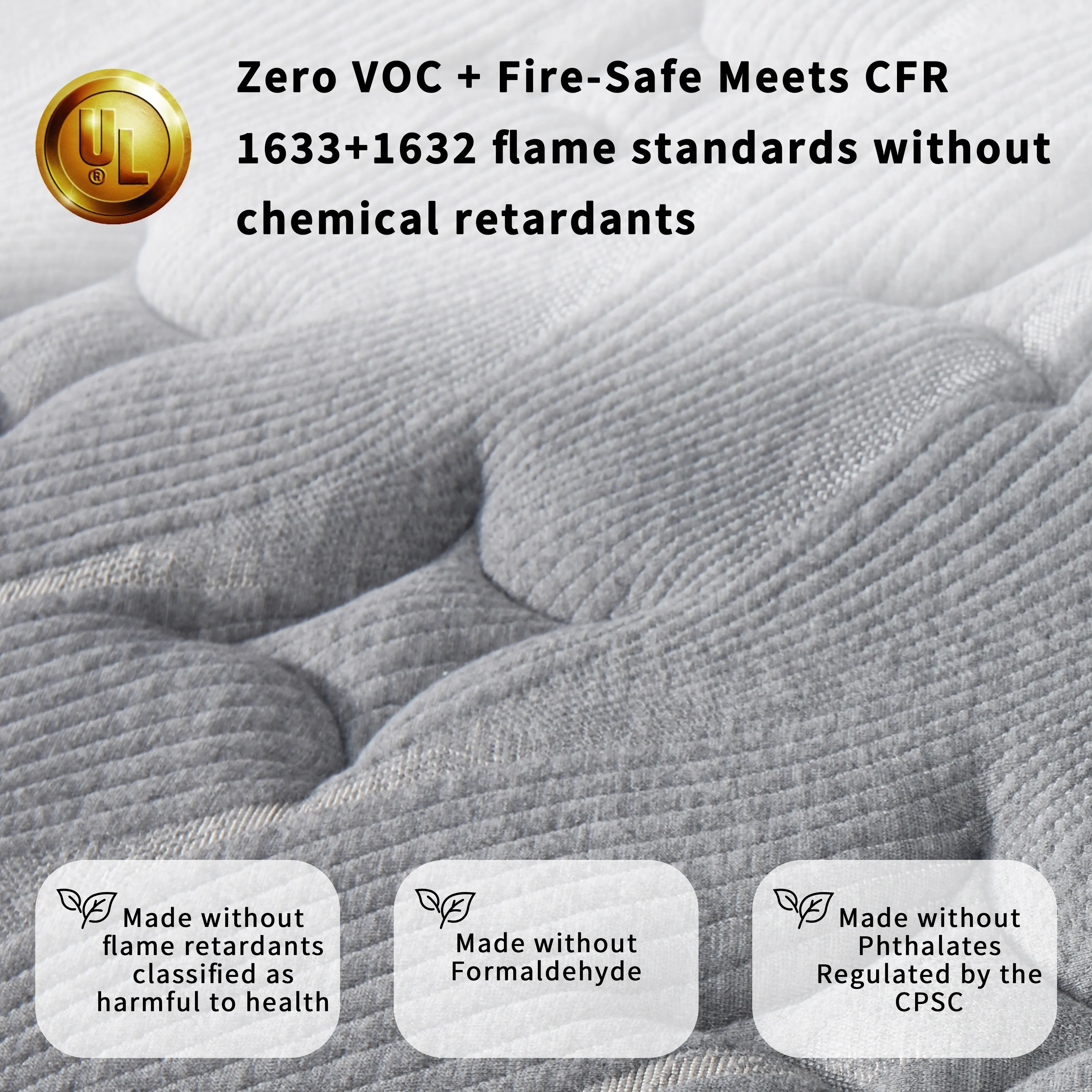 FR fiber knitted cover wicks moisture, while breathable foam layers promote airflow. Sleeps 3°F cooler than traditional hybrids (no night sweats!). - Fire-Safe Certified for Family