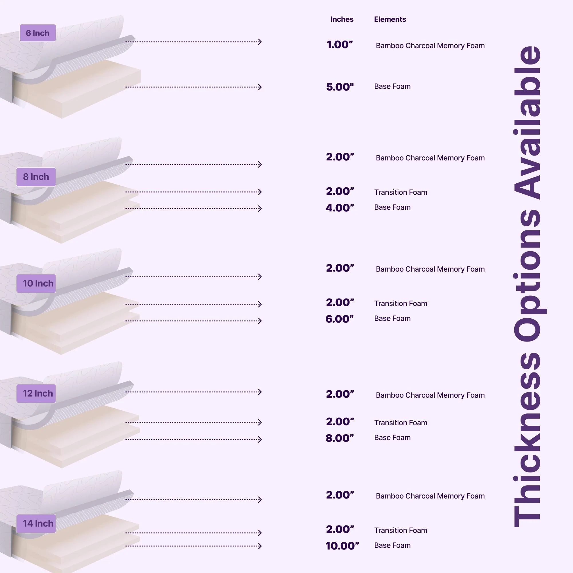 - Fortified Comfort – Feel the sleep-enhancing benefits of 3 layers of foam, each optimized for comfort. Your cooling memory foam mattress is infused with charcoal to regulate moisture, heat, and odor.