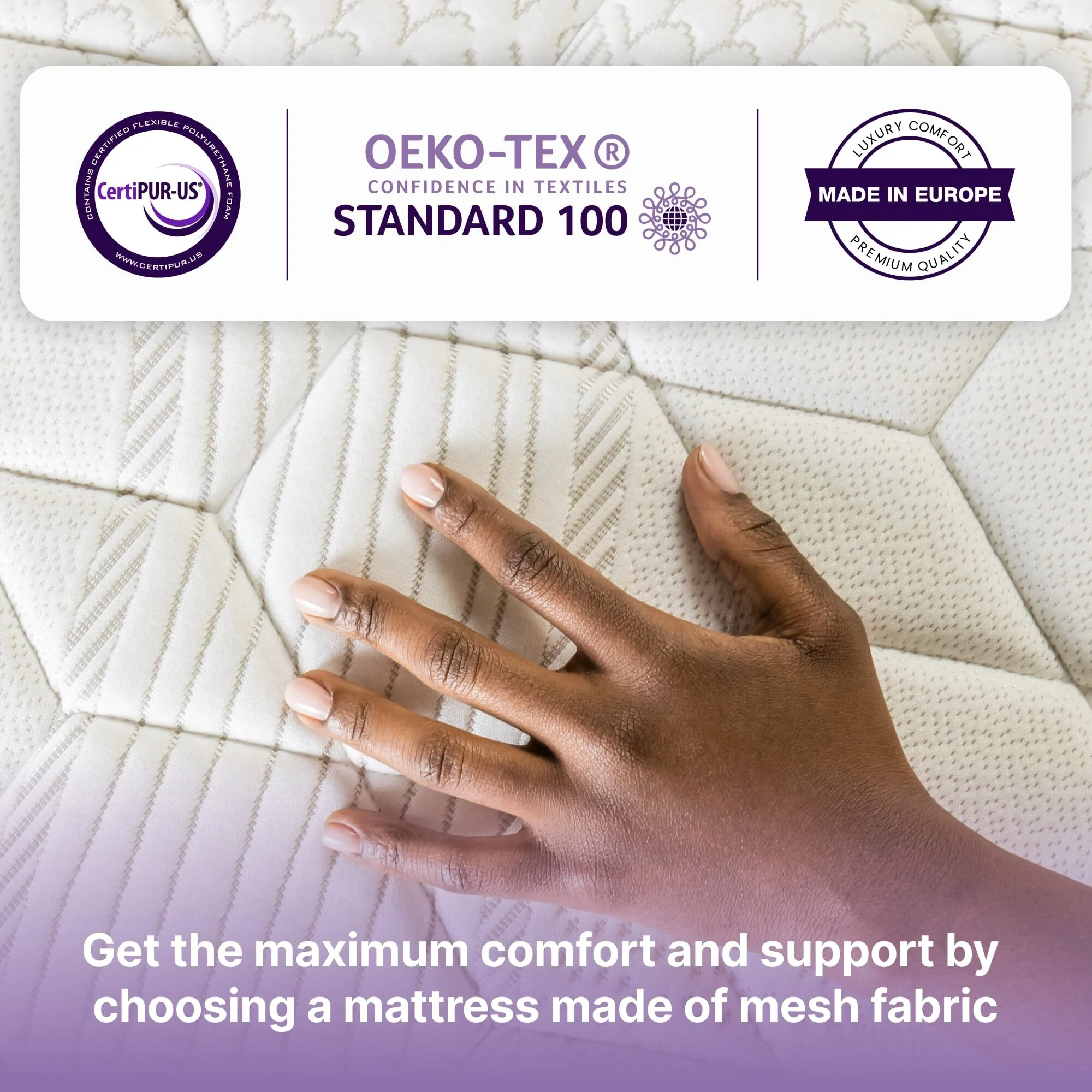 Experience a peaceful slumber with the NapQueen Victoria 12' Cooling Gel Hybrid Mattress. Its soft quilted top and supportive gel base offer pressure relief and cooling properties for a rejuvenating sleep night after night. The ergonomic design features individually wrapped coils and edge zone support for a robust and reliable construction. Ideal for side and back sleepers, this self-contouring and responsive mattress ensures fast response for immediate comfort and relaxation. Enjoy efficient heat transfer, airflow, and breathability, and always feel assured with CertiPUR-US Certified Foams.