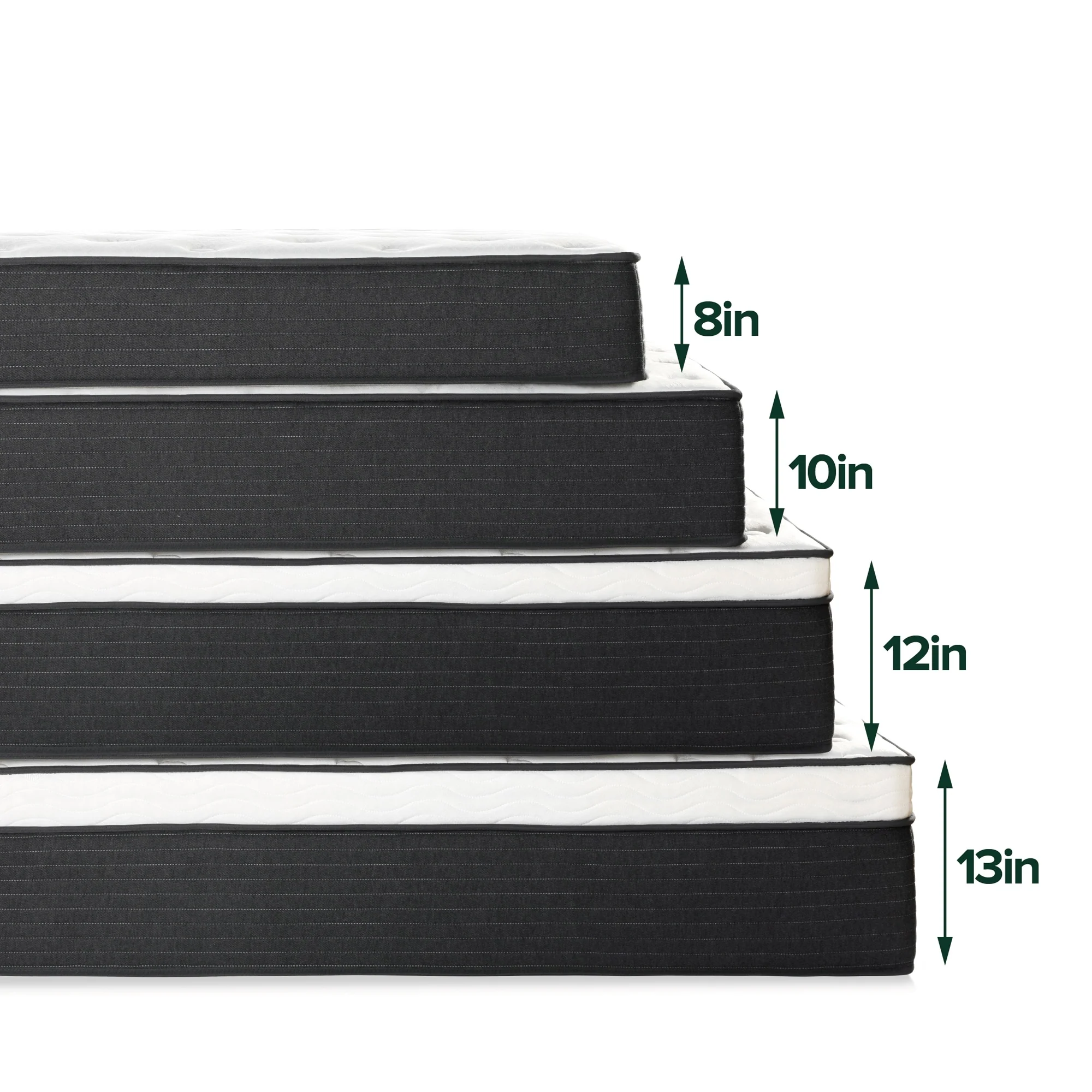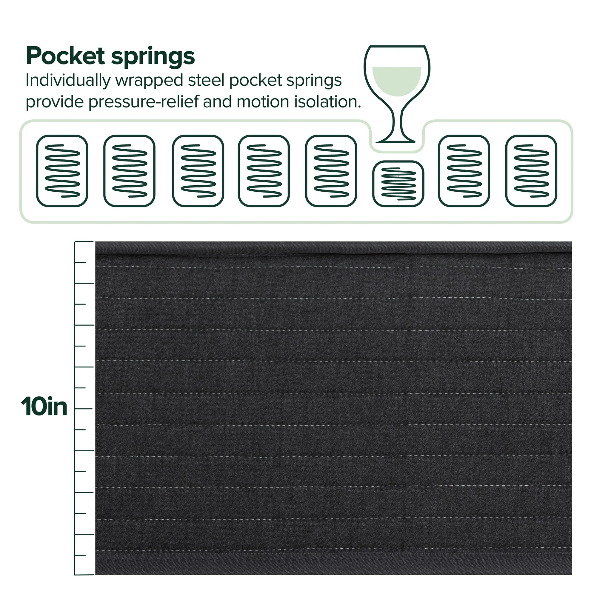 With a system of pressure-relieving, durable pocket springs and skillfully crafted Zinus foam layers for ideal comfort, the Comfort Essential Hybrid offers the finer touches of a high-end mattress at an affordable price. Designed to prioritize your comfort as you snooze, this well made mattress is layered with fiber padded quilting, Zinus Comfort Foam®, and zero-waste Zinus Fusion Foam that cradles your shape, naturally conforming to your curves. Independent pocket springs beneath help optimize pressure relief and reduce any motion transfer felt from a sleeping partner or pet. Crafted with an eye for detail, the Comfort Essential Hybrid also features a two-toned white and grey cover with an attractive modern look and soft, breathable feel that'll beckon you into bed night after night. And although it's reasonably priced, we haven't skimped on what really matters, like convenient, compact packaging that ships straight to your door, and a worry-free 10 year warranty for complete peace of mind. Think impressive comfort and great sleep are beyond your wallet's reach? The Comfort Essential Mattress will make you think again.
