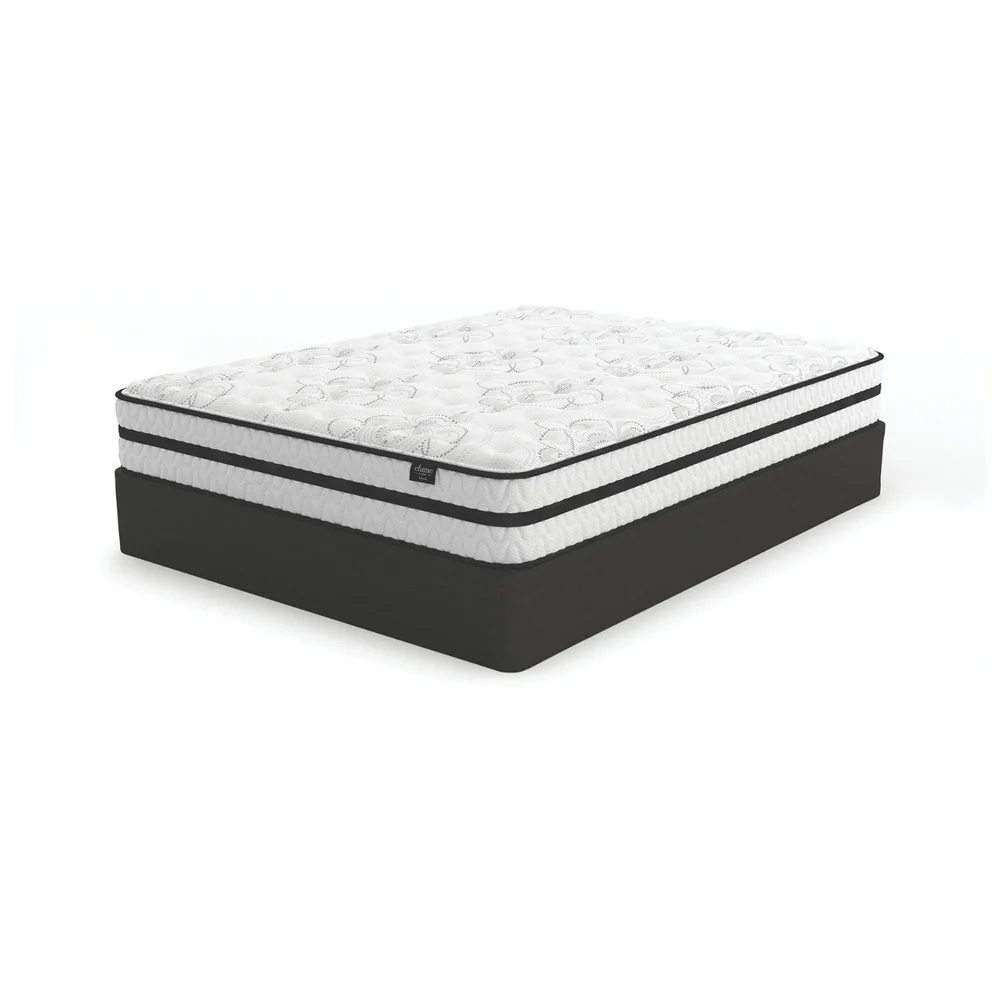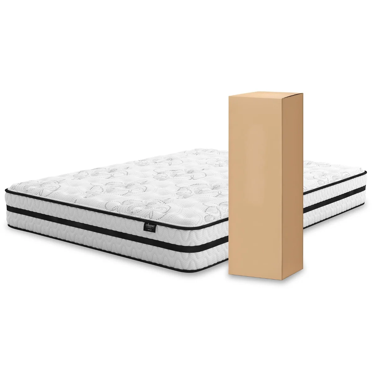 The fresh look of the Ashley Furniture Chime 10-inch Hybrid Black and White Mattress in a Box is an appealing addition to any bedroom. This mattress is rated at a comfort level of medium and boasts high-density gel memory foam for lumbar support, a high-density quilt foam in its cover, and two perimeter rows of nine-inch, 13-gauge individual power-packed wrapped coils and pocketed coils for edge-to-edge support for your sleeping comfort. This mattress comes with a 10-year non-prorated warranty. The bed is perfect to pair with an adjustable base for additional comfort; foundation or box springs; sold separately.
