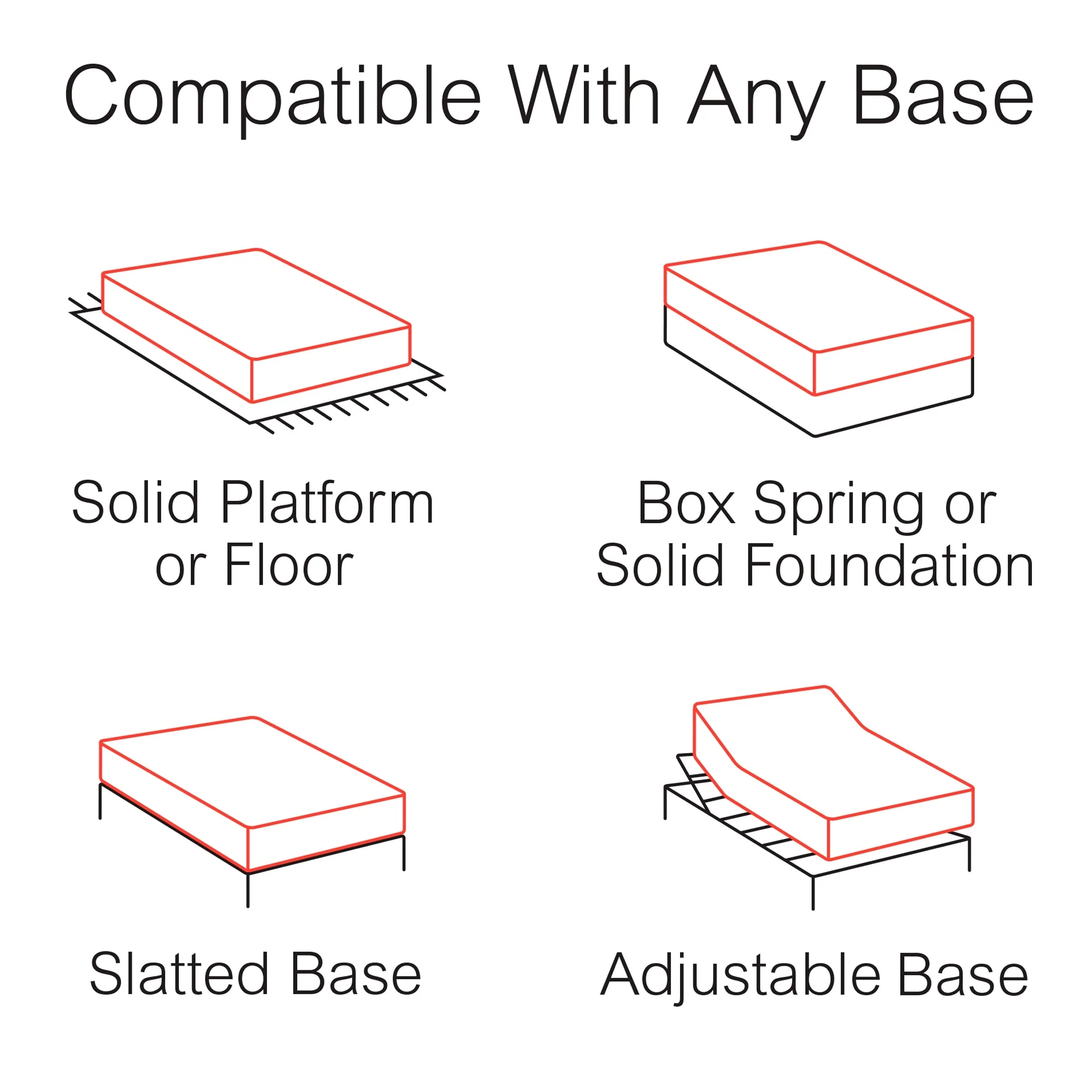 - Can be used with any conventional box spring or platform foundation