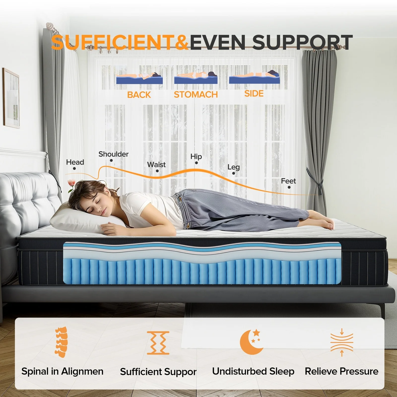 • Coil springs 11.5% thicker than market standard: Provides better support, longer lifespan, and prevents collapsing.