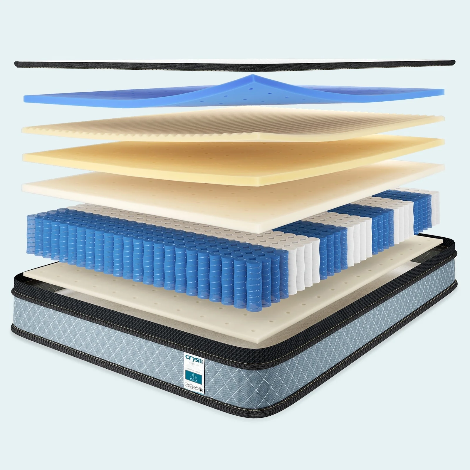 - Crystli mattress is efficiently compressed into a box that's shipped right to your door, simply unbox, unroll and the mattress does the rest, expanding to its original shape within 72 hours.�