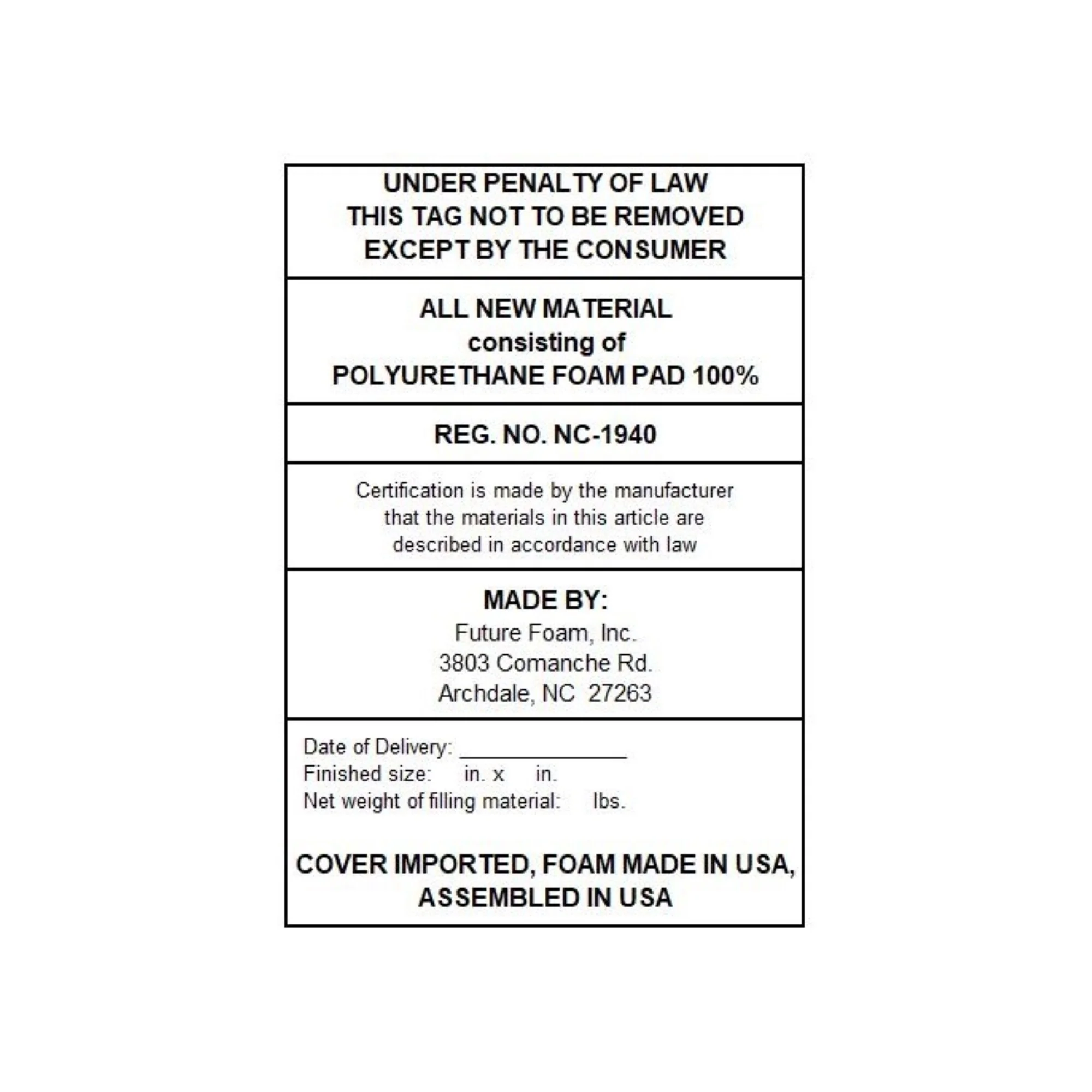 - Twin: 38 inches wide x 75 inches long x 10 inches high
