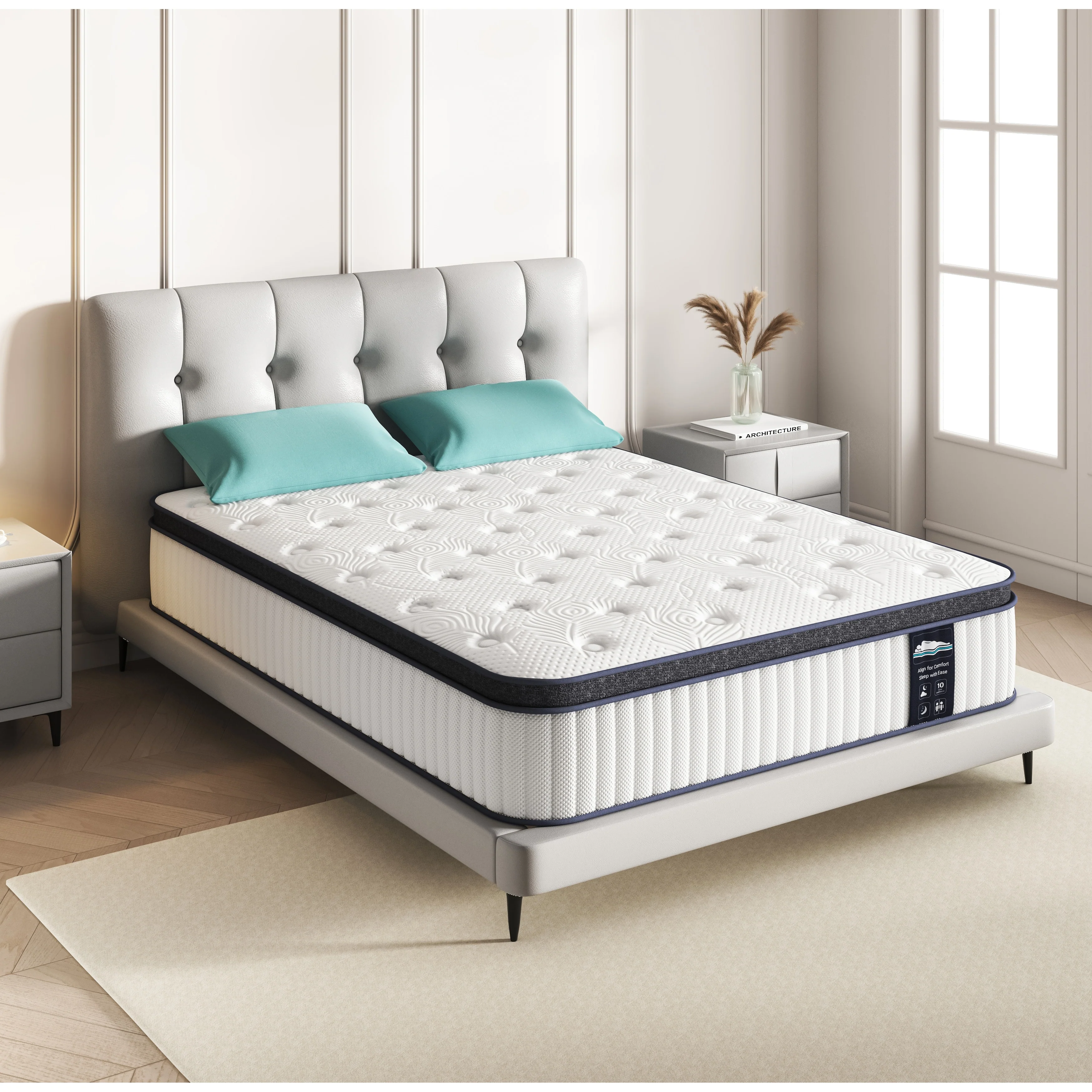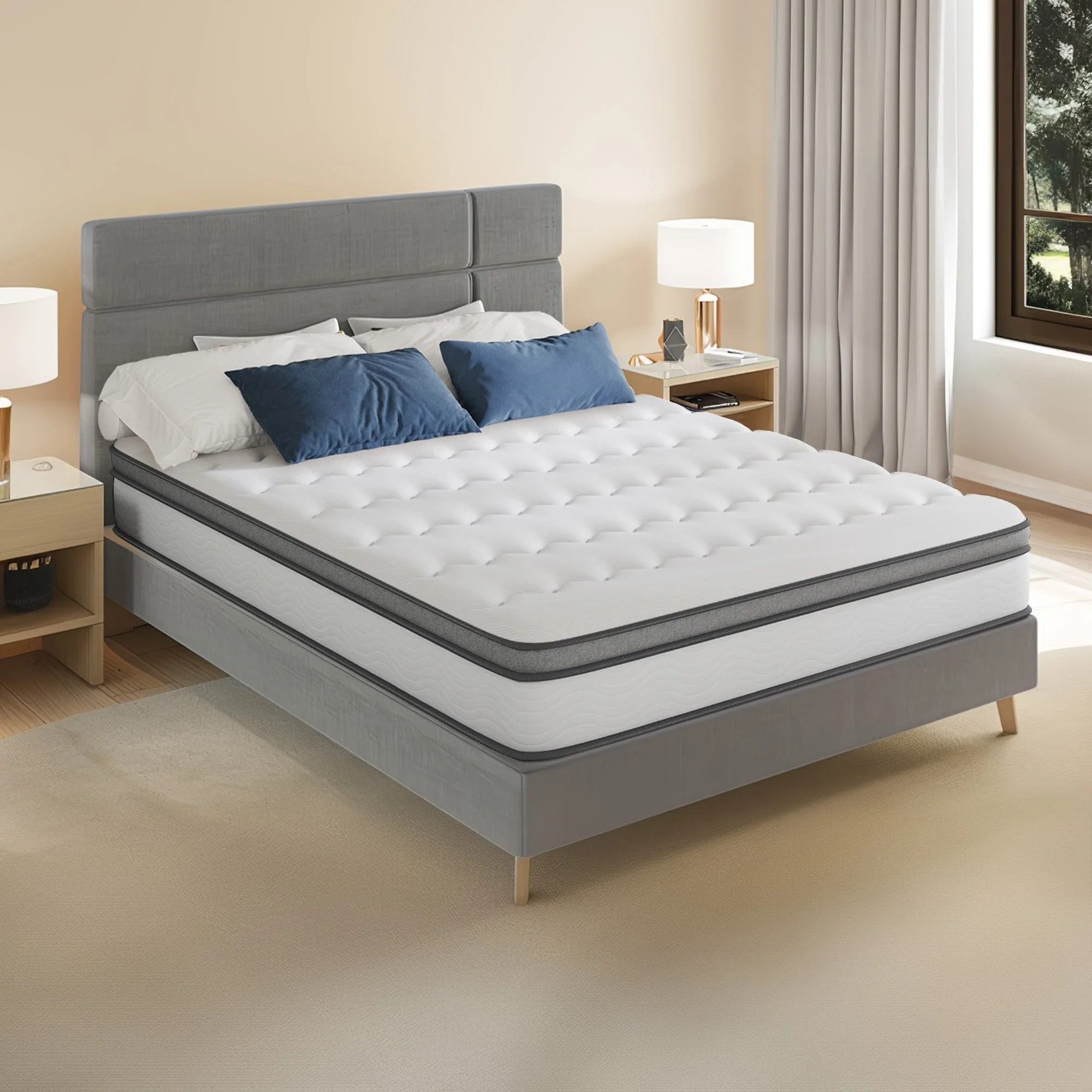 12 Hybrid Mattress - Bamboo Charcoal Foam, 5-Zone Pocket Coils, CertiPUR-US庐 Certified, Medium Firm Support