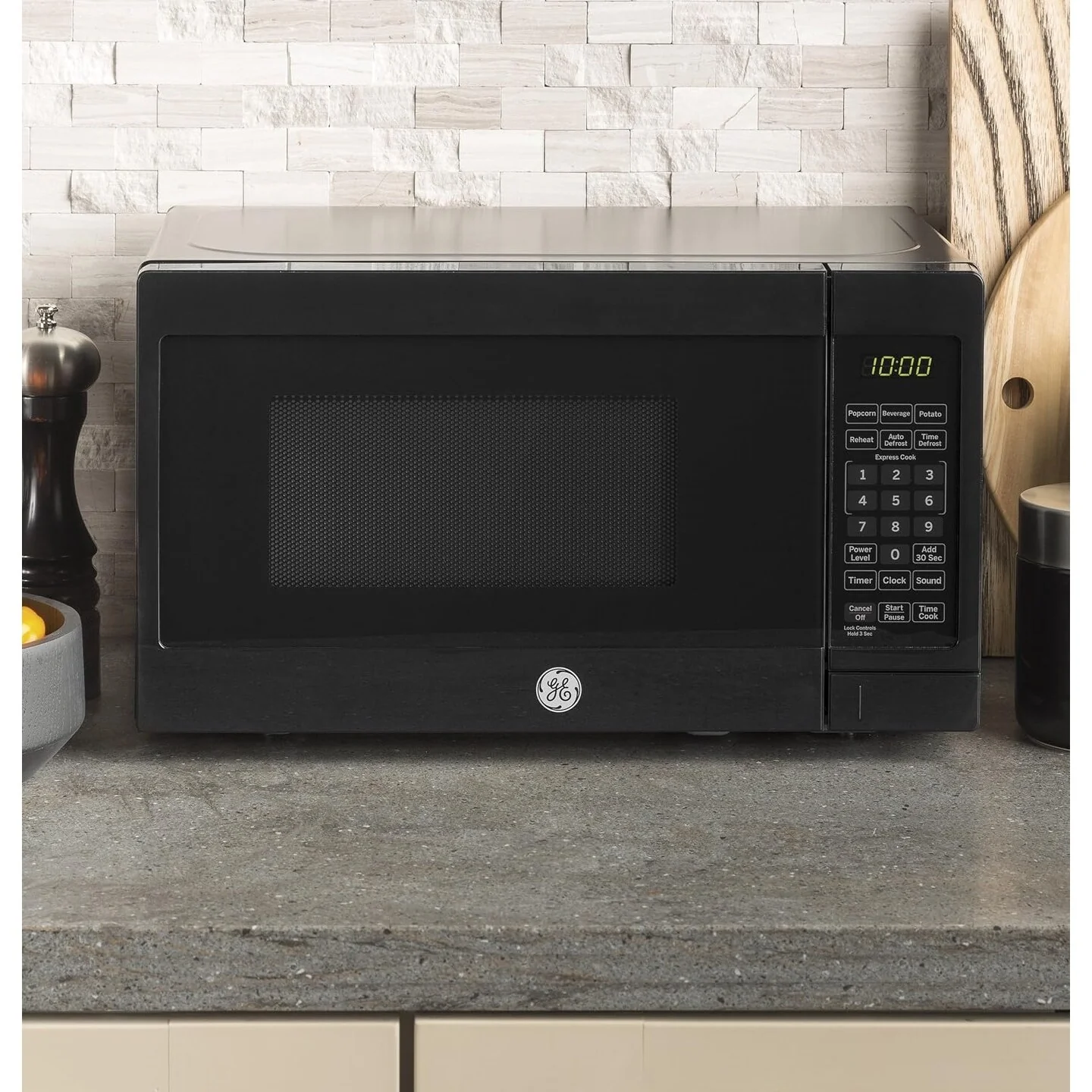 COMPACT YET POWERFUL: 700 watts of power and 0.7 cu. ft. inside allow for effective, efficient cooking while not taking up valuable kitchen space; glass turntable rotates for optimum cooking EASY SET UP: Freestanding microwave fits easily on countertop or open shelf, with 39 power cord CONVENIENT CONTROLS: Simple, one-touch operation with Instant On express cooking controls and multiple cooking modes; kitchen timer, child lock controls and cooking complete alarms add convenience EASY AUTO OR MANUAL DEFROST: Defrosting times and power levels can be programmed or set manually for optimal results SOLID, SLEEK DESIGN: Clean lines, electronic keypad and stainless steel with black glass construction provide elevated design