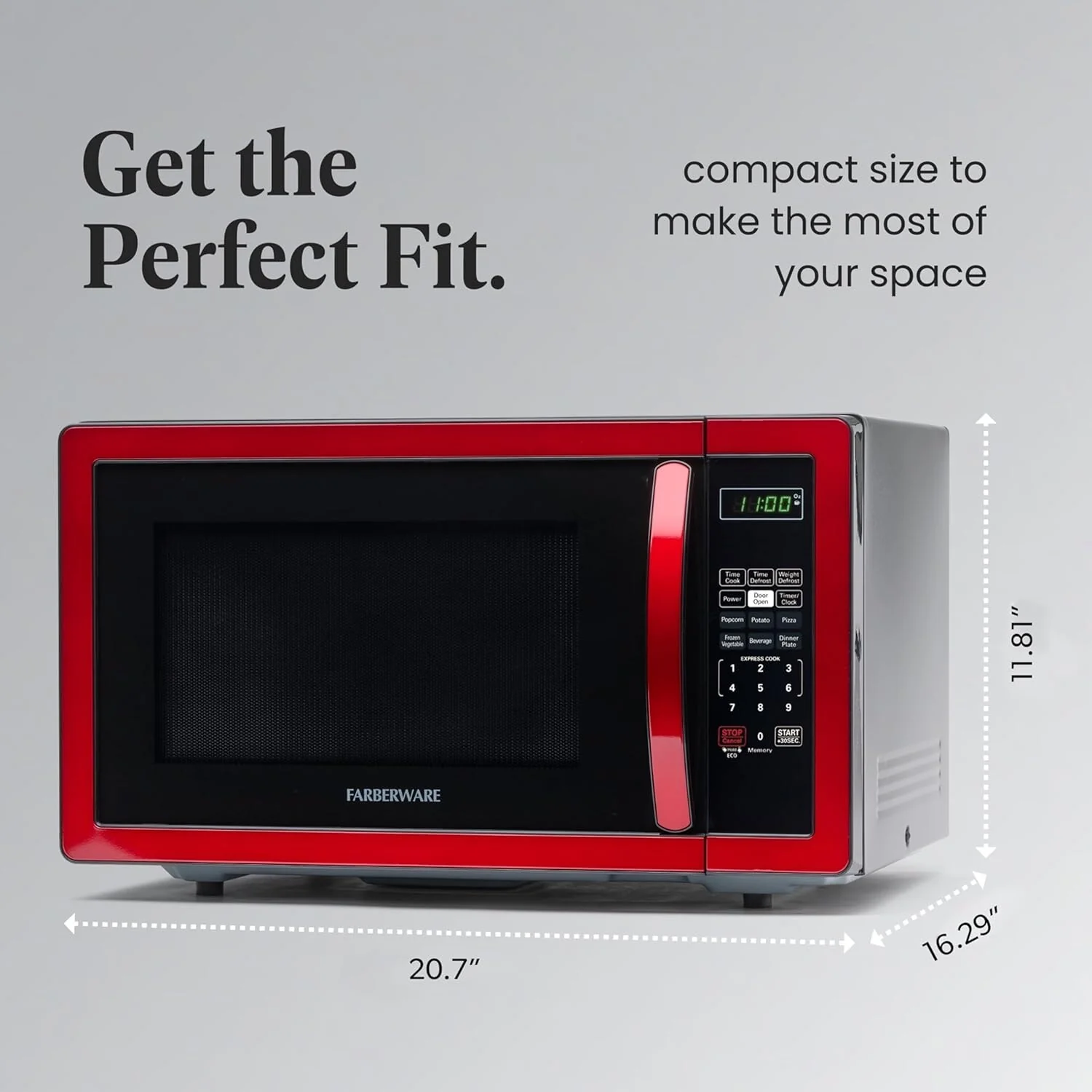 PERFECT SIZE: Measuring 1.1 cu ft, this microwave is the ideal small-space solution that offers full-sized cooking in a compact space. It features an easy-to-clean interior and exterior and is perfect for the home or office.
