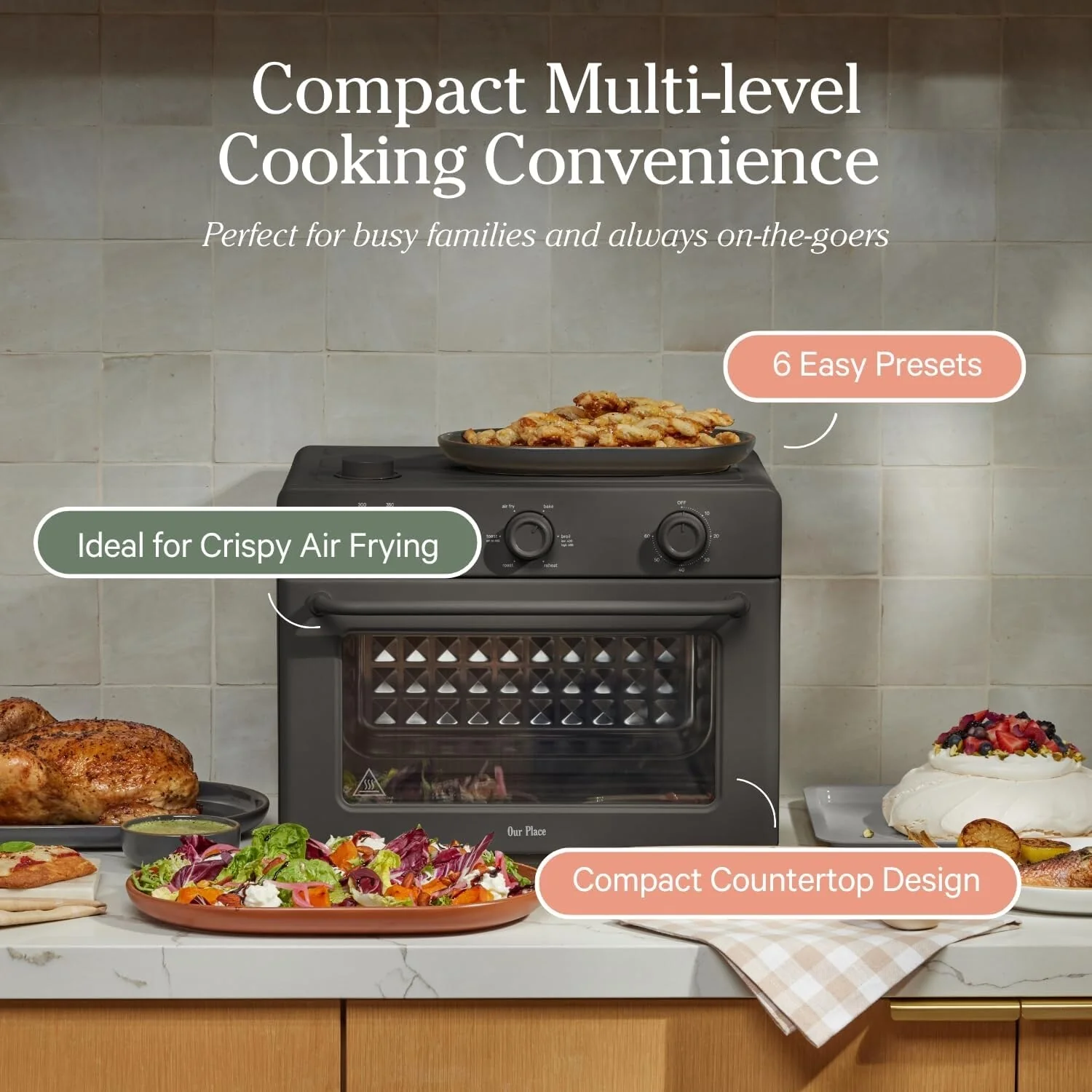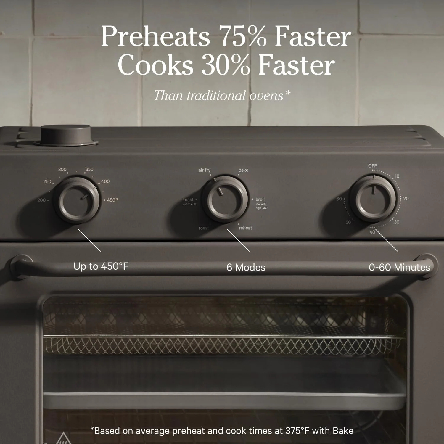 6-IN-ONE COOKING: IT is a compact 6-in-1 air fryer toaster oven combo, offering versatile functions like baking, broiling, toasting, air frying, and reheating for quick, delicious meals; it��s the ultimate baking and convection oven. XL FAMILY-SIZED CAPACITY: With its roomy 32QT capacity, this all-in-one oven makes it easy to cook for the whole family. Easily cook large meals, fit a 12-inch pizza, or prepare multiple dishes simultaneously, ideal for family gatherings. FAST & EFFICIENT: Preheats in less than 3.5 minutes and cooks up to 35% faster than conventional ovens, saving you time and energy. Enjoy 1700W of power, allowing for efficient cooking; with a temperature range of 200掳F to 450掳F and preset timer. TOXIN-FREE NONSTICK: Constructed from durable stainless steel and glass, this cookware offers both aesthetic appeal and long-lasting performance, while also being free from PFAS and other harmful Forever chemicals. STEAM INFUSION & AIR FRYING: Enjoy the toaster and air fryer combo, which features steam infusion to keep meats juicy and bread fluffy; this countertop oven air fryer combo ensures faster, healthier meals with golden, crunchy, oil-free perfection. WHAT��S INCLUDED: Includes the Large Wonder Oven, 1 Large Ceramic Coat Bake Tray, 1 Large Air Fryer Basket, 1 Large Crumb Tray, 2 Large Wire Racks, and 3 Guides (User, Quick Start and Recipe)