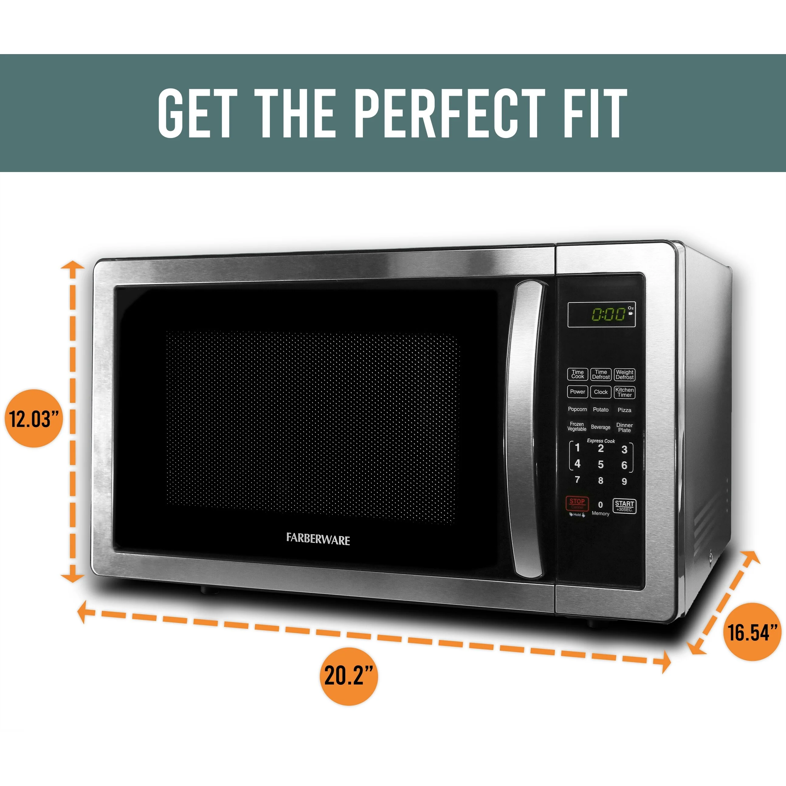 - CONVENIENT: Farberware 1.1 Cu. Ft. microwave oven is the ideal anywhere you need it small microwave solution for home or office. Full-sized cooking that fits in a compact space.