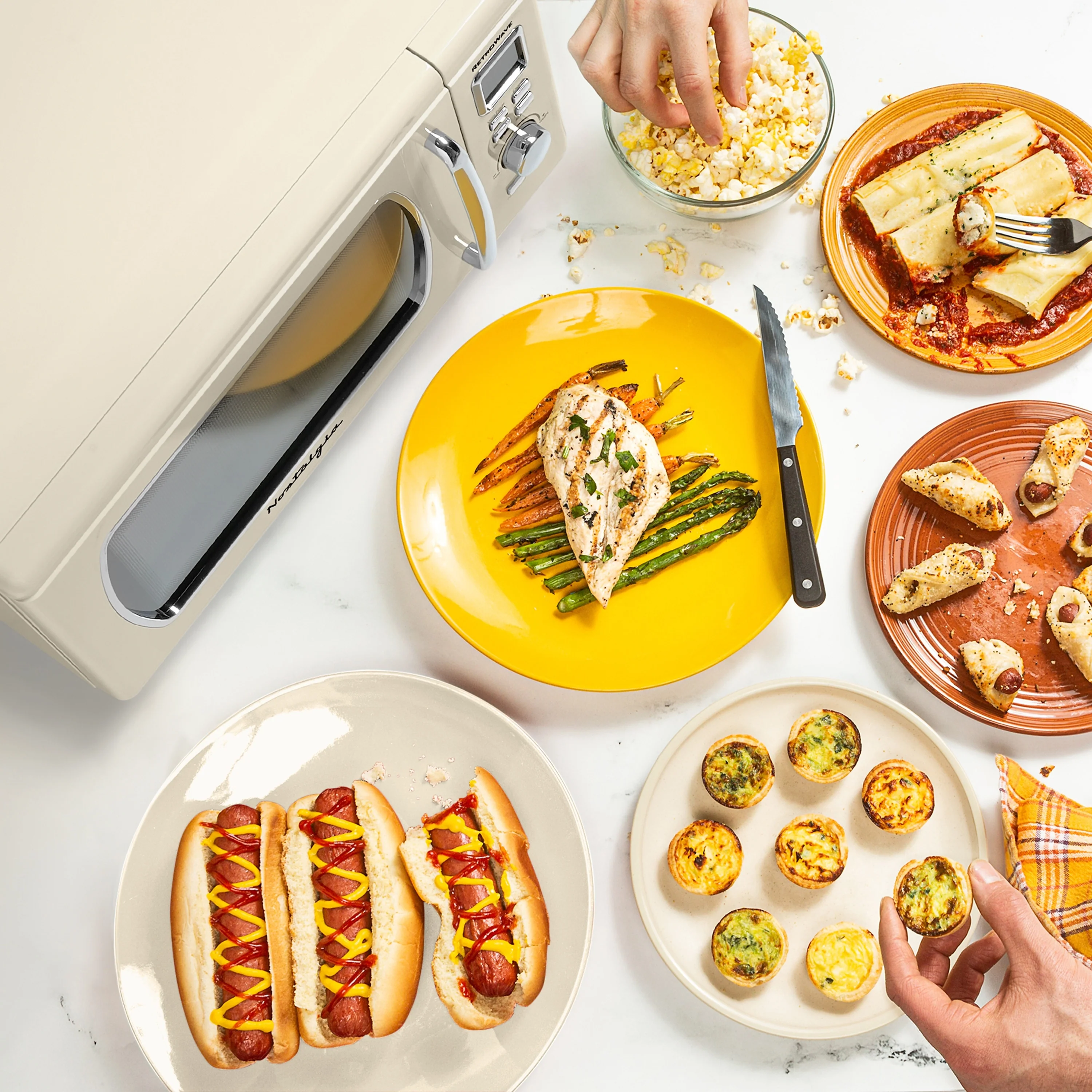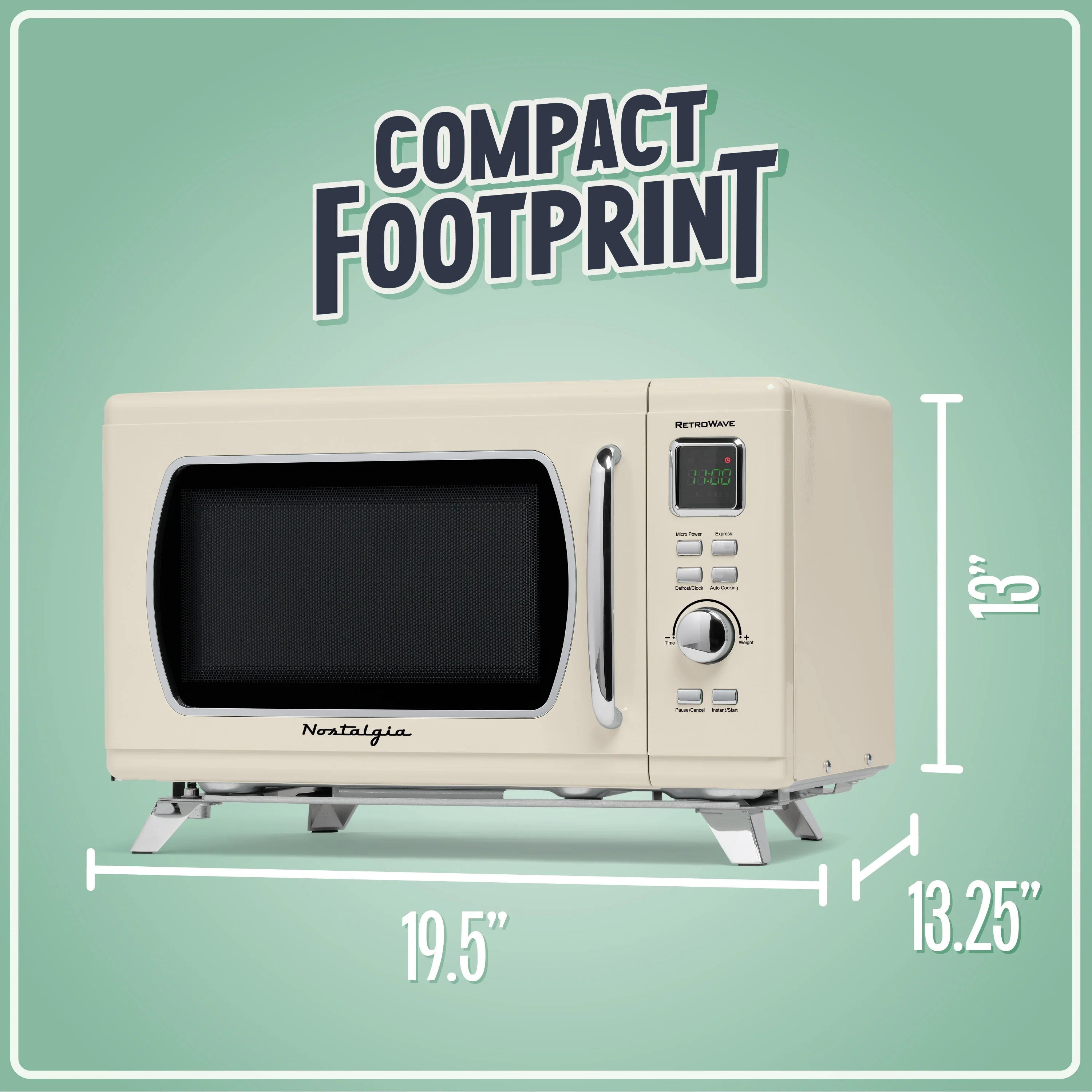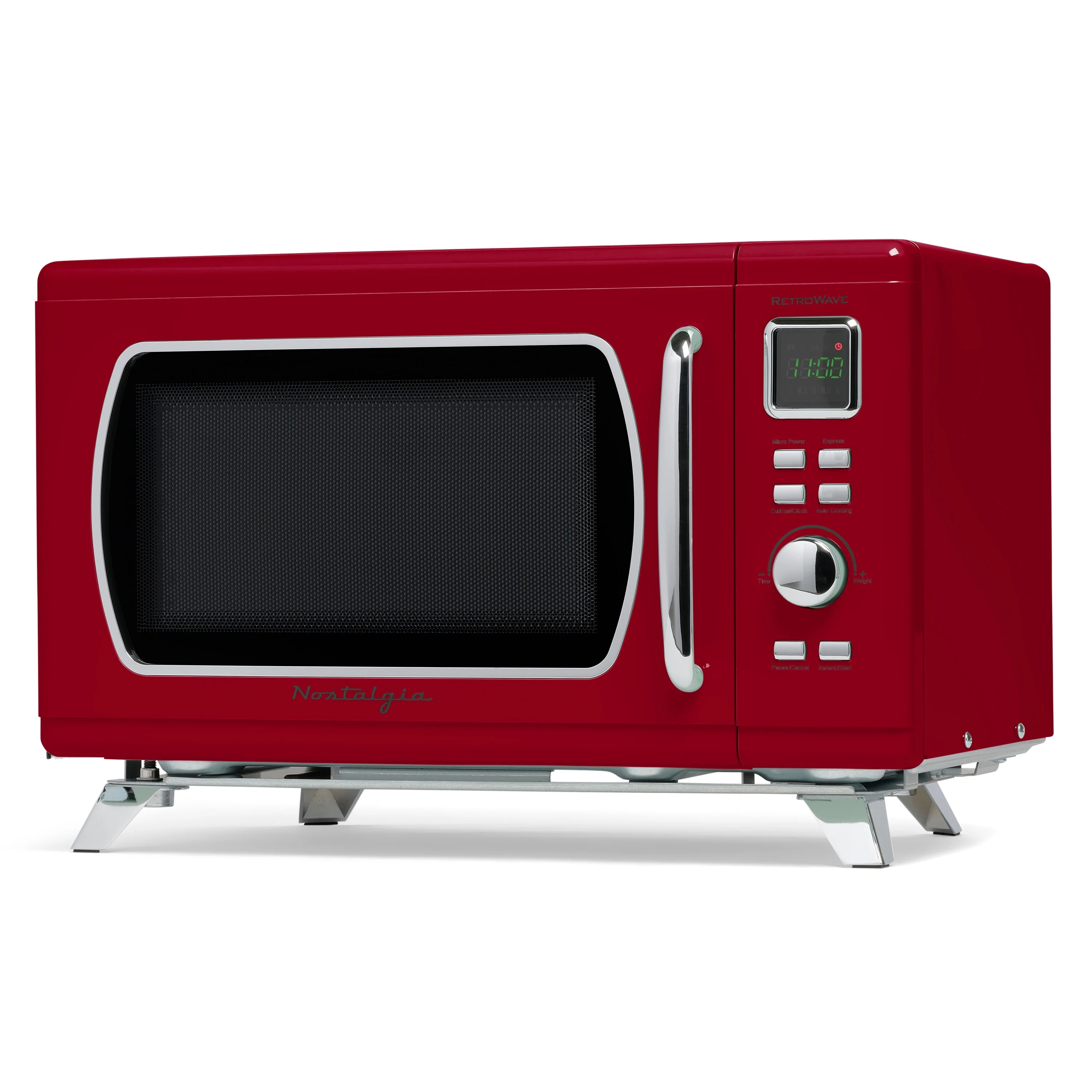 - VINTAGE ACCENTS: Boost your kitchen with a classic mid-century design. This large microwave has a sleek chrome door handle, control panel, accents, and splayed feet that add fun and flair to this unique retro-styled appliance.�