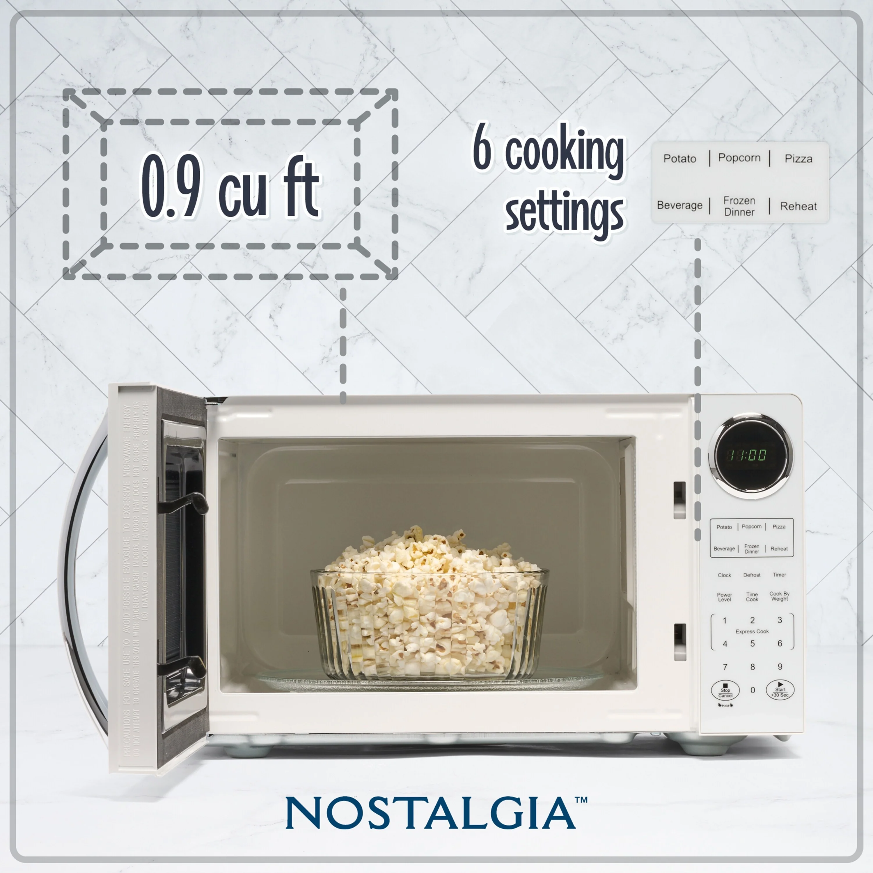 - RETRO ACCENTS: A sleek design with a user-friendly control panel, this microwave looks great in any modern kitchen.