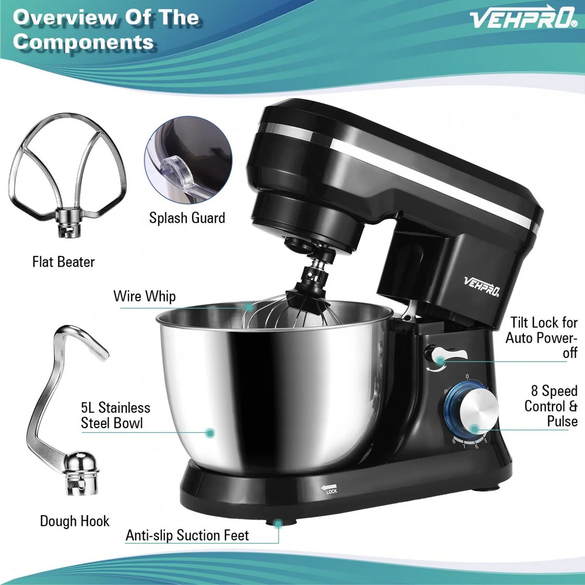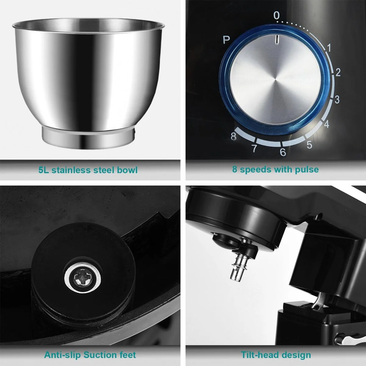 5L 380W 8-Speed Tilt-Head Food Mixer, Kitchen Electric Mixer