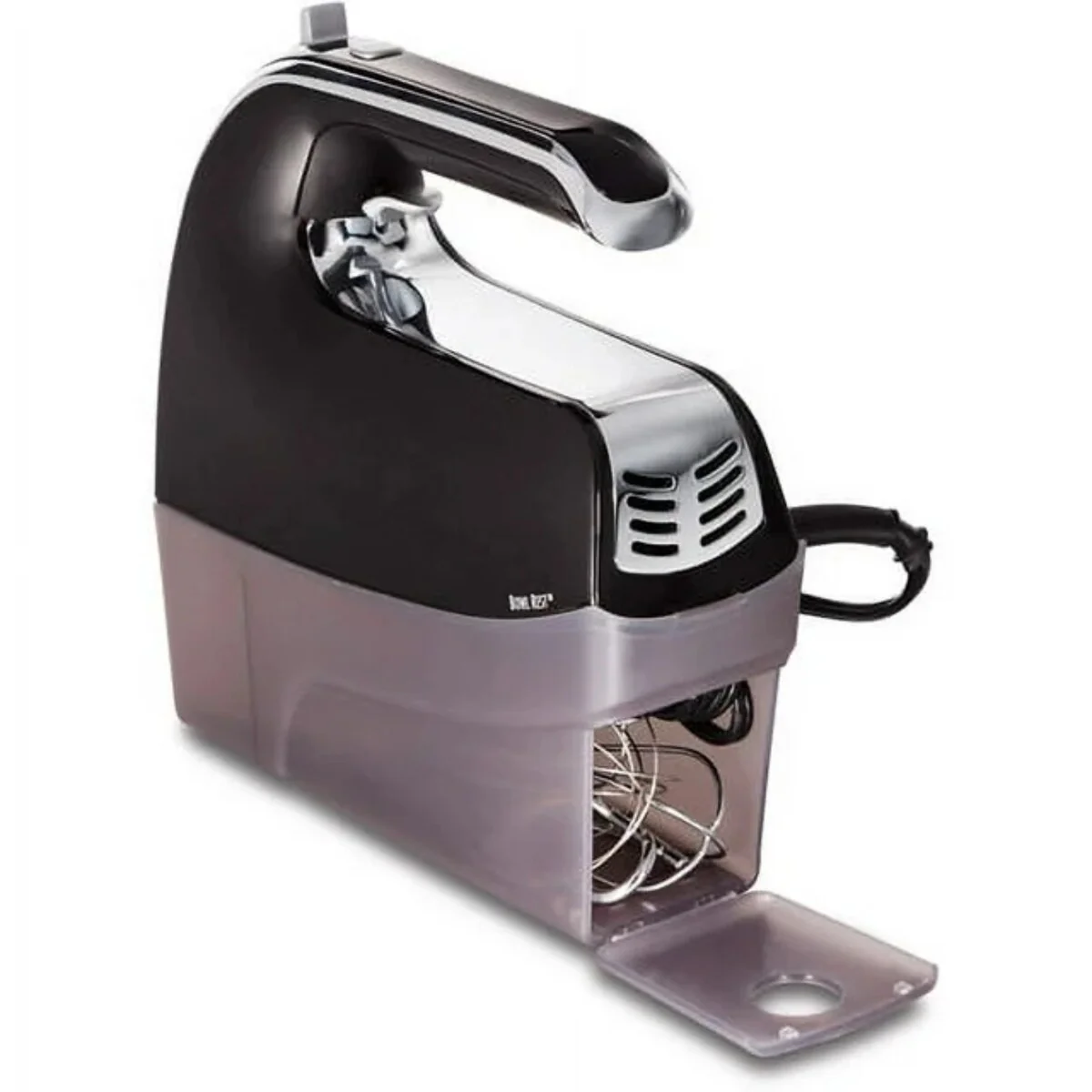 - 6 attachments included - twisted wire beaters, a milkshake mixer, dough hooks, and a whisk