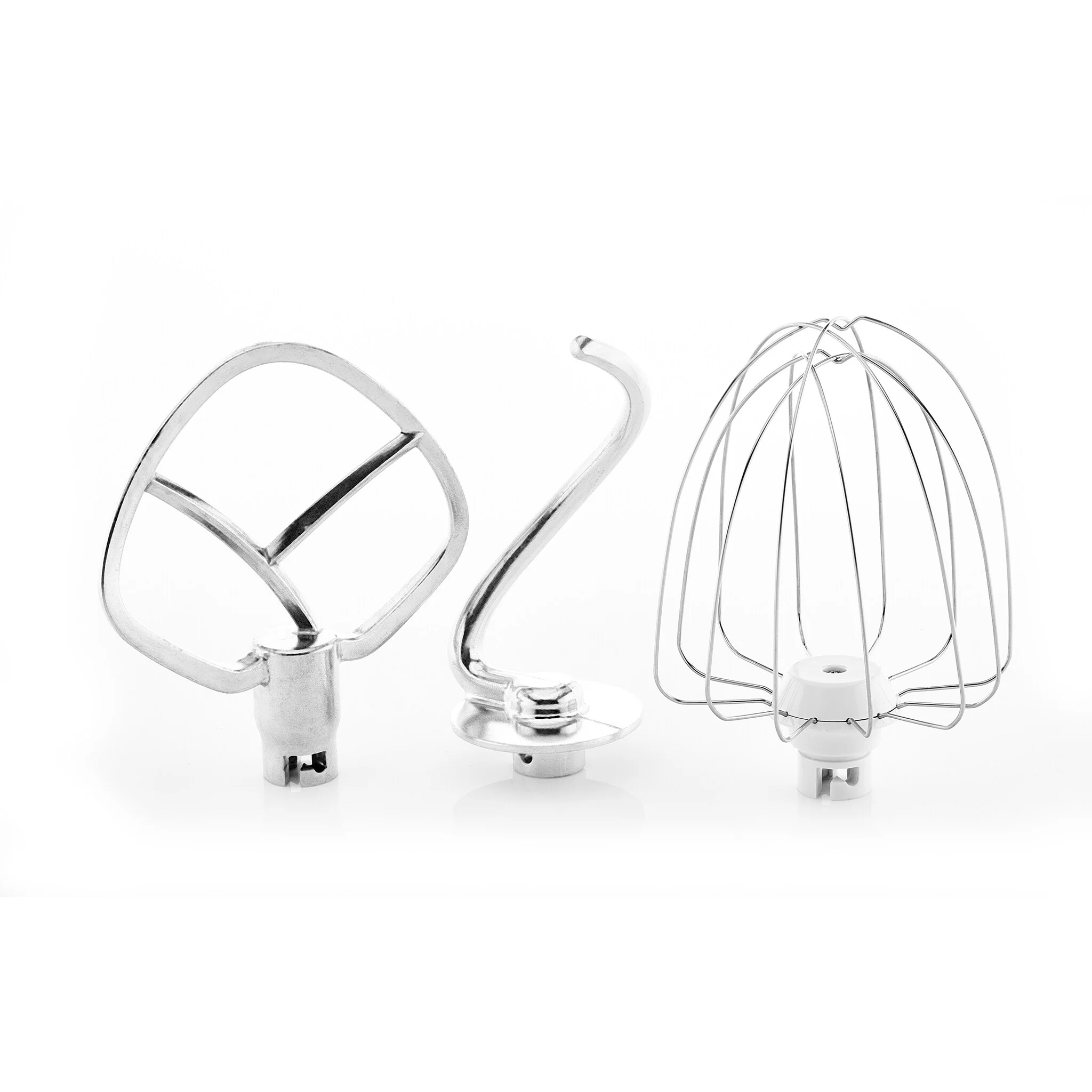 Multiple Accessories: It comes as standard with a variety of accessories for your every need. A dough hook, beater, egg whisk, and handy splash cover to keep your kitchen space nice and clean.