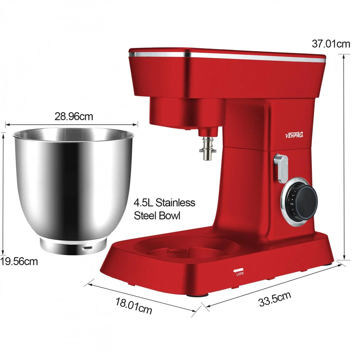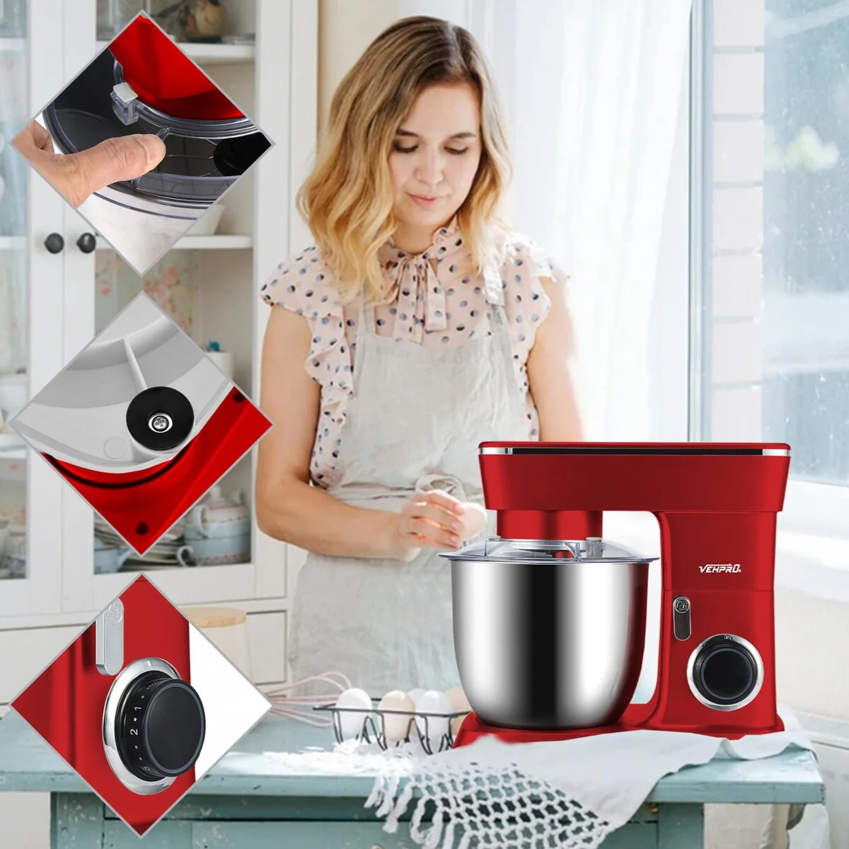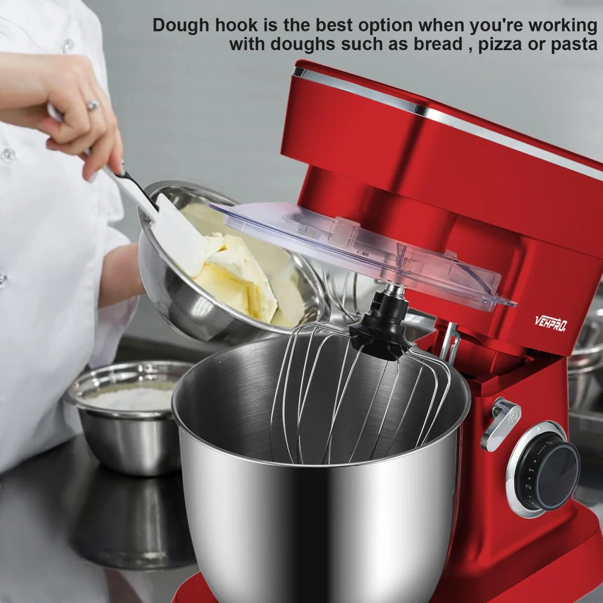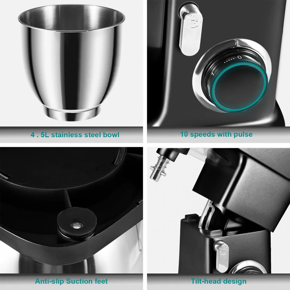 Powerful Motor & Variable Speed Control:380W high performance pure copper motor and 10 optimized speeds with pulse function, access to multipurpose and a variety of recipes. With LED indicator light on the speed knob which makes your kitchen more colorful. Tilt Head & Auto Power-off Design:The stand mixer tilt head design provides access to install or uninstall bowl and accessories easily. If the head is raised in operation, the mixer will automatically power off to prevent the rotating attachments from causing injury to you.