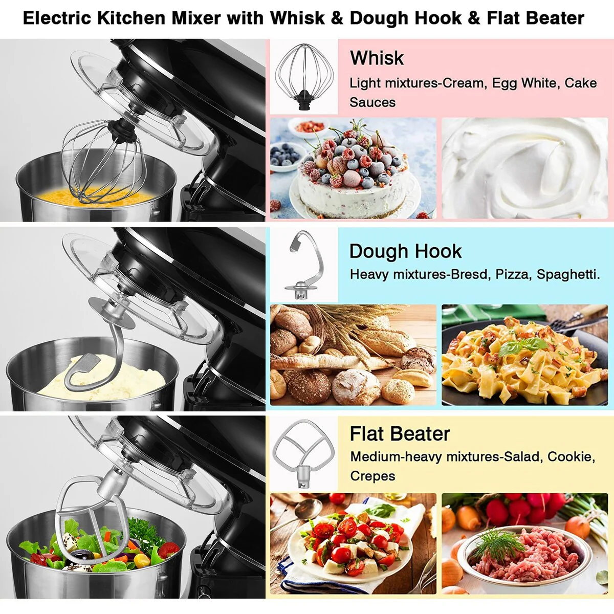 - 6.2L HIGH CAPACITY: Big stainless steel mixing bowl offers enough capacity. Each COOKLEE kitchen stand mixer comes with a dough hook, flat beater, wire whip, and pouring shield avoiding mess kneading process
