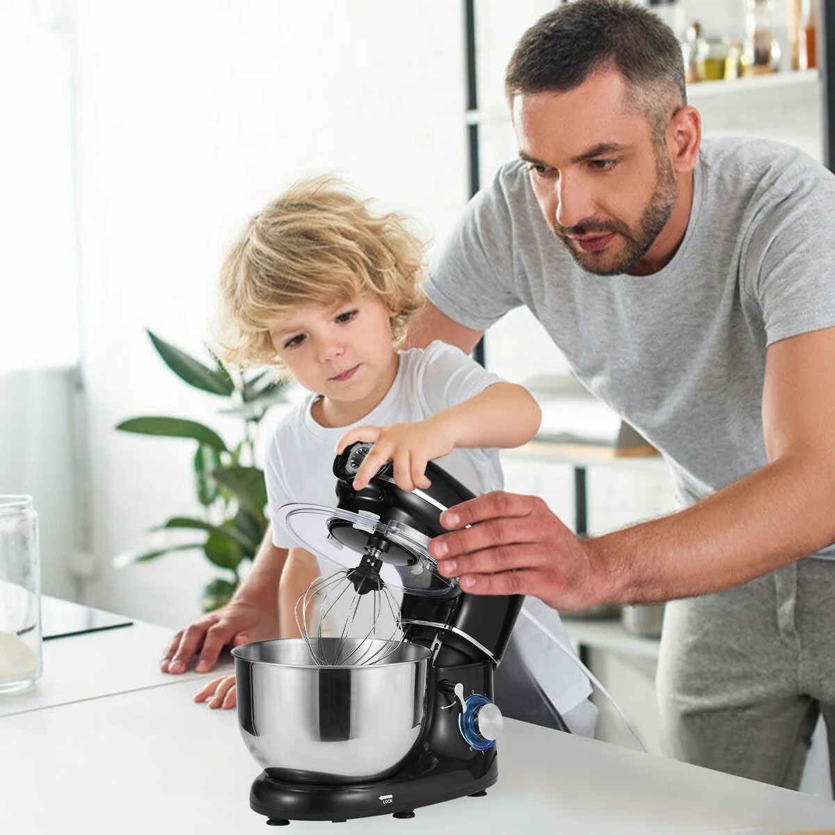 - TILT HEAD & AUTO POWER-OFF DESIGN: The stand mixer tilt head design provides access to install or uninstall bowl and accessories easily. If the head is raised in operation, the mixer will automatically power off to prevent the rotating attachments from causing injury to you.