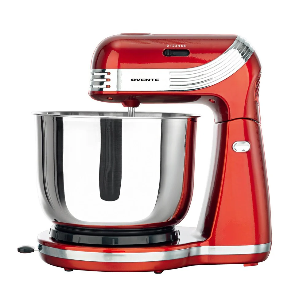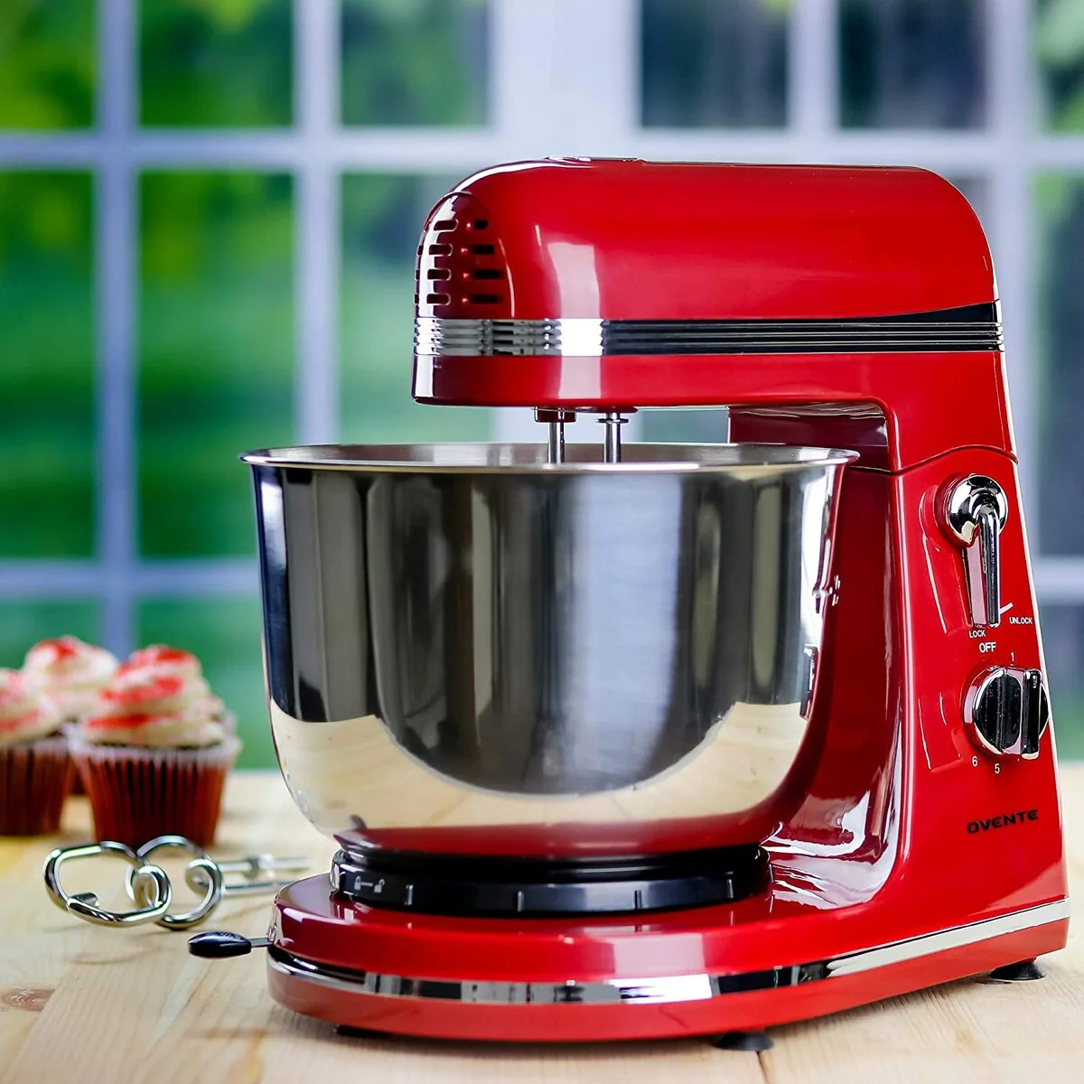 Ovente Kitchen Stand Mixer with 3.7 Quart Mixing Bowl, Red