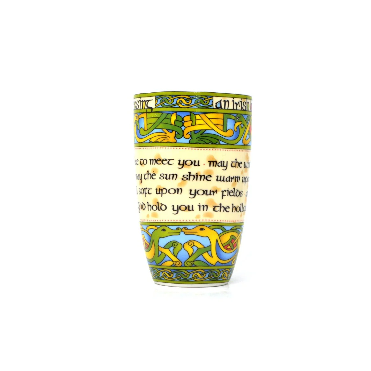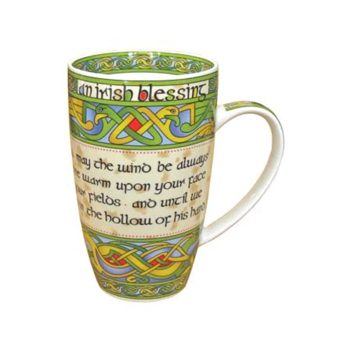 Add charm and meaning to your daily routine with this multi-color Blessing Mug, crafted from durable bone china and designed to hold 14 fl. oz of your favorite hot beverage. Showcasing intricate Celtic-inspired patterns and a heartfelt Irish blessing, this mug blends timeless design with thoughtful detail, making it a memorable gift or personal keepsake. Safe for use in both microwave and dishwasher, it offers lasting convenience while delivering a visually striking experience with its smooth finish and refined translucency.