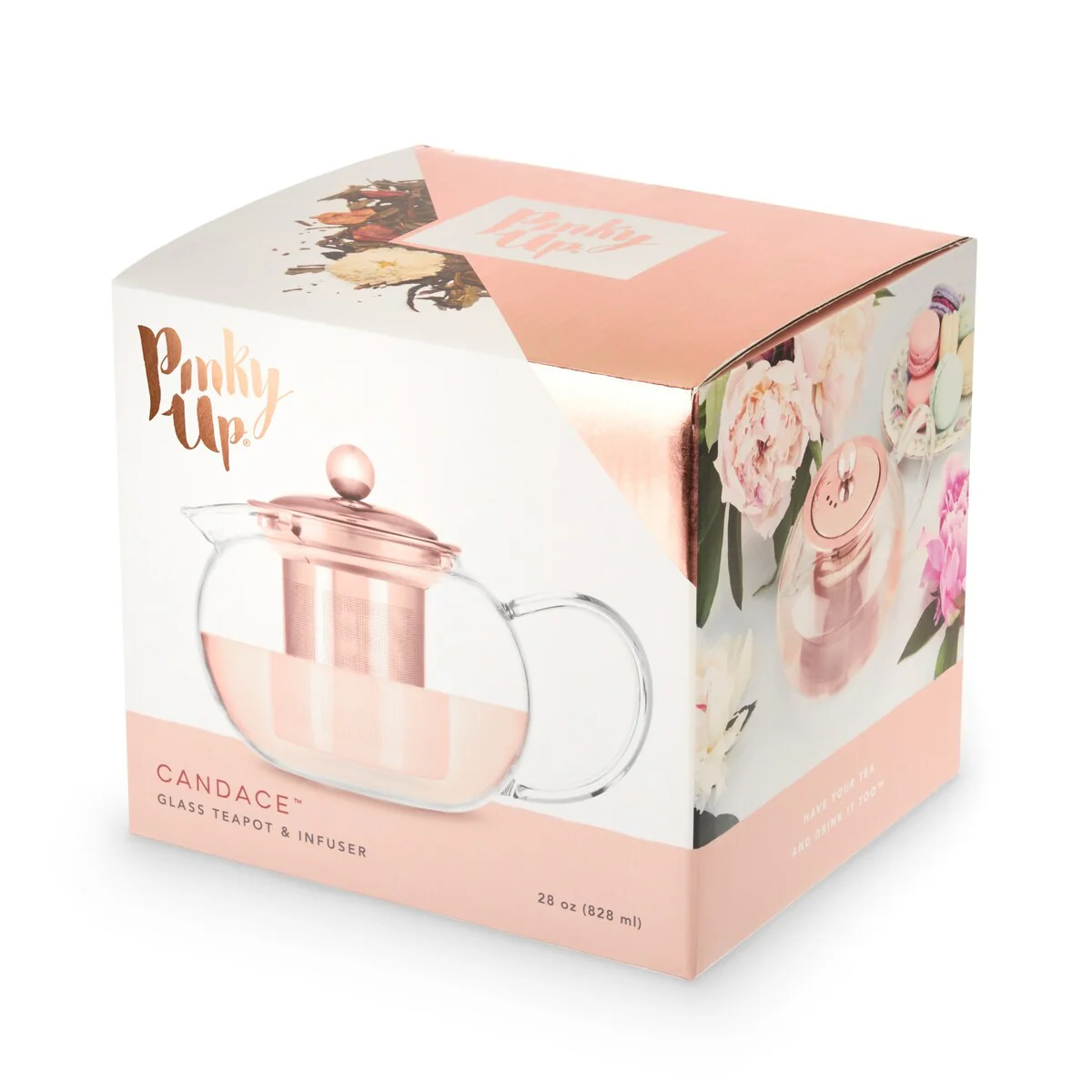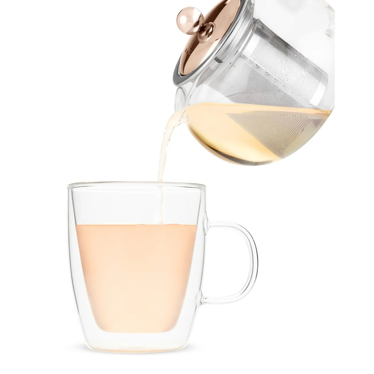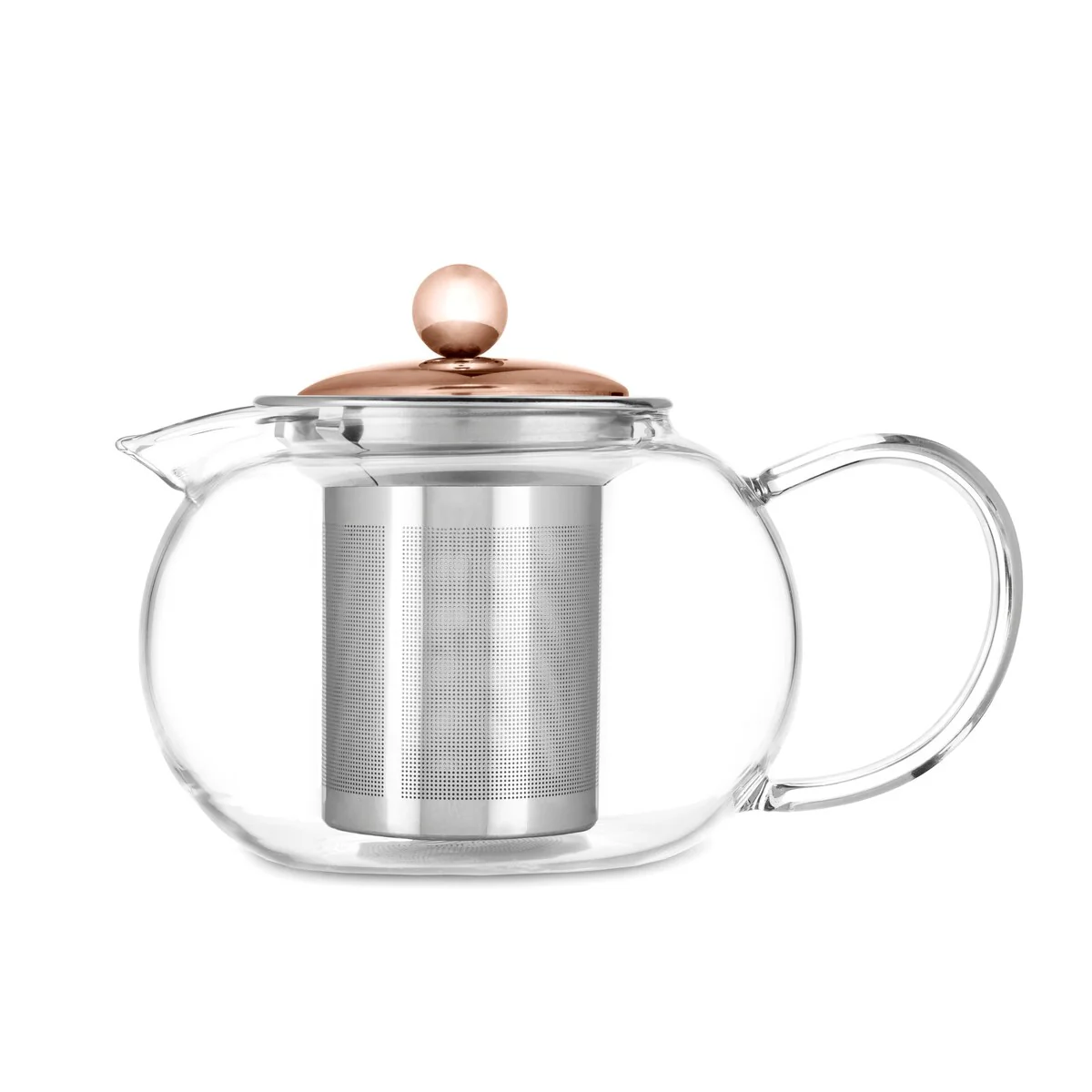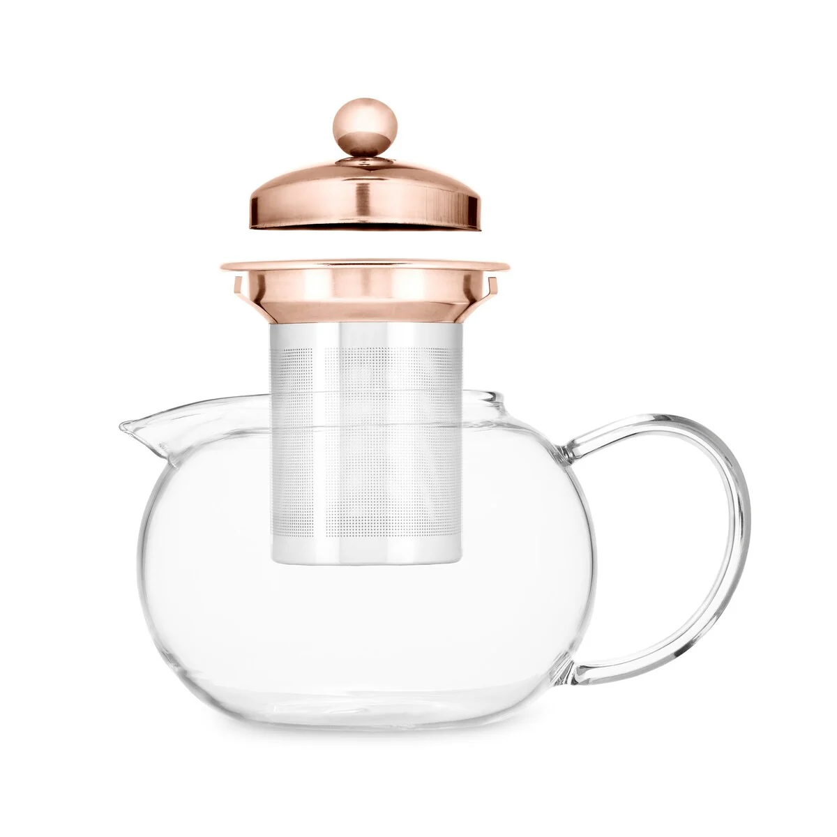 Includes rose gold stainless steel infuser for loose leaf tea
