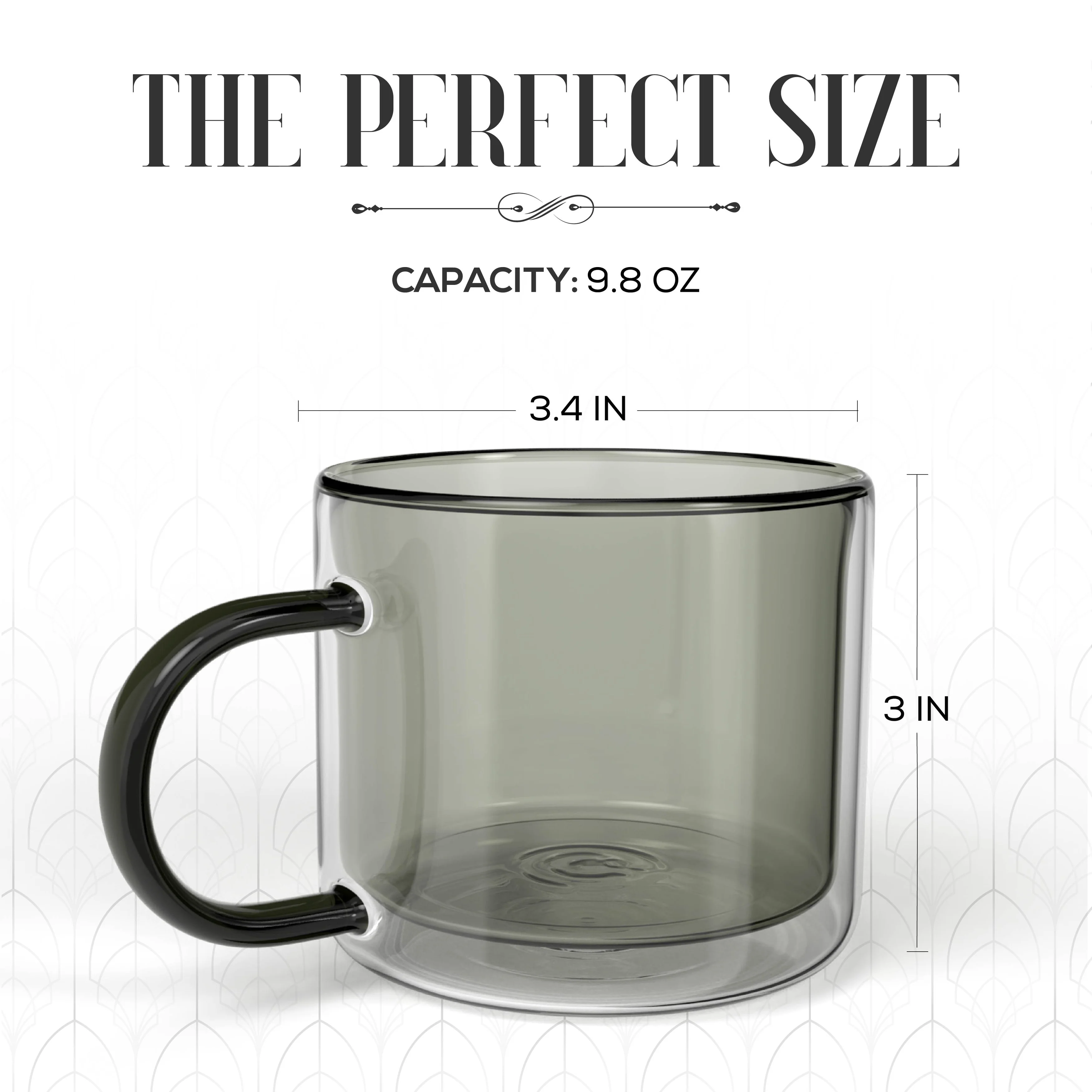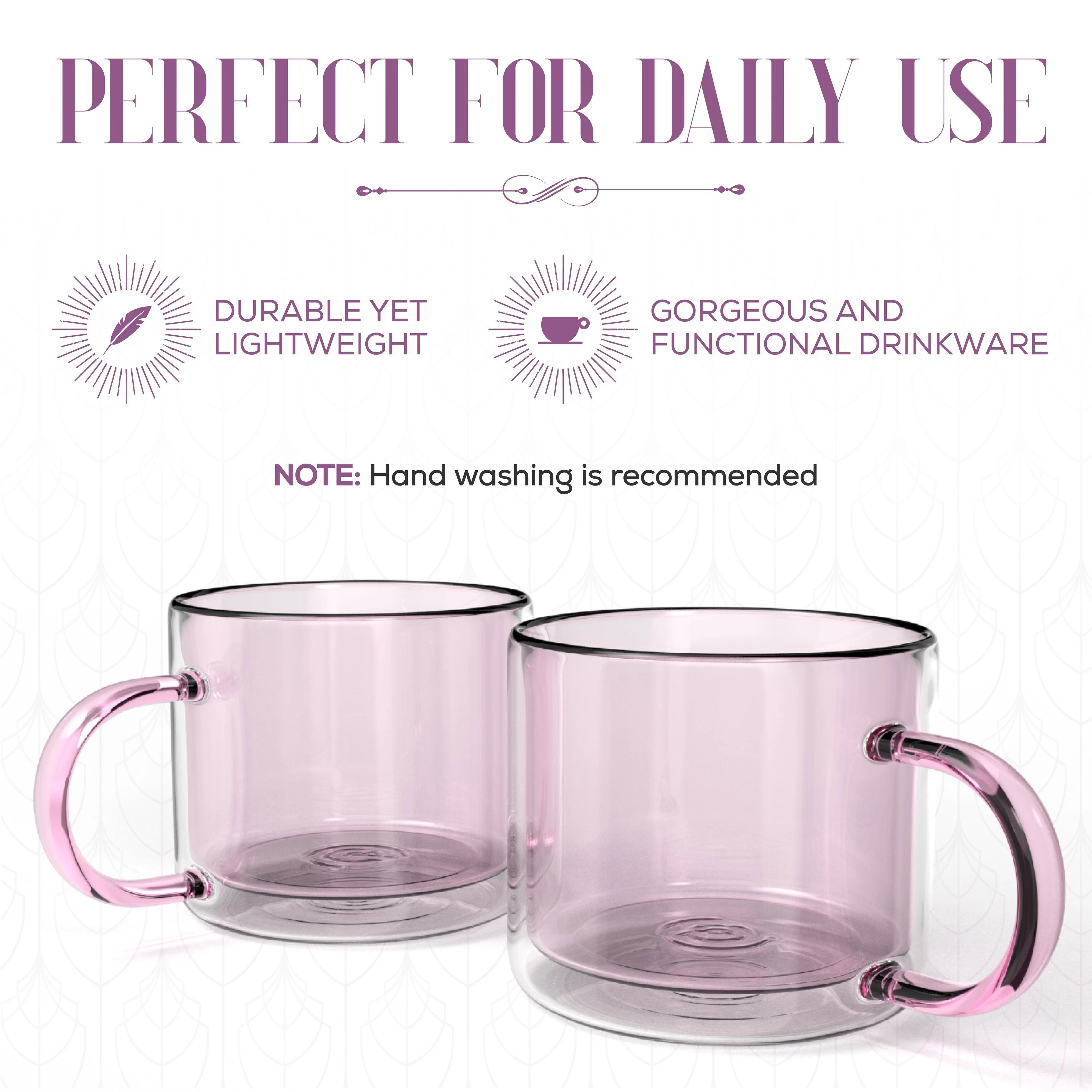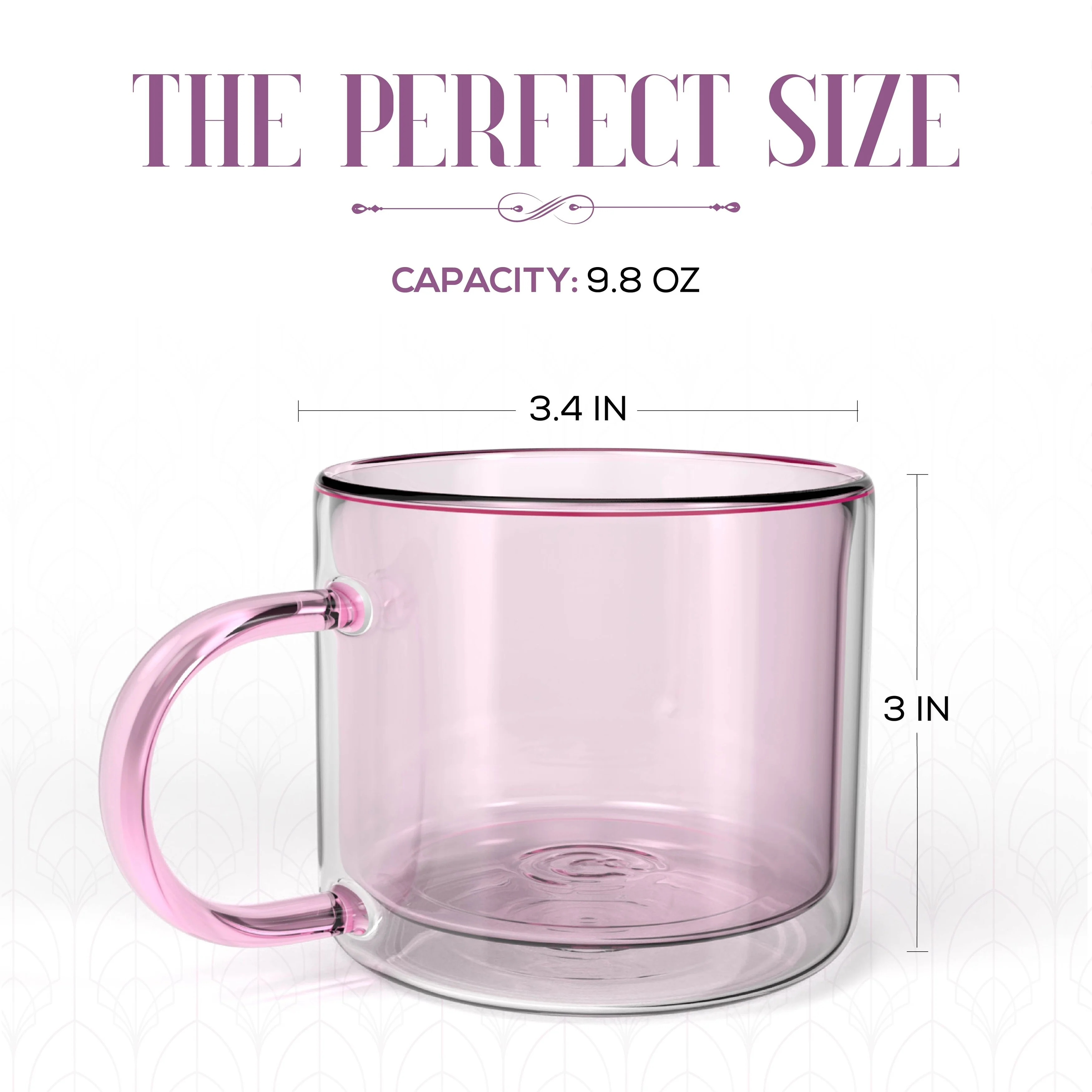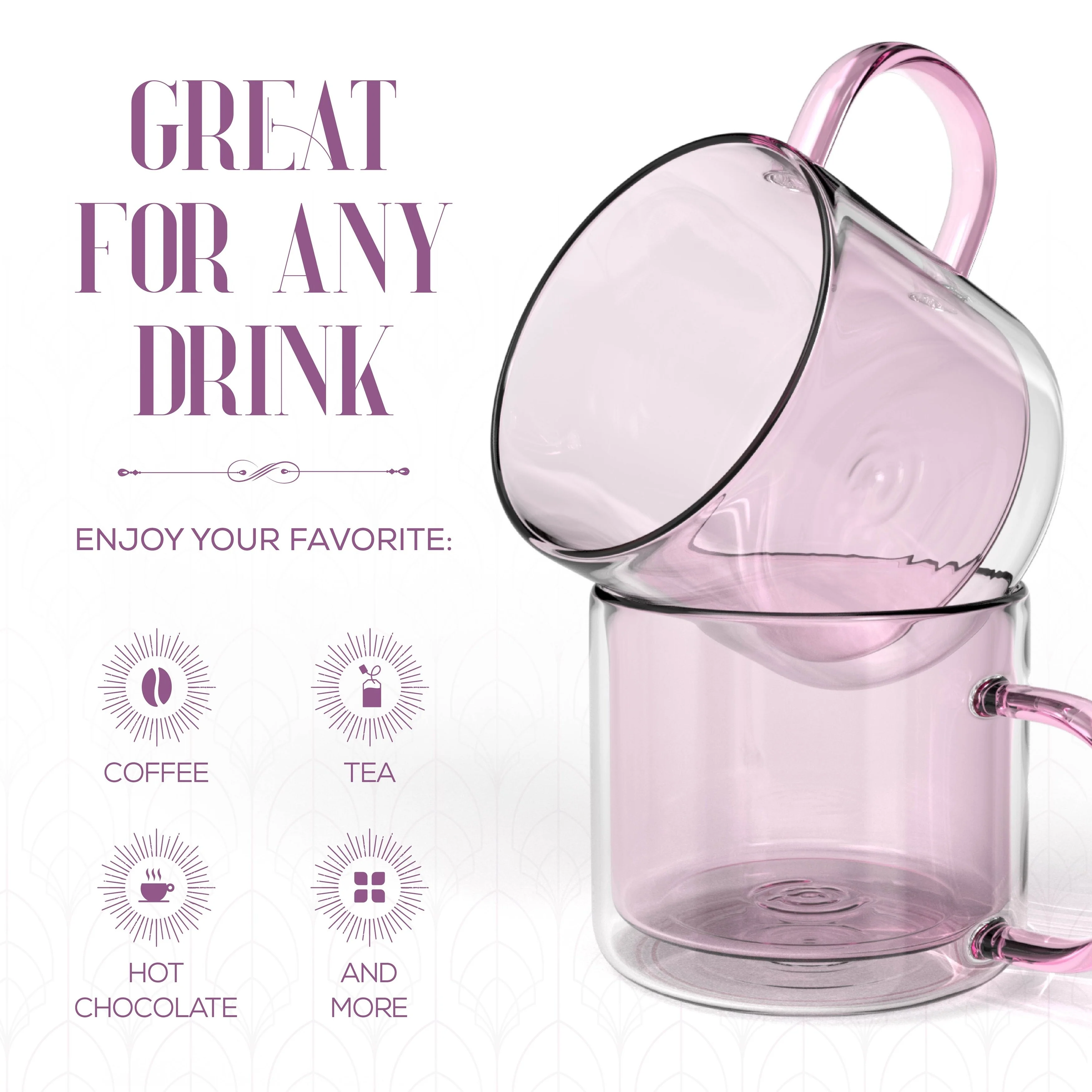 - Versatile and Stylish: These 10-ounce glass mugs are perfect for various beverages, including coffee, espresso, cappuccino, tea, and more. Their clear design showcases the vibrant colors of your drink and adds a touch of luxury to your kitchen or dining table. Choose from a range of attractive colors, including pink, green, blue, amber, and gray.