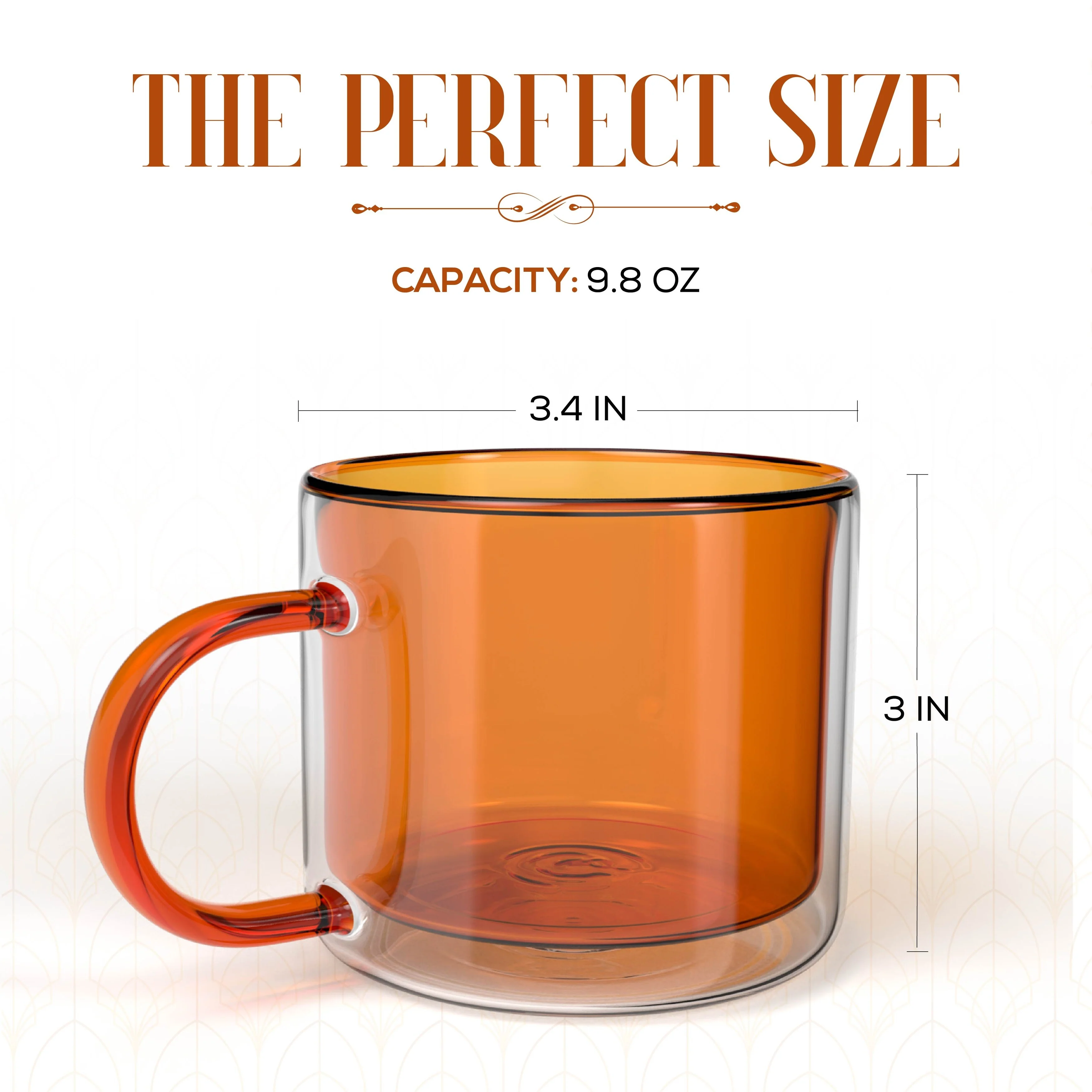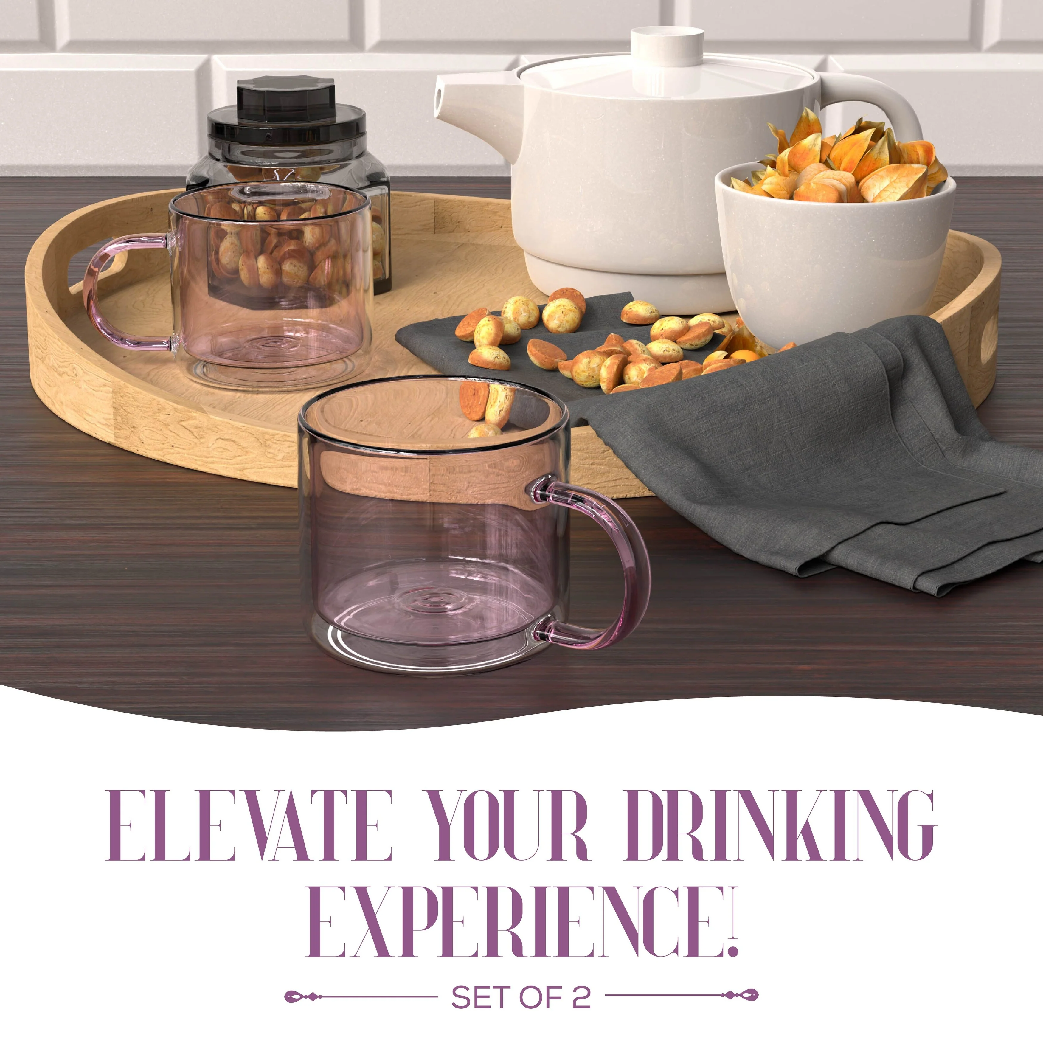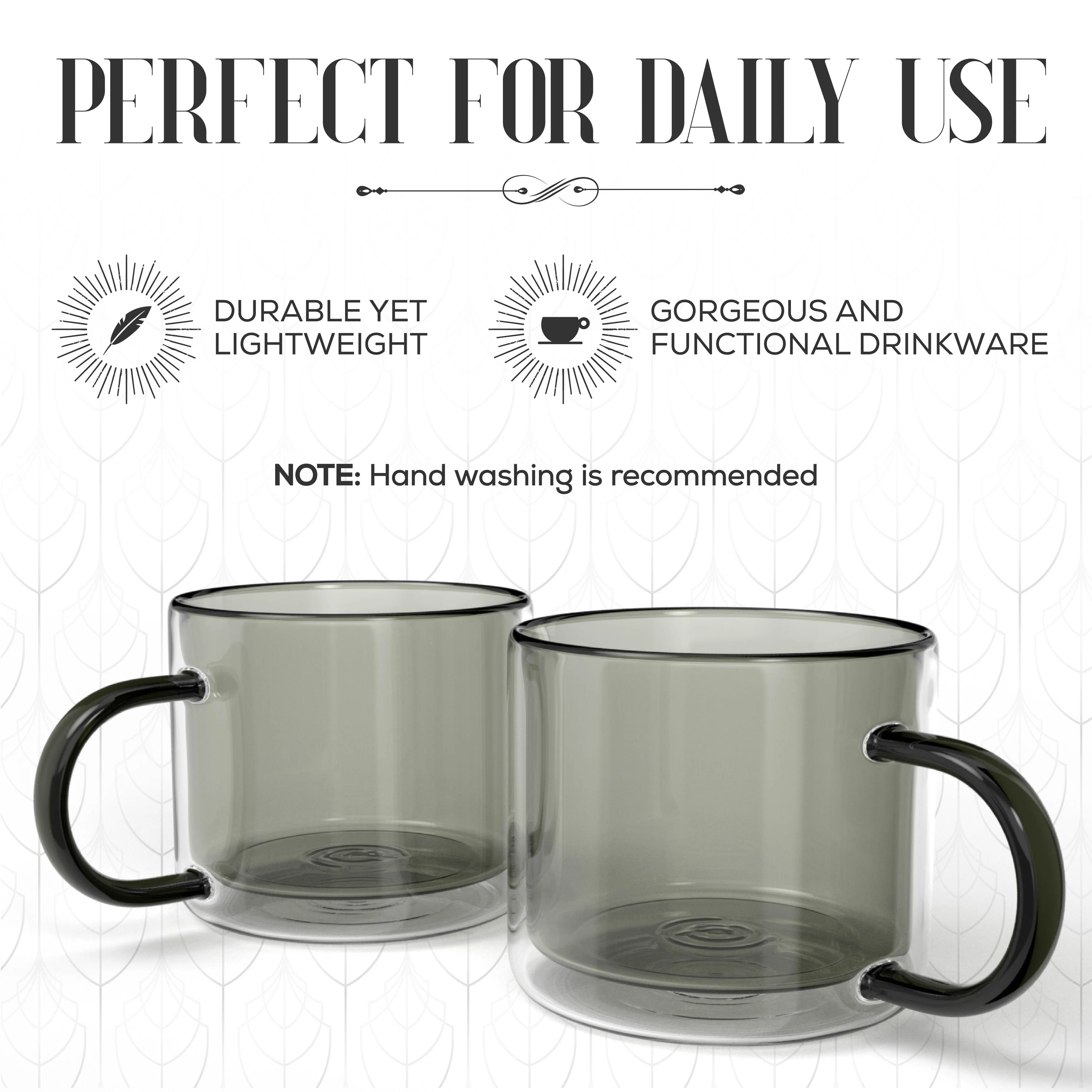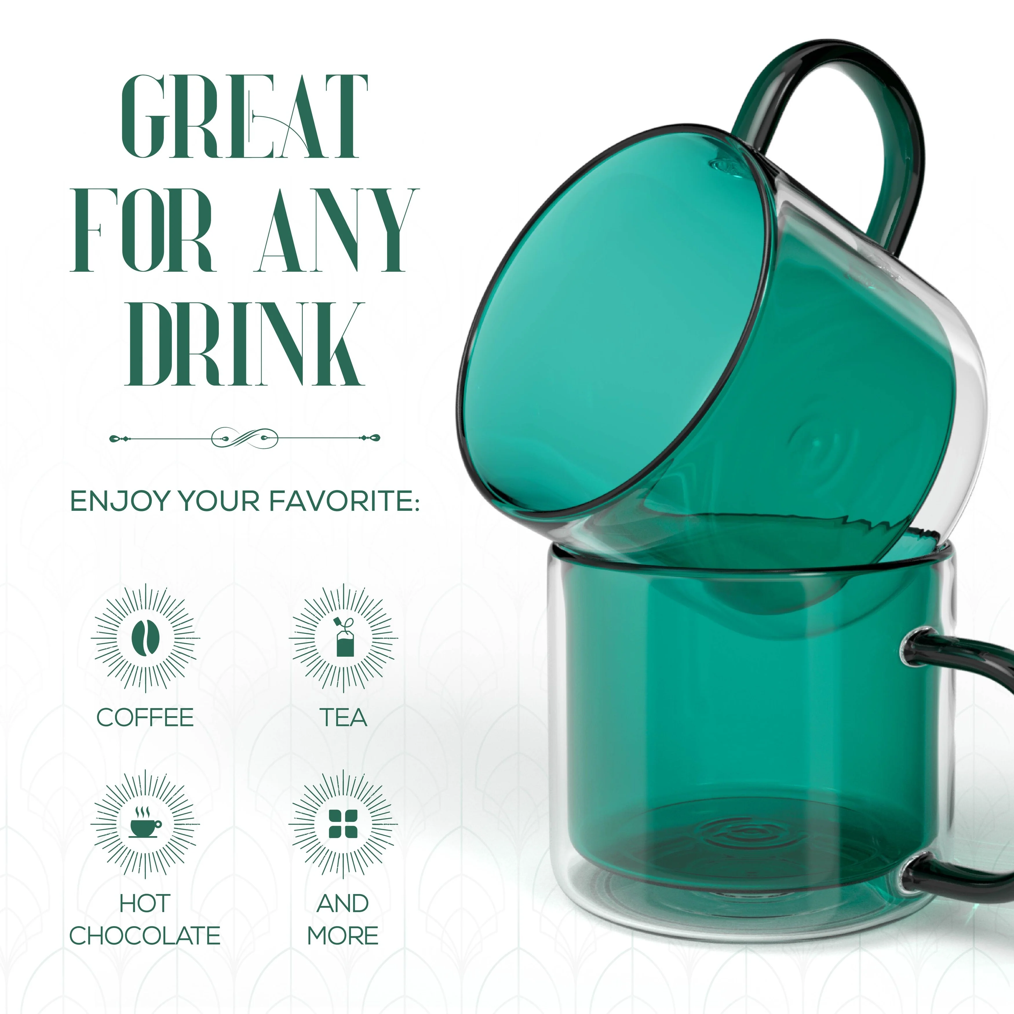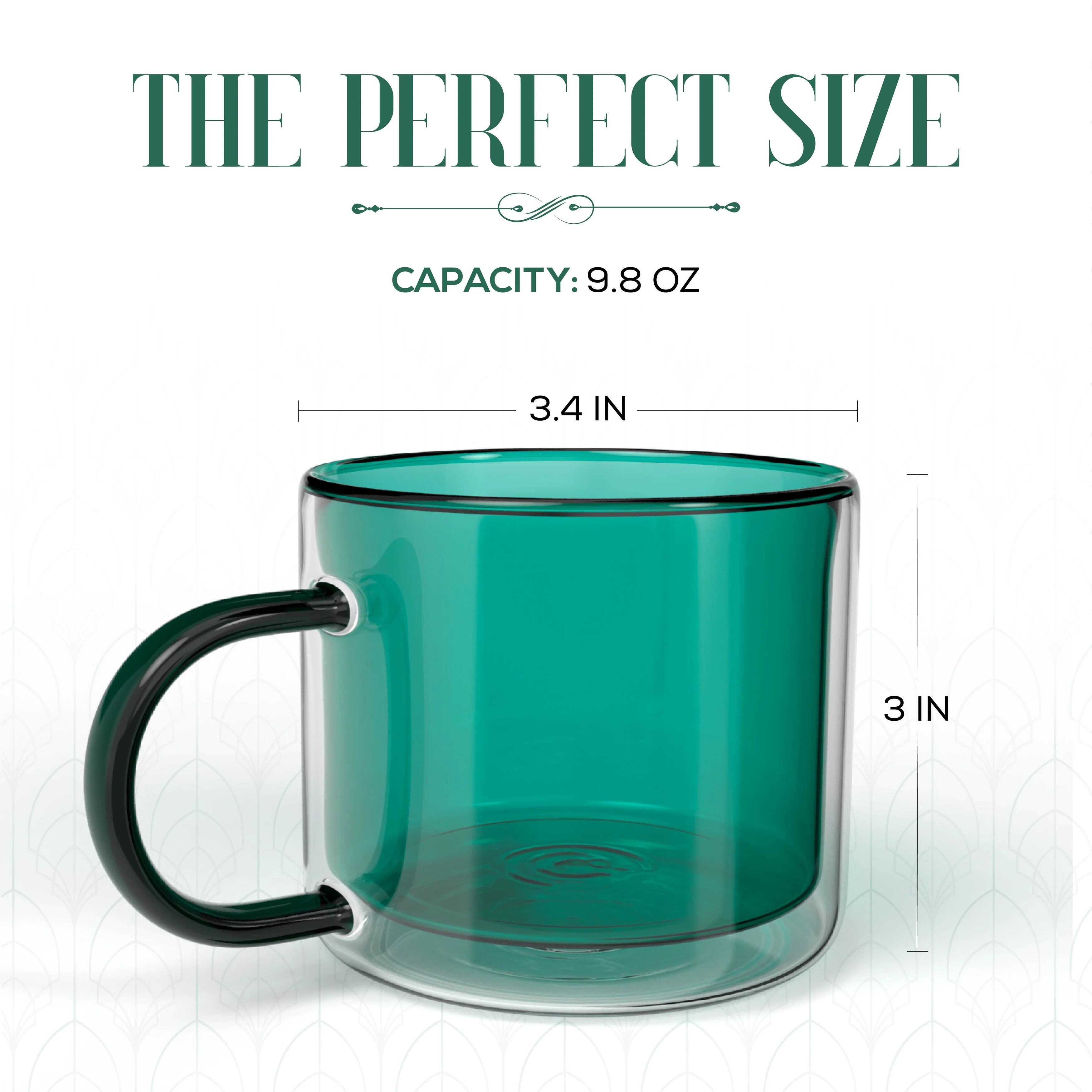 - Versatile and Stylish: These 10-ounce glass mugs are perfect for various beverages, including coffee, espresso, cappuccino, tea, and more. Their clear design showcases the vibrant colors of your drink and adds a touch of luxury to your kitchen or dining table. Choose from a range of attractive colors, including pink, green, blue, amber, and gray.