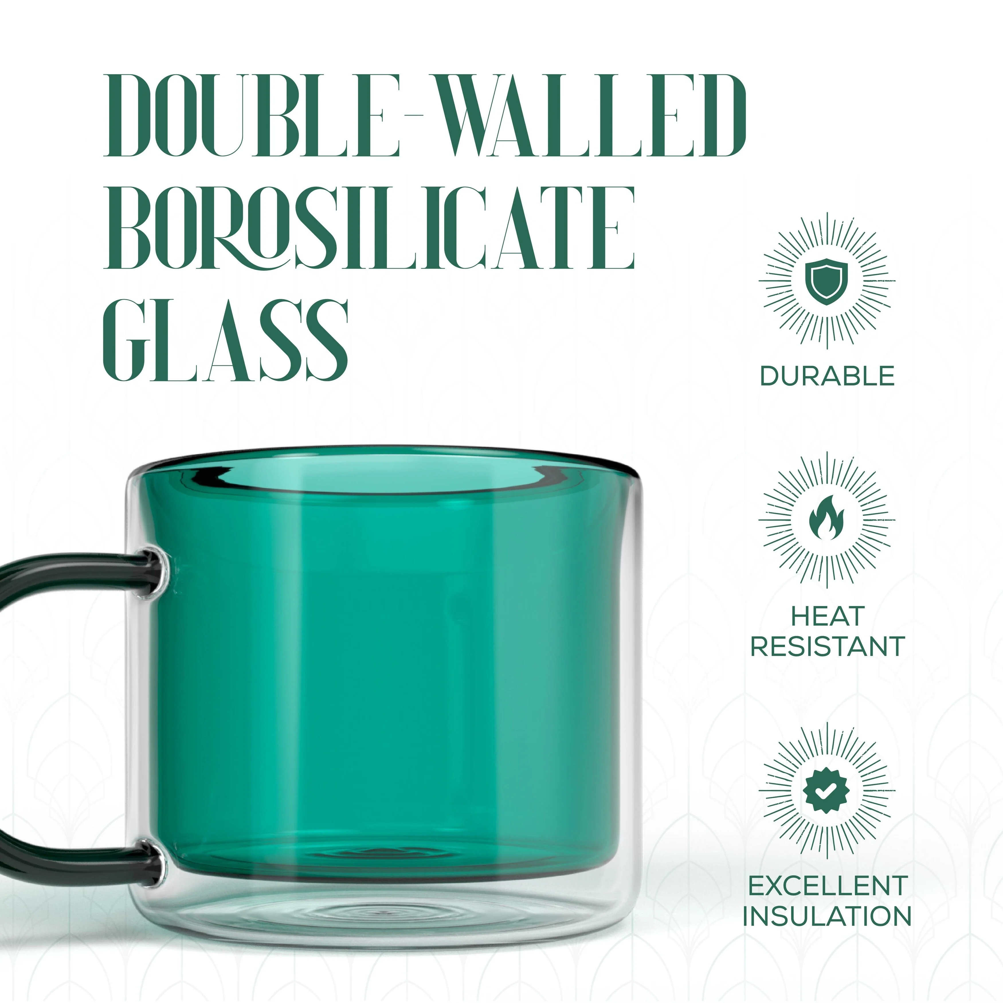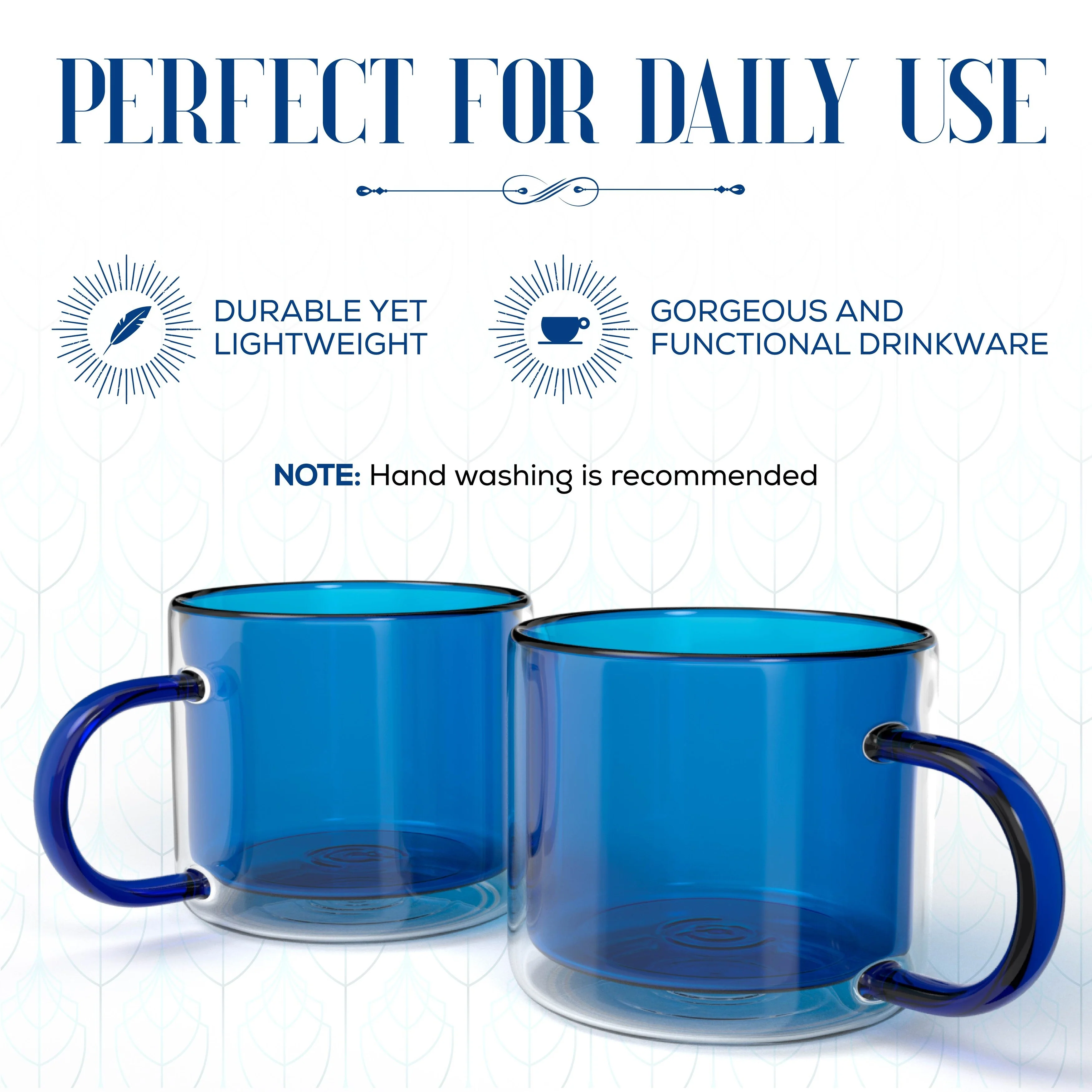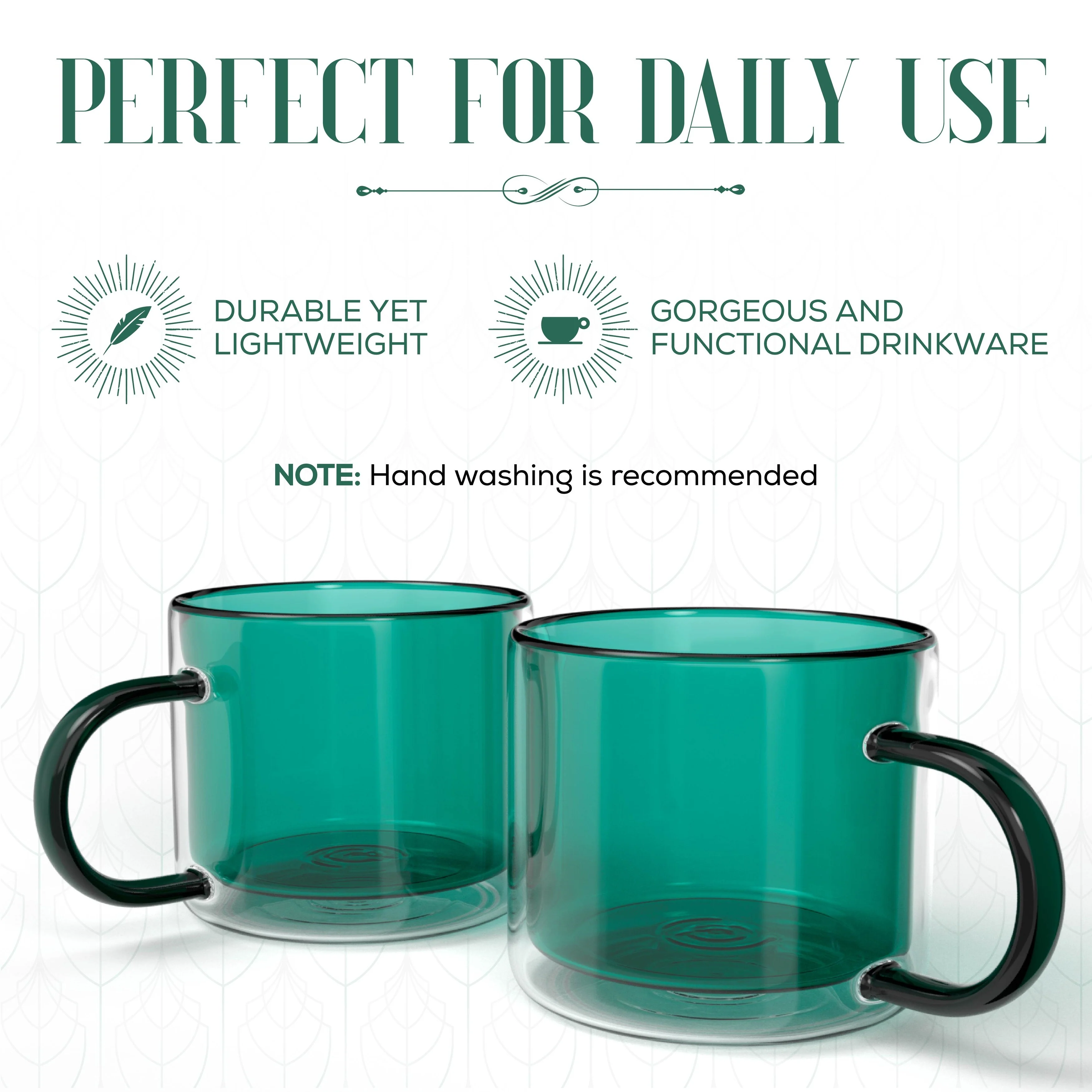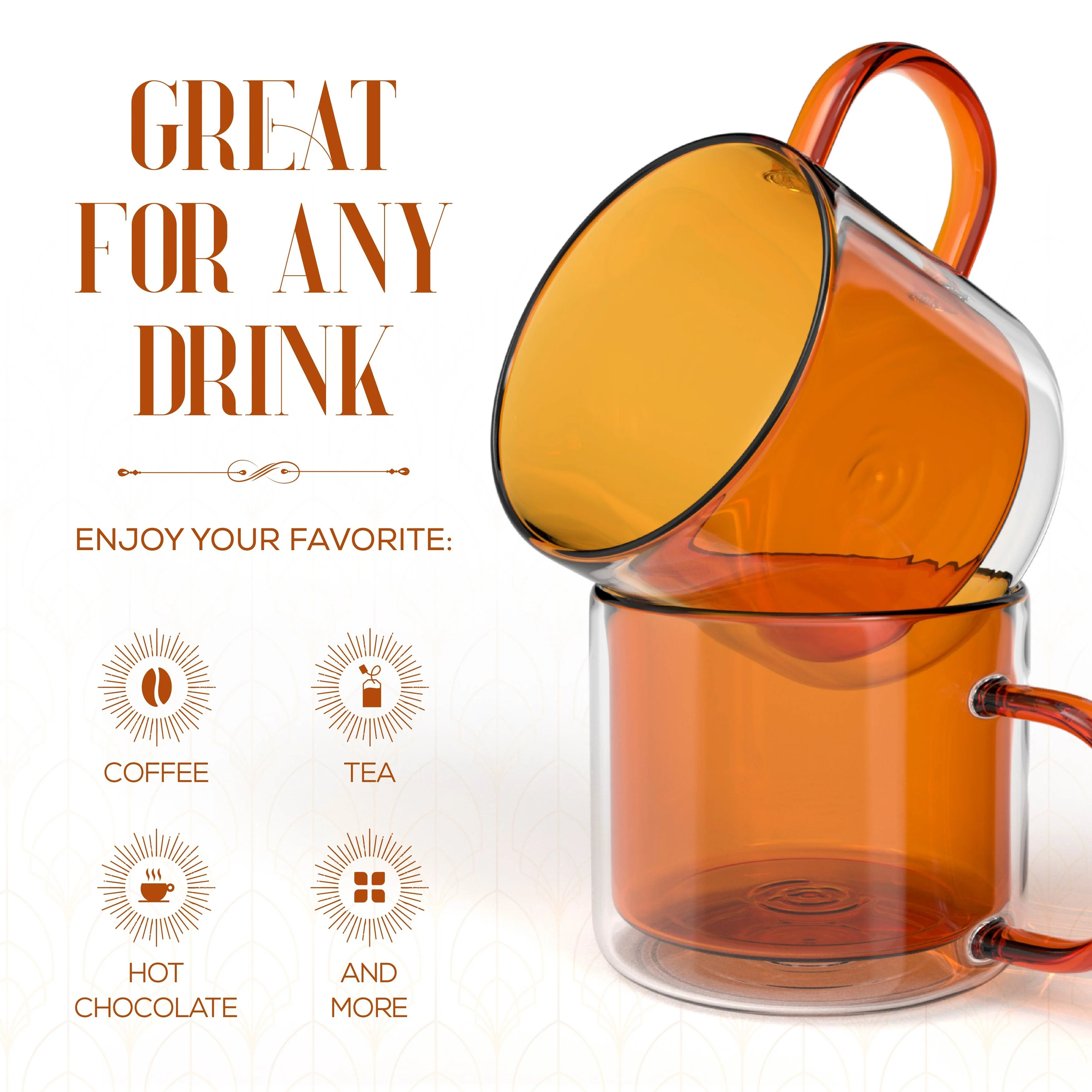 - Versatile and Stylish: These 10-ounce glass mugs are perfect for various beverages, including coffee, espresso, cappuccino, tea, and more. Their clear design showcases the vibrant colors of your drink and adds a touch of luxury to your kitchen or dining table. Choose from a range of attractive colors, including pink, green, blue, amber, and gray.