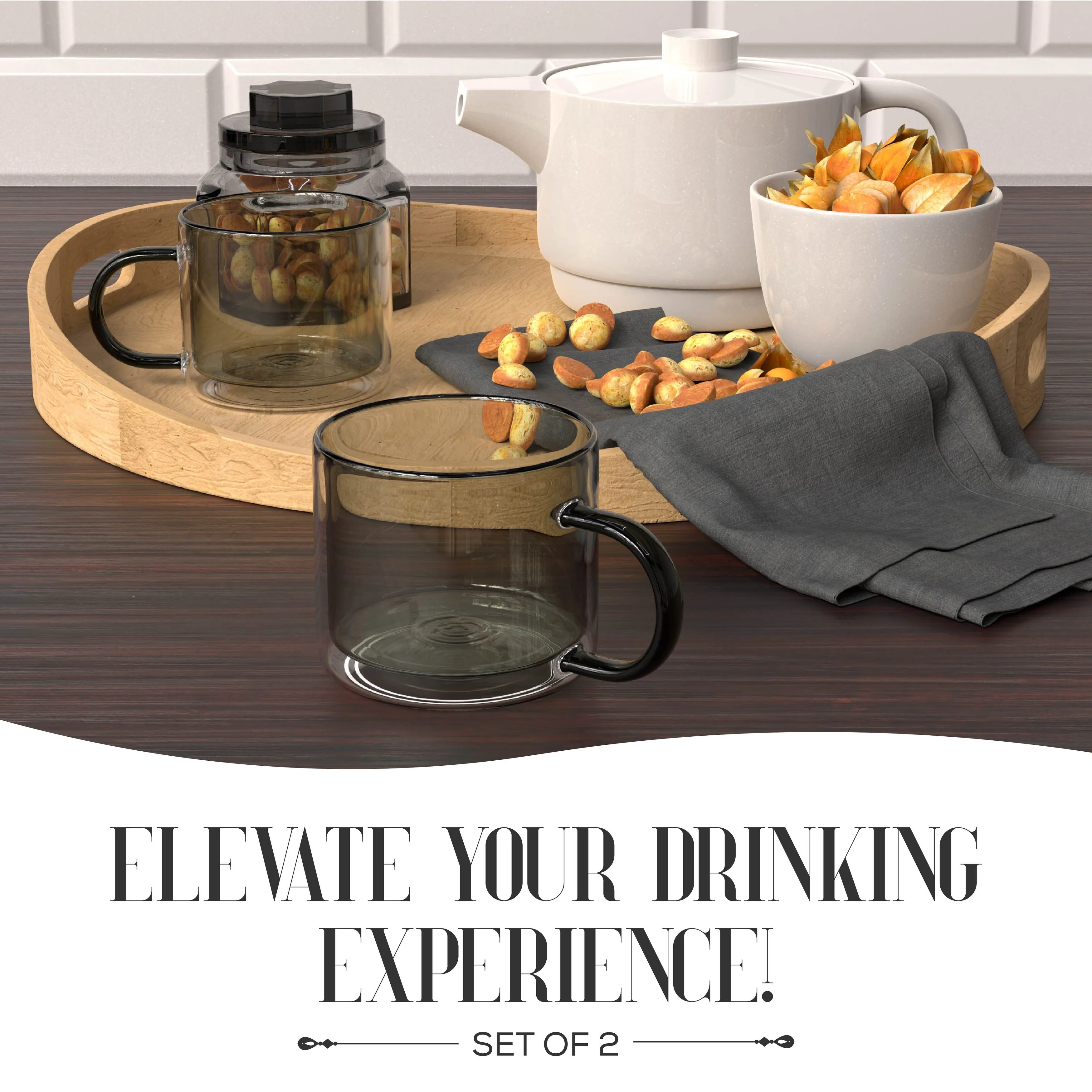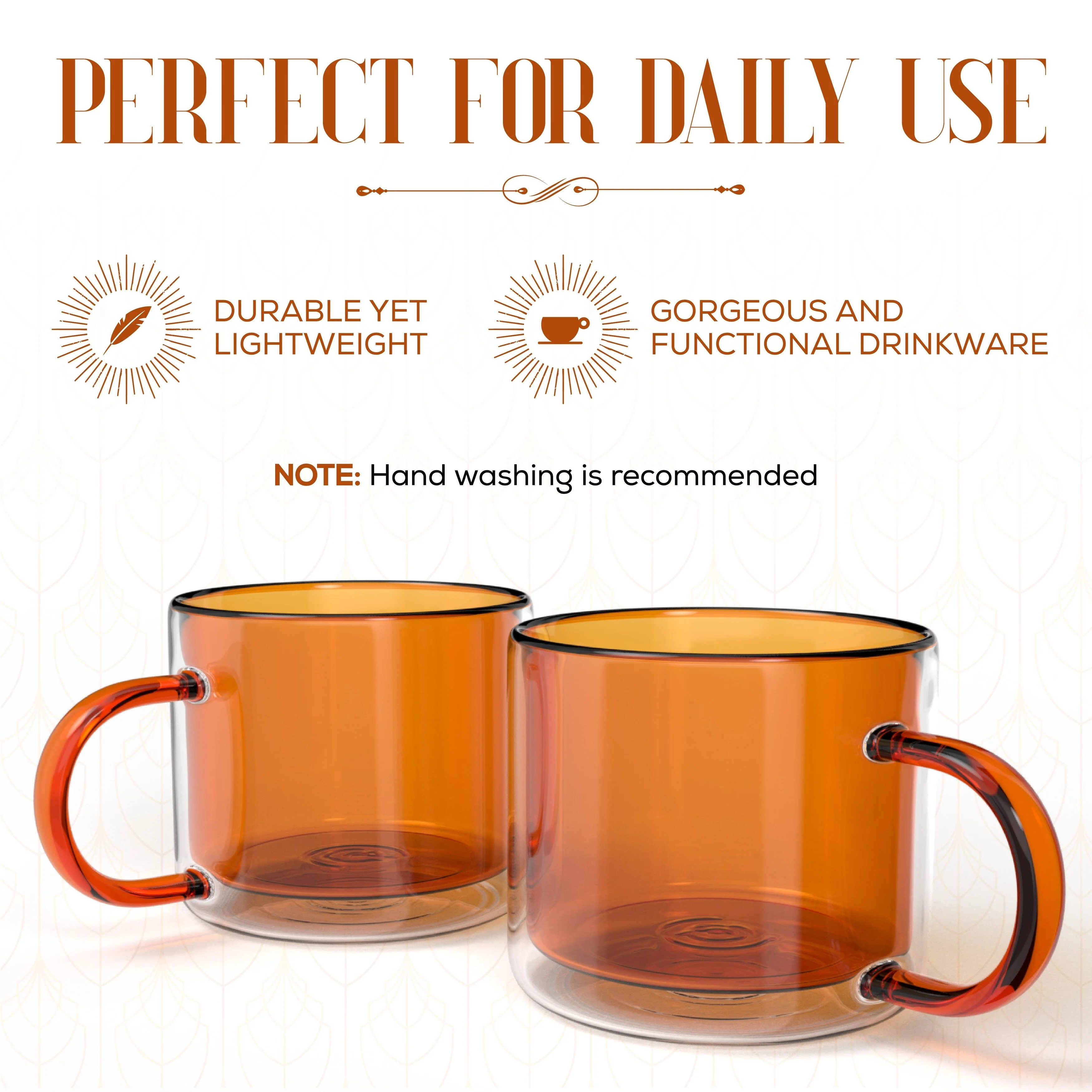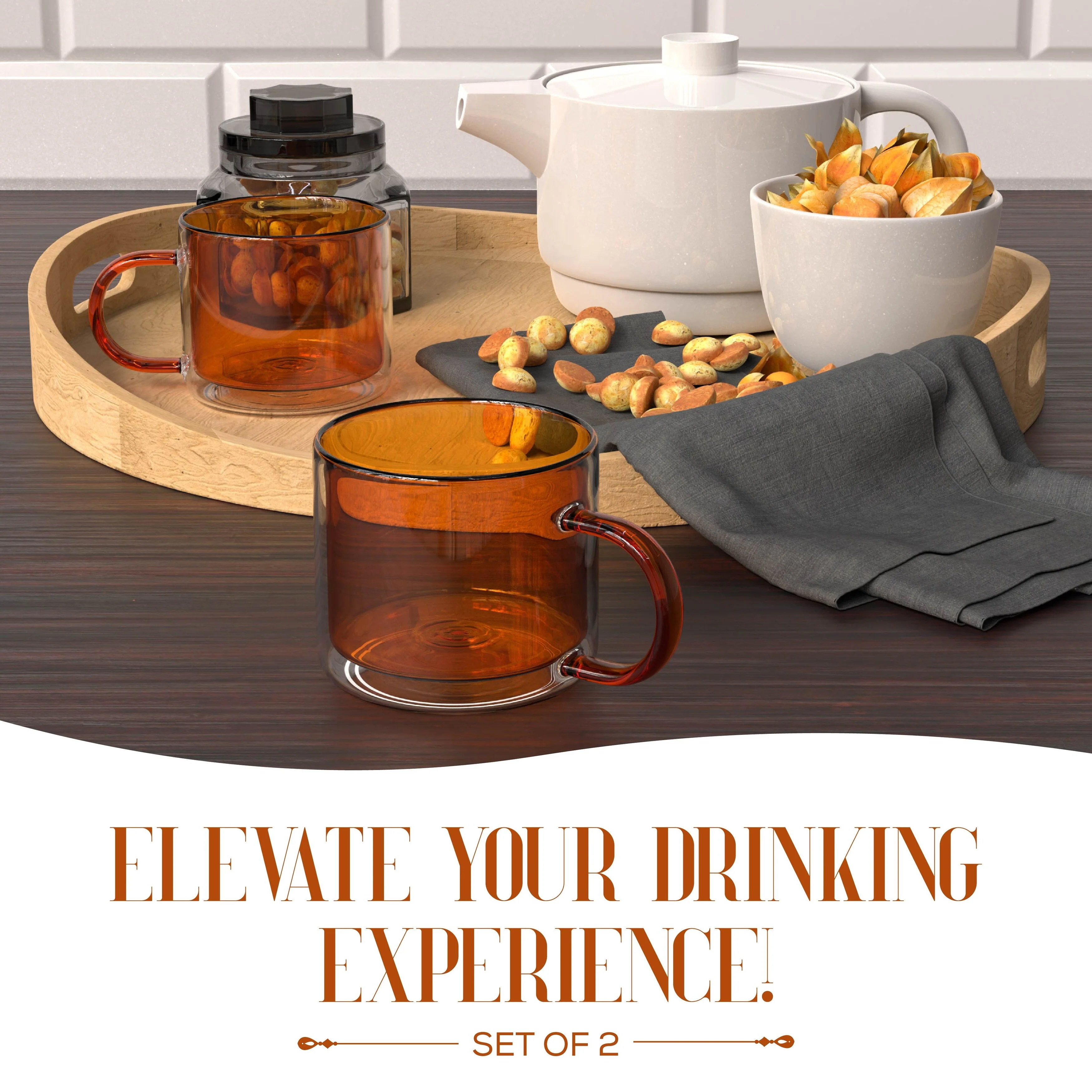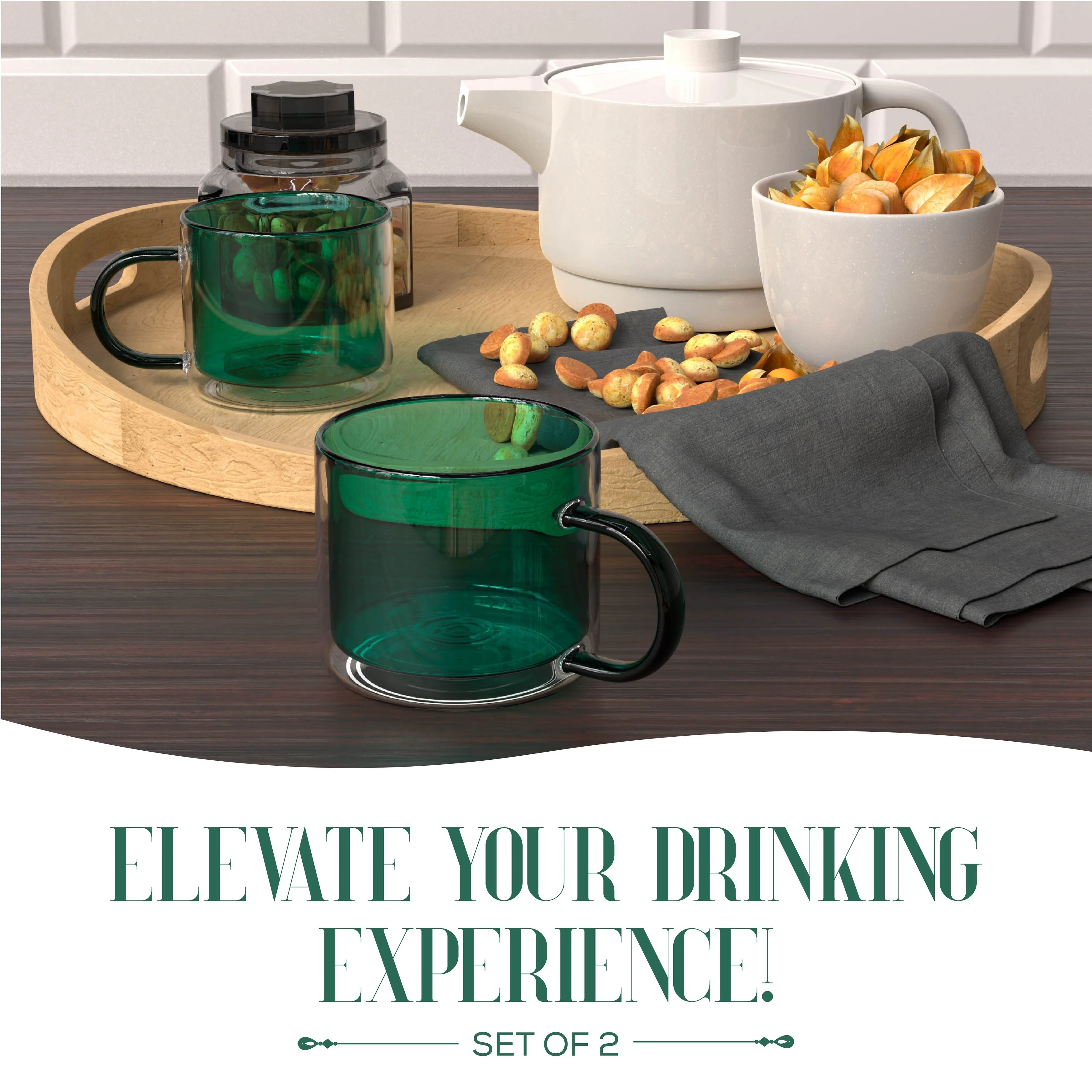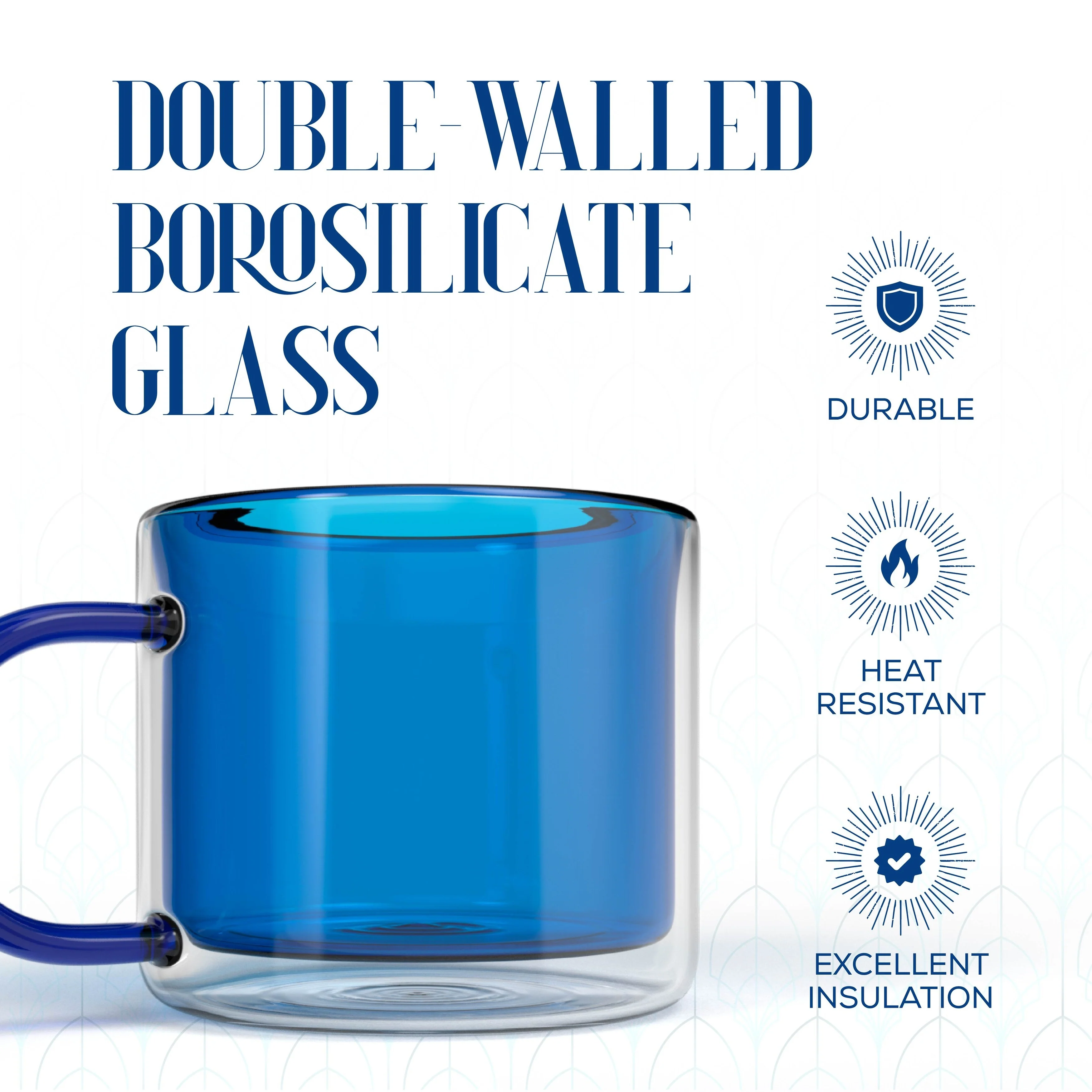 - Versatile and Stylish: These 10-ounce glass mugs are perfect for various beverages, including coffee, espresso, cappuccino, tea, and more. Their clear design showcases the vibrant colors of your drink and adds a touch of luxury to your kitchen or dining table. Choose from a range of attractive colors, including pink, green, blue, amber, and gray.
