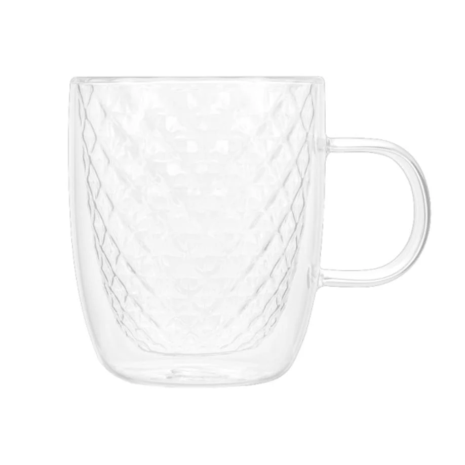 Introducing the elle décor Diamond Coffee Mug, a perfect blend of elegance and functionality for all coffee and tea enthusiasts. This set of two double-wall glasses brings a touch of luxury to your daily beverage rituals. Crafted from premium borosilicate glass, these mugs are designed to keep your drinks at the ideal temperature while offering a mesmerizing visual experience. Enjoy the versatility of these insulated coffee mugs as they effortlessly accommodate a variety of hot and cold drinks. Whether it's a steaming cup of espresso, a soothing cup of tea, or a refreshing iced latte, these mugs are up for the task. The double-wall construction not only enhances insulation but also creates a striking optical illusion that will impress your guests. Say goodbye to condensation marks and uncomfortable temperatures with the innovative double-wall design. While your drinks stay piping hot inside, the outer surface of the mug remains cool to the touch, ensuring a comfortable and safe grip. Similarly, when savoring a chilled beverage, the exterior stays condensation-free, preserving the pristine look of your table surface. Designed for durability and convenience, these elle décor Diamond Coffee Mugs are made to withstand thermal shock, scratches, and breaks. They are significantly lighter than traditional ceramic mugs, making them easy to handle and perfect for everyday use. The ergonomic handle adds an extra level of comfort, allowing you to enjoy every sip with absolute pleasure. Whether you're treating yourself or searching for a thoughtful gift, this set of two coffee mugs is an excellent choice. Packed in an elegant gift box, it makes a delightful present for birthdays, holidays, housewarmings, or any other special occasion. Elevate your coffee or tea experience with the elle décor Diamond Coffee Mug, and indulge in the perfect blend of style and practicality.