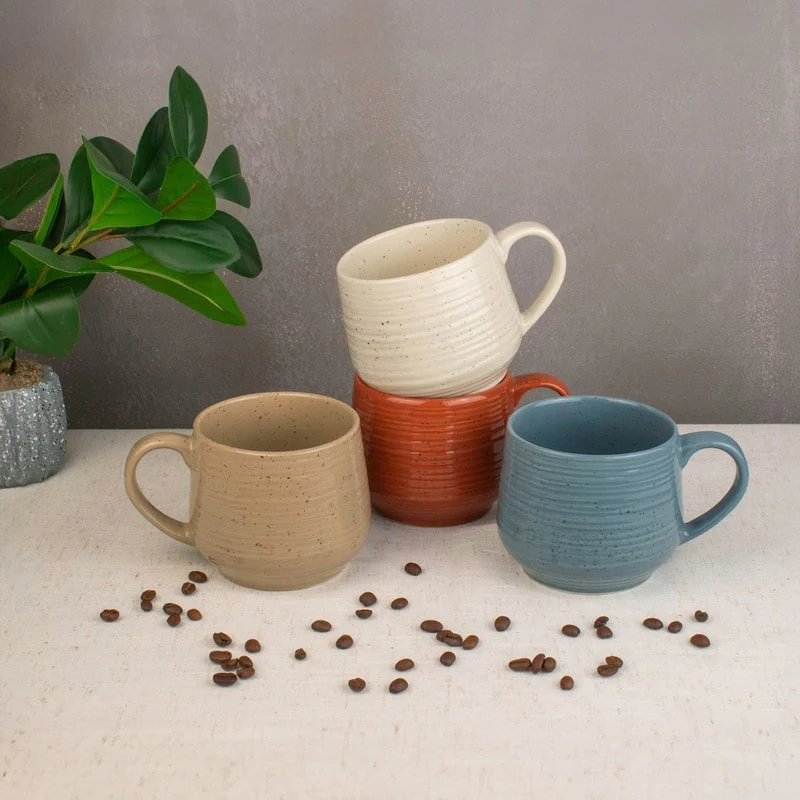 Adding to our much loved SITERRA collection, these 17oz. mugs will complement your own SITERRA dinnerware set, adding rustic charm and casual elegance to your table and cupboards. Each subtly textured piece is finished with a beautiful translucent color glaze with light speckle. Offered as four piece sets and include four beautiful, warm-toned colors; blue, brown, white, and cream.