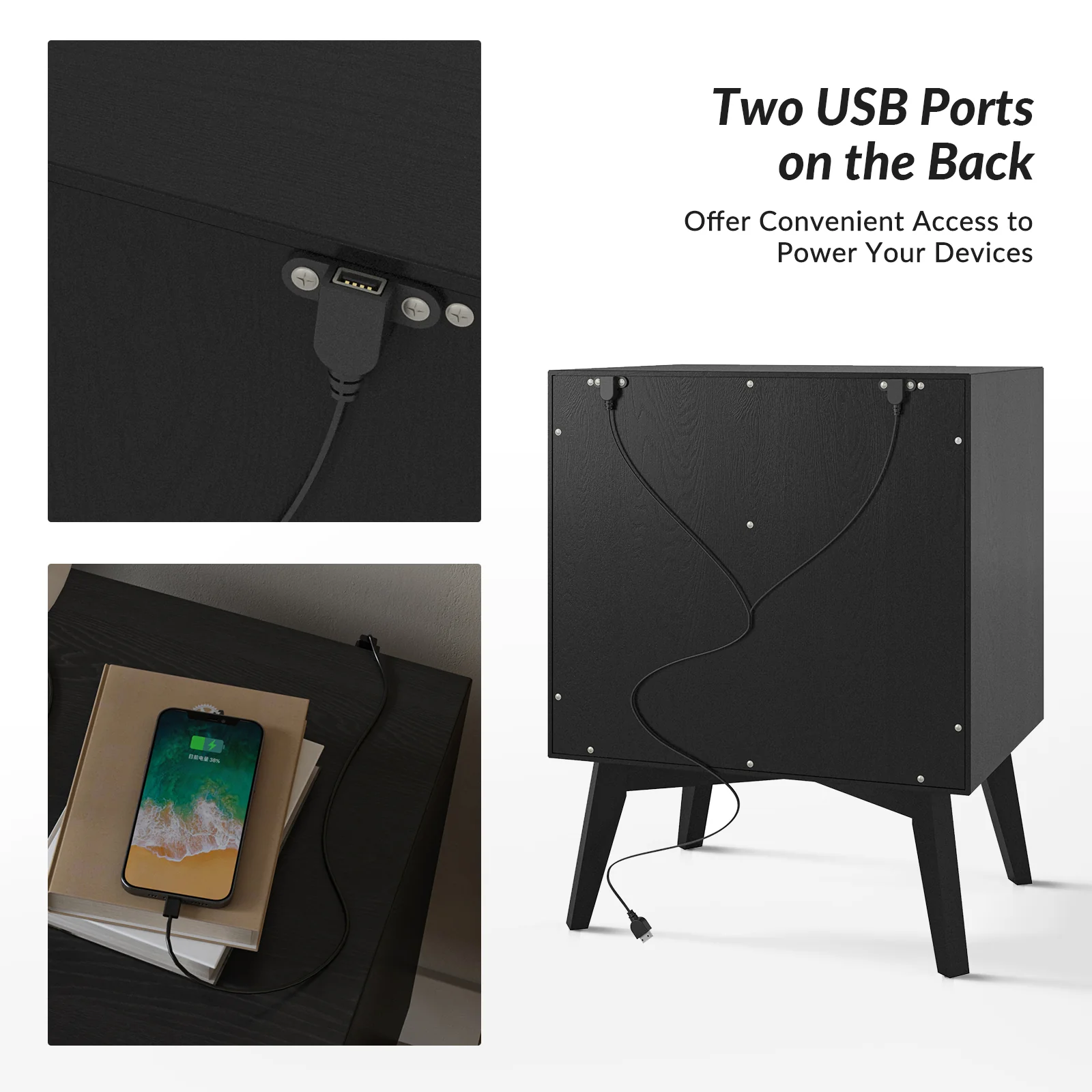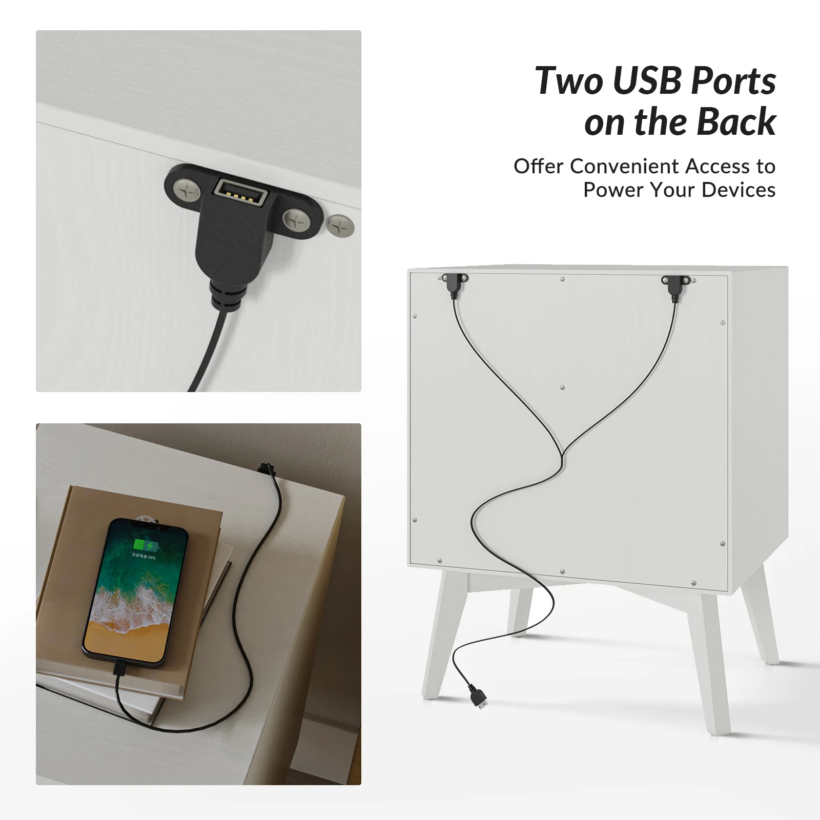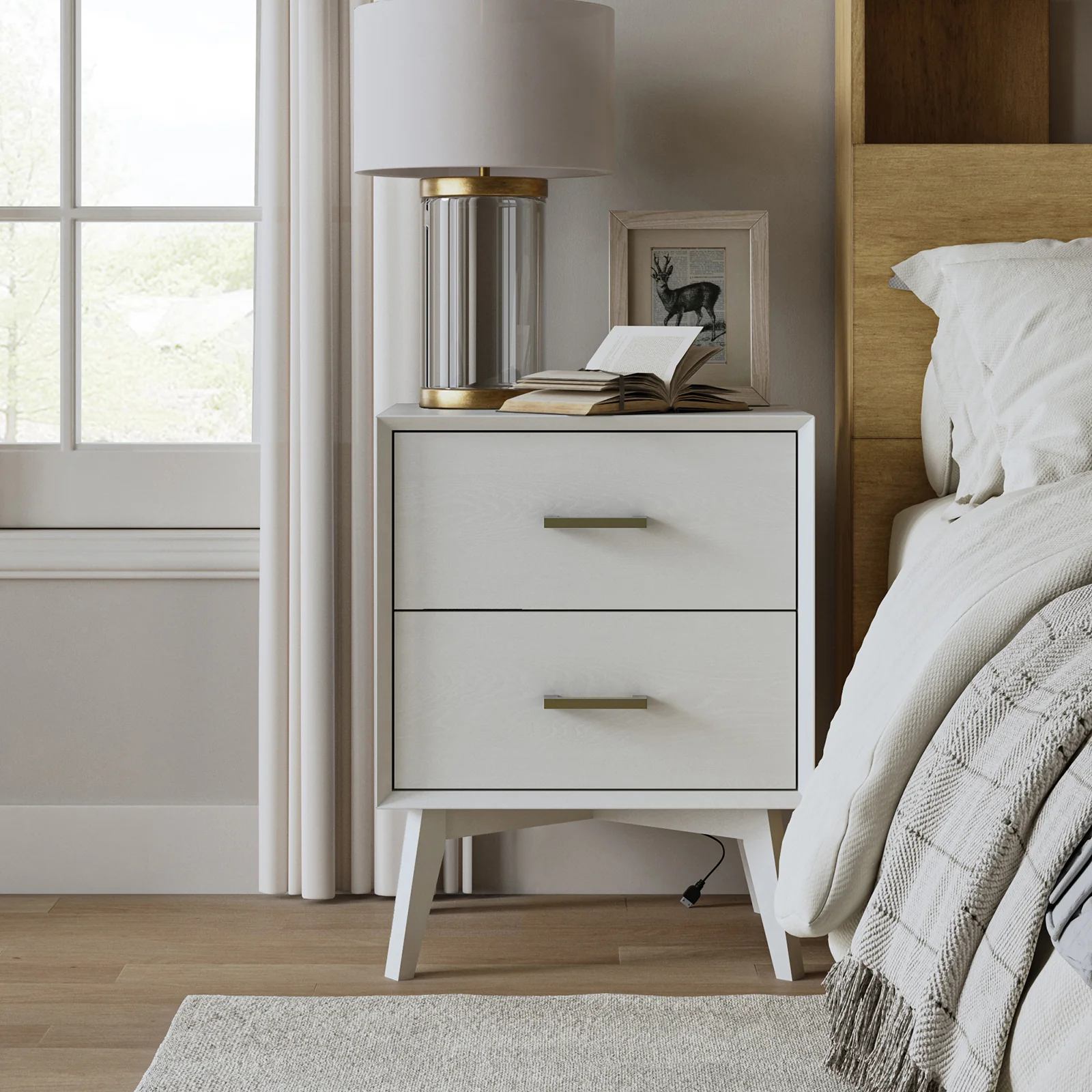 Enhance your home with this modern nightstand, combining practicality and elegance.� The surface is waterproof, scratch-resistant, and stain-resistant, providing durability and easy maintenance for everyday use. The drawers glide effortlessly on ball bearing glides, offering seamless and reliable operation. Stylish drawer handles add a touch of sophistication and offer easy access to items inside. The nightstands are supported by flared legs, providing stability and a contemporary aesthetic. Suitable for keeping your nighttime essentials organized and within reach, this nightstand set is a chic and functional addition to your bedroom.